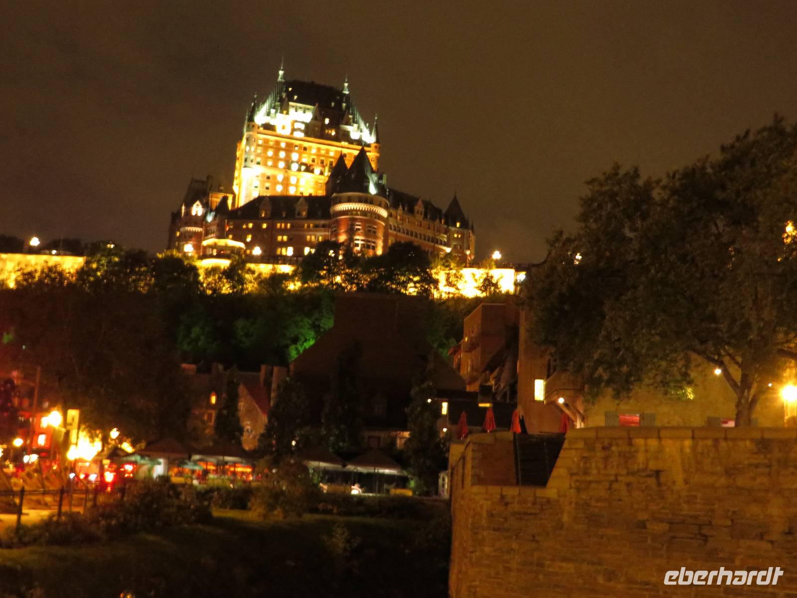Wir spazierten zurück zum Hafen, an dem uns auch der Busfahrer wieder abholte und betrachteten voller Begeisterung die herrlich angestrahlte Kulisse Quebecs.