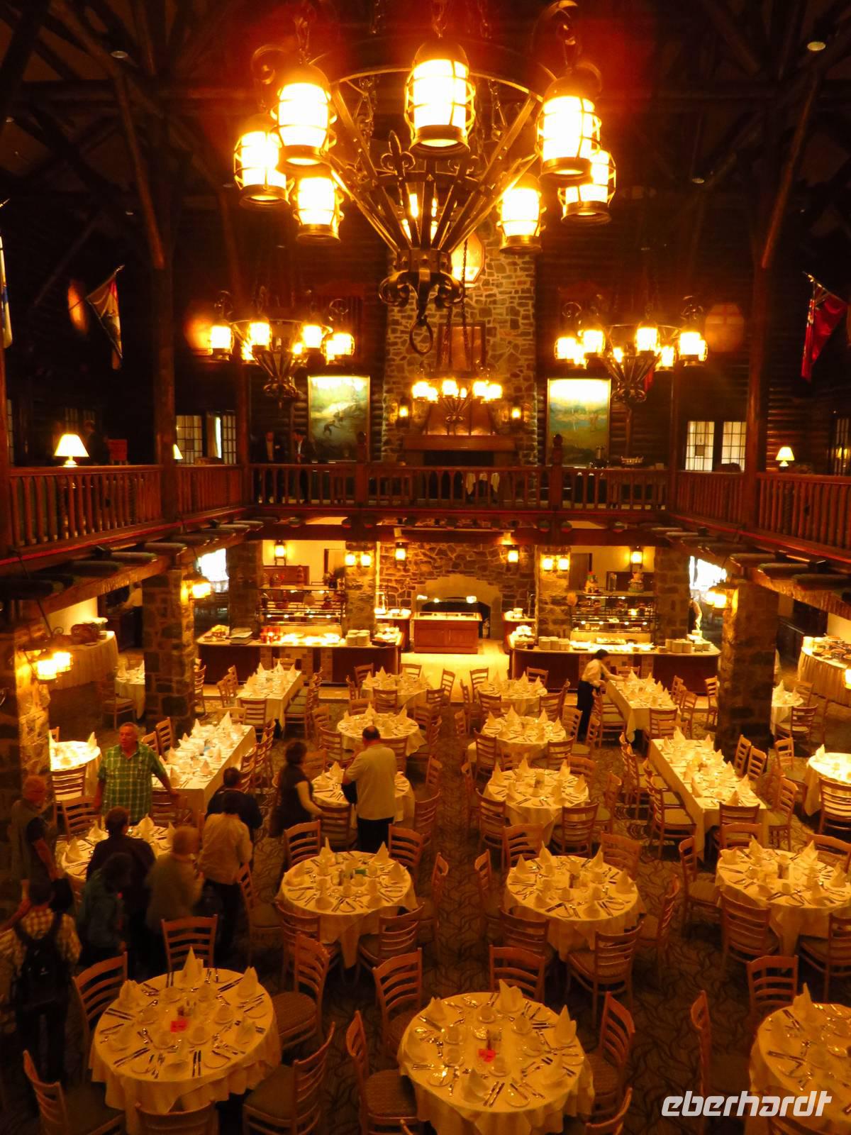 Auf dem Weg sammelten wir bereits die ersten bunt gefärbten Ahornblätter ein, die wir uns alle als Andenken mit nach Hause nehmen wollten und hielten zum Mittag an einer äußerst luxuriös wirkenden Anlage „Le Chateau Montebello". Hier war nicht nur das Gebäude und die Innenausstattung an sich überwältigend, auch die Buffetauswahl war eine Augenweite.