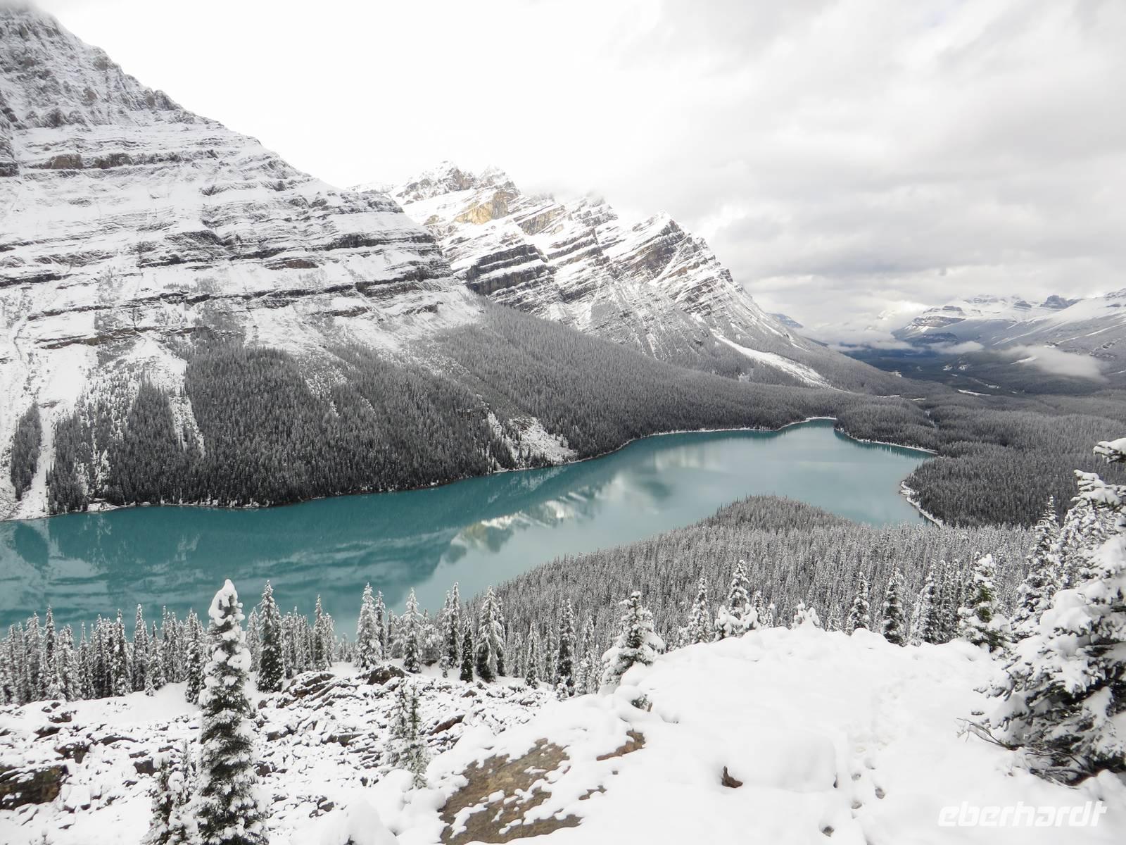 Unser heutiger Tag führte uns zum märchenhaften Lake Louise. Das Zusammenspiel von schneebedeckten Bergspitzen, Wäldern und dem hellblau leuchtendem See war ein Gedicht! Schon der dritte Tag im Westen Kanadas bewies uns, dass dieser voller besonderen Naturschauspielen steckte. Wir konnten gar nicht genug Bilder davon schießen, denn was wir hier sahen, war einzigartig!