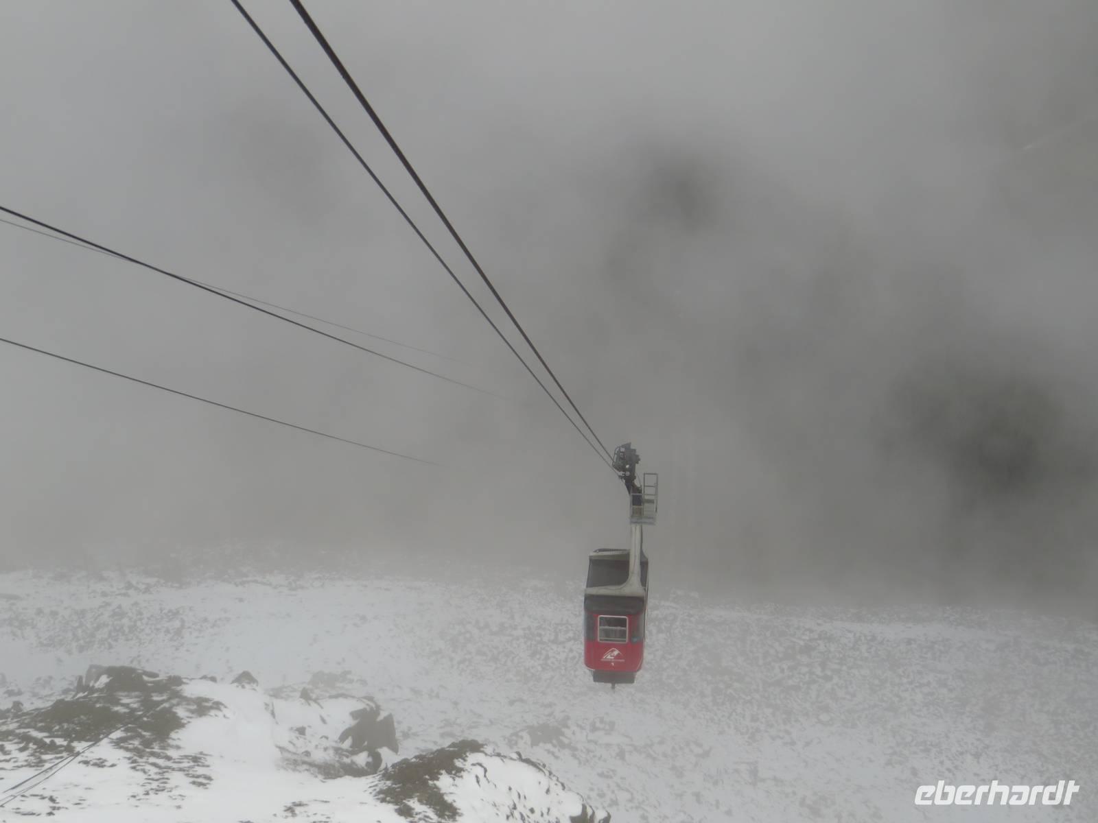 Mit der Jasper Tram ging es zahlreiche Meter nach oben auf die mit Schnee bedeckte Bergspitze. Auch hier lichtete sich gleich nach unserer Ankunft der Himmel und wir hatten eine unwahrscheinlich weite Sicht auf das Tal. Beim Mittagessen konnten wir den Blick direkt am Fenster besonders genießen.