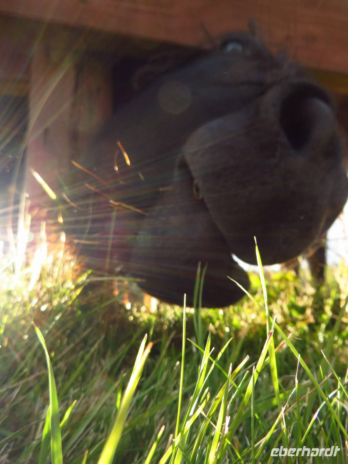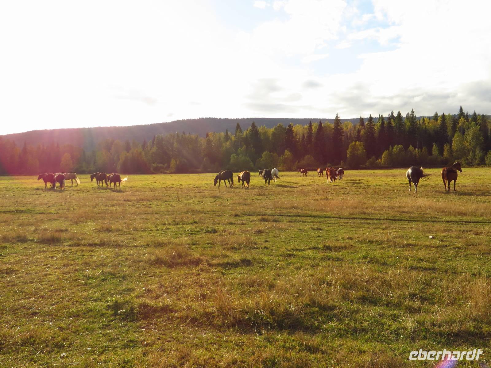 Er zeigte uns was für ein toller Cowboy er ist, indem er uns alle zur Koppel mitnahm.. er pfiff und schon trabten alle Pferde (die 2 kleinen Ponys vorne weg) Richtung Stall.. mehr oder weniger so wie er es wollte. Aber dieses Szenario unterhielt uns ungemein.