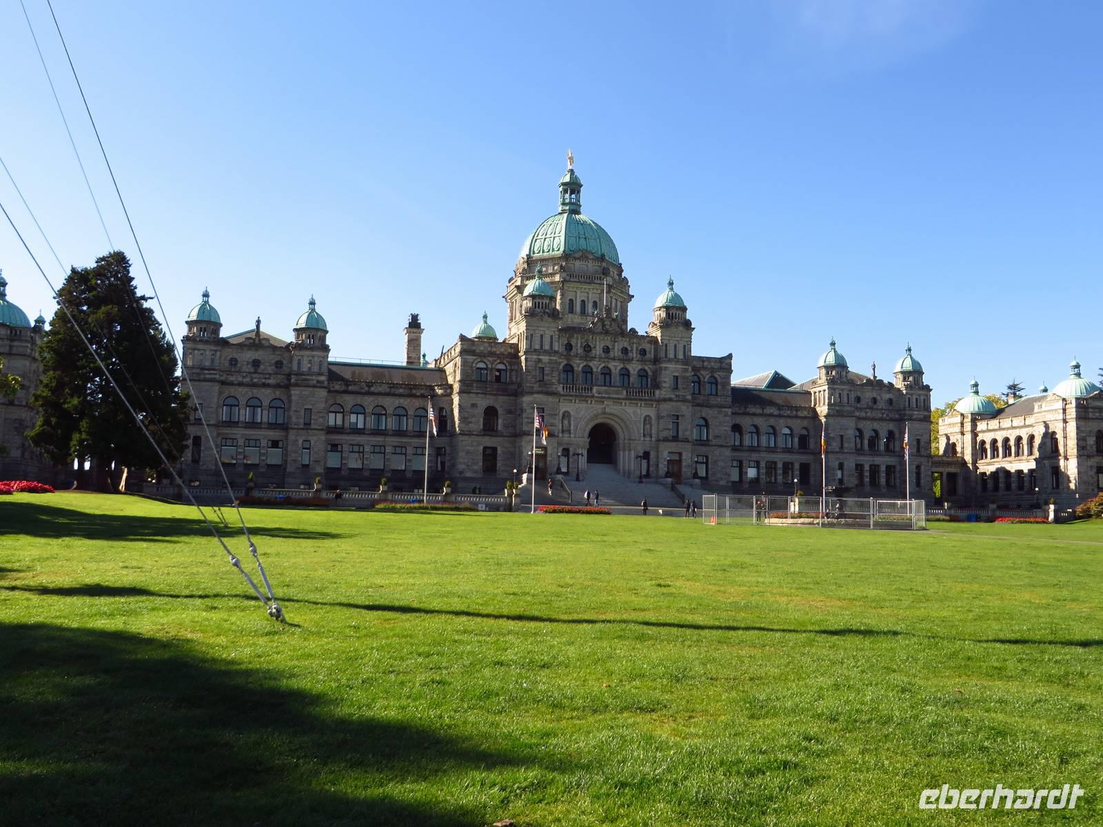 Nach dem Frühstück trafen wir uns zu einem gemeinsamen Spaziergang durch Victoria. Wir besichtigten China Town, ein unglaublich luxuriöses Hotel, bei dem eine Tasse Tee 60 CAD kostet und das Parlamentsgebäude.