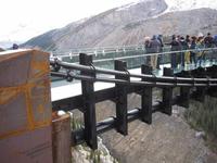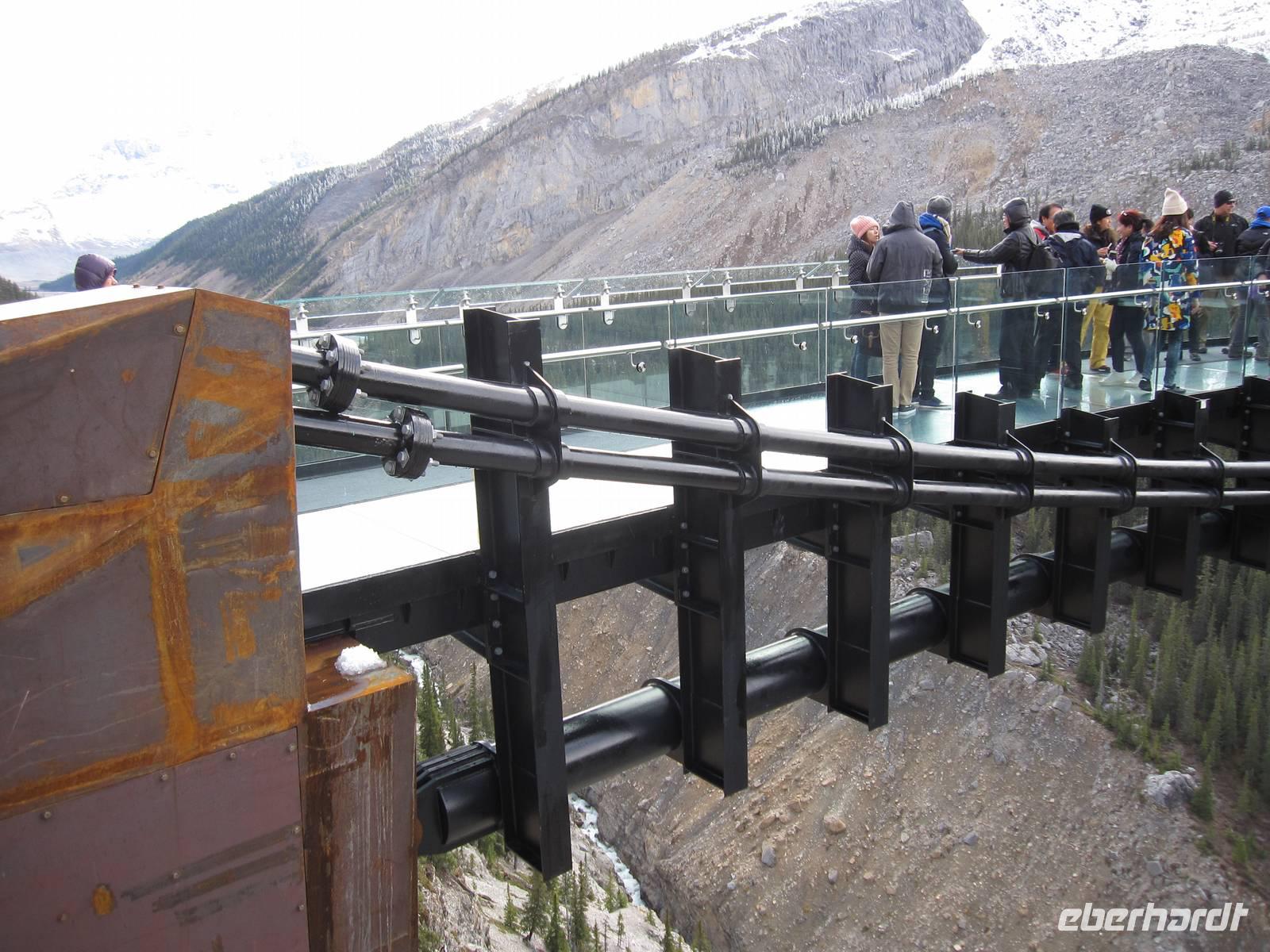 Als wir im Anschluss am Fuße des Athabasca Gletschers ankamen, konnten wir uns aussuchen, ob wir mit dem Schneemobil nach oben oder auf dem Skywalk entlang spazieren möchten. Also teilte sich unsere Gruppe auf.