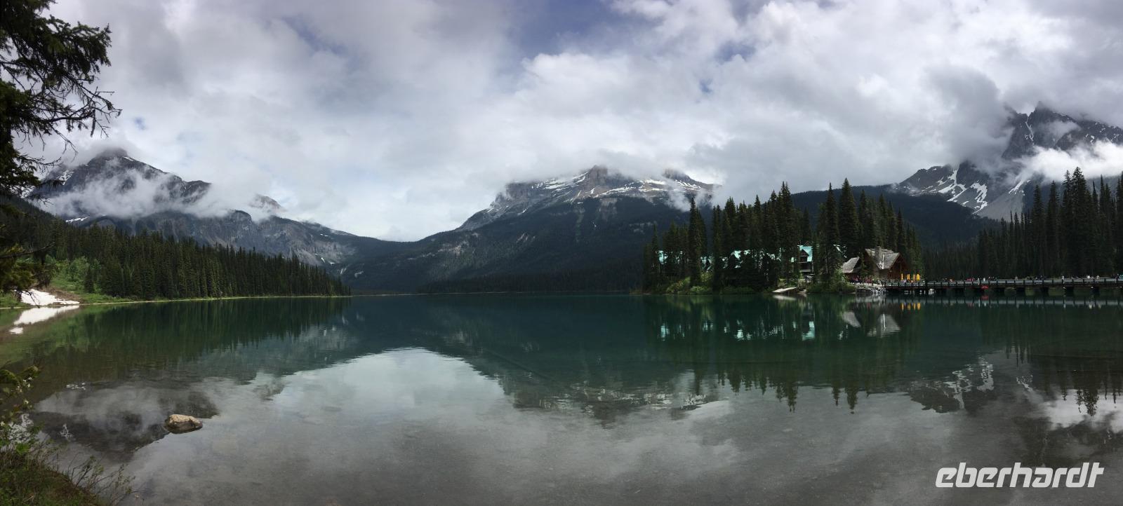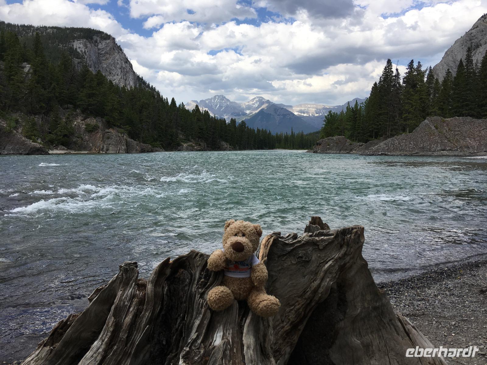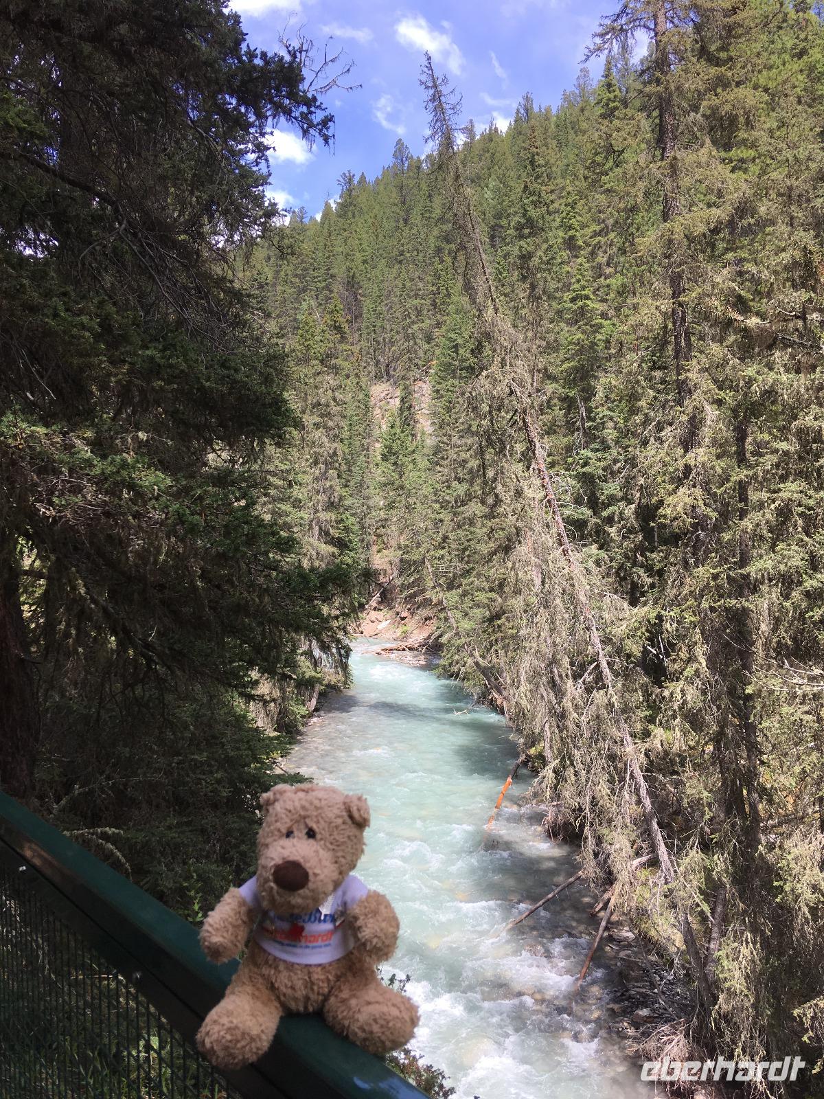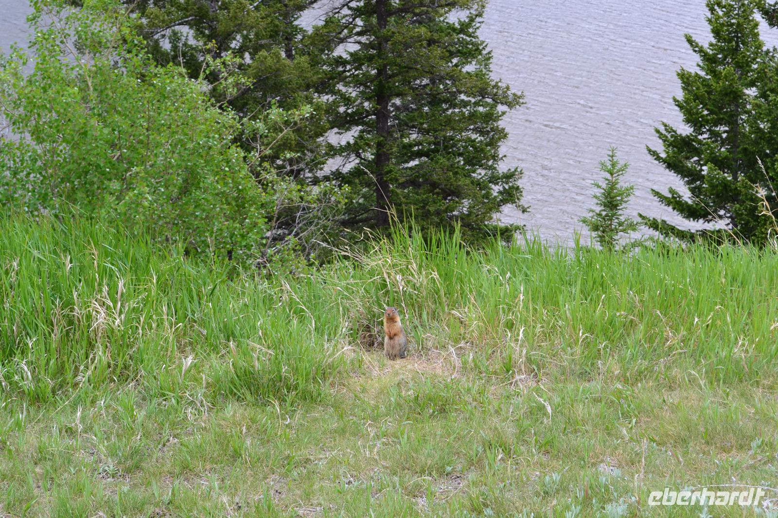 Heute erkunden wir zwei Nationalparks in den Rocky Mountains - den Banff-Nationalpark in in der Provinz Alberta und den Yoho-Nationalpark in der Provinz British Columbia. Der Moraine Lake in der Nachbarschaft des berühmten Lake Louise steht eigentlich nicht auf dem Programm, ist aber mindestens ebenso sehenswert. Leider regnet es heute Vormittag, sodass wir die schöne Färbung und die umliegenden Berggipfel nur erahnen können. Doch das Wetter verleiht der Umgebung auch etwas geheimnisvolles und man kann sich wirklich vorstellen, dass irgendwo dort oben ein Bär oder ein Indianer auf uns herabschaut. Im Lake Louise Village kaufen wir uns etwas zu essen für unser später geplantes Picknick, dann fahren wir nach British Columbia und stoppen an den Spiral Tunnels. Die beiden Kehrtunnel senkten das Maximalgefälle der Eisenbahnstrecke von 4,5 auf 2,2 % und galten bei ihrer Eröffnung 1909 als technische Meisterleistung. Der Emerald Lake im Yoho-Nationalpark liegt herrlich umrahmt von den Bergen und bietet mit der auf einer Insel gelegenen Lodge ein wunderschönes Fotomotiv. Hier am See machen wir auch unsere Mittagspause. Auf der Rückfahrt halten wir an der Natural Bridge, einer natürlichen Steinbrücke, und fahren dann wieder zurück nach Alberta zum Johnston Canyon. Das Wetter hat sich inzwischen deutlich gebessert, die Sonne scheint wieder, sodass einer schönen kleinen Wanderung nichts im Wege steht. Mein Eberhardt-Reisebär hat sogar eine Begegnung mit einem neugierigen Streifenhörnchen. Bei einem weiteren Fotostopp kurz vor Banff sehen wir dann sogar Murmeltiere! Den späten Nachmittag/Abend in Banff können wir heute für eigene Erkundungen nutzen.