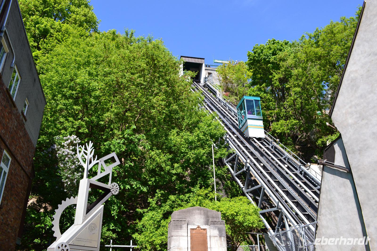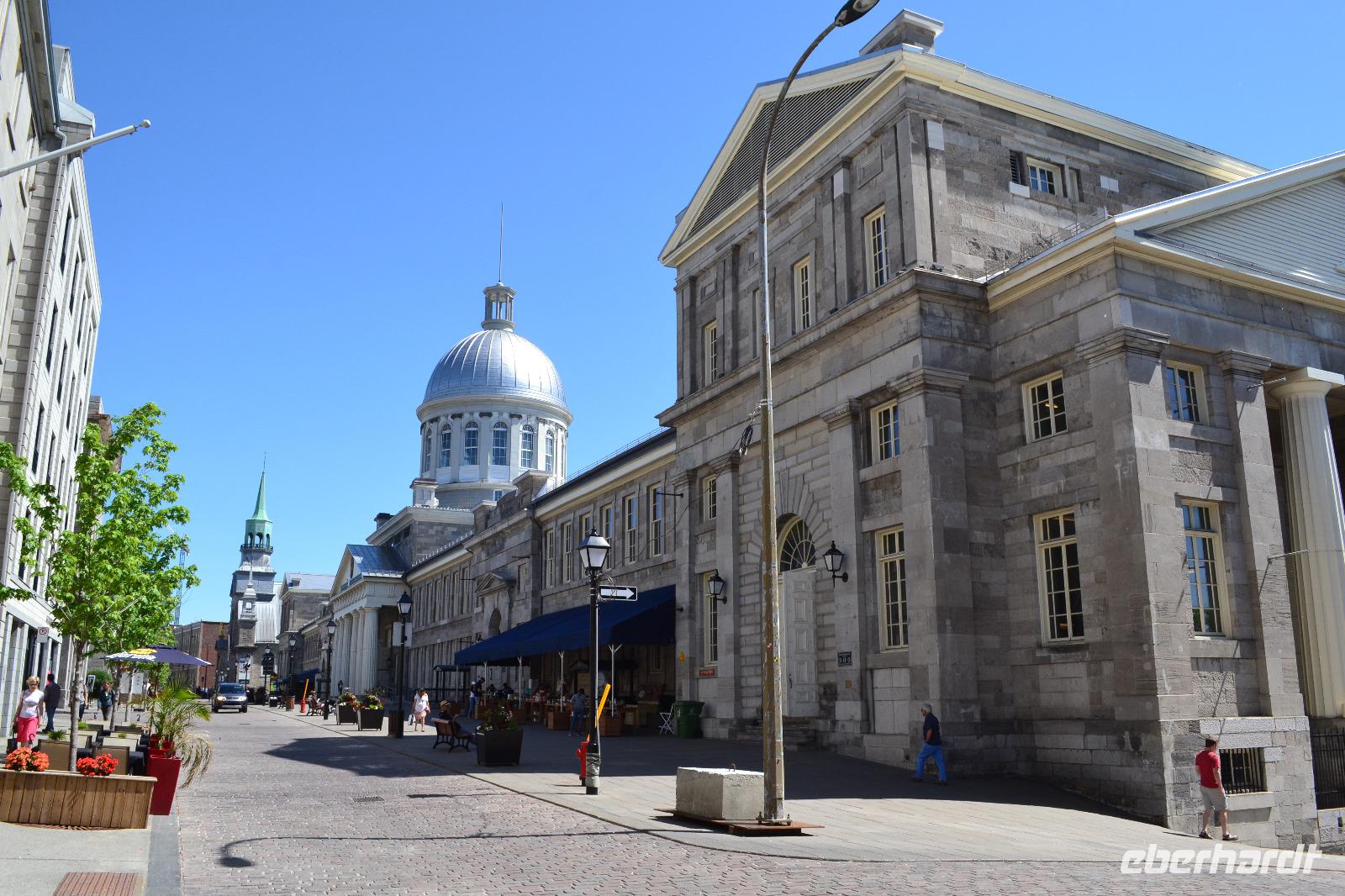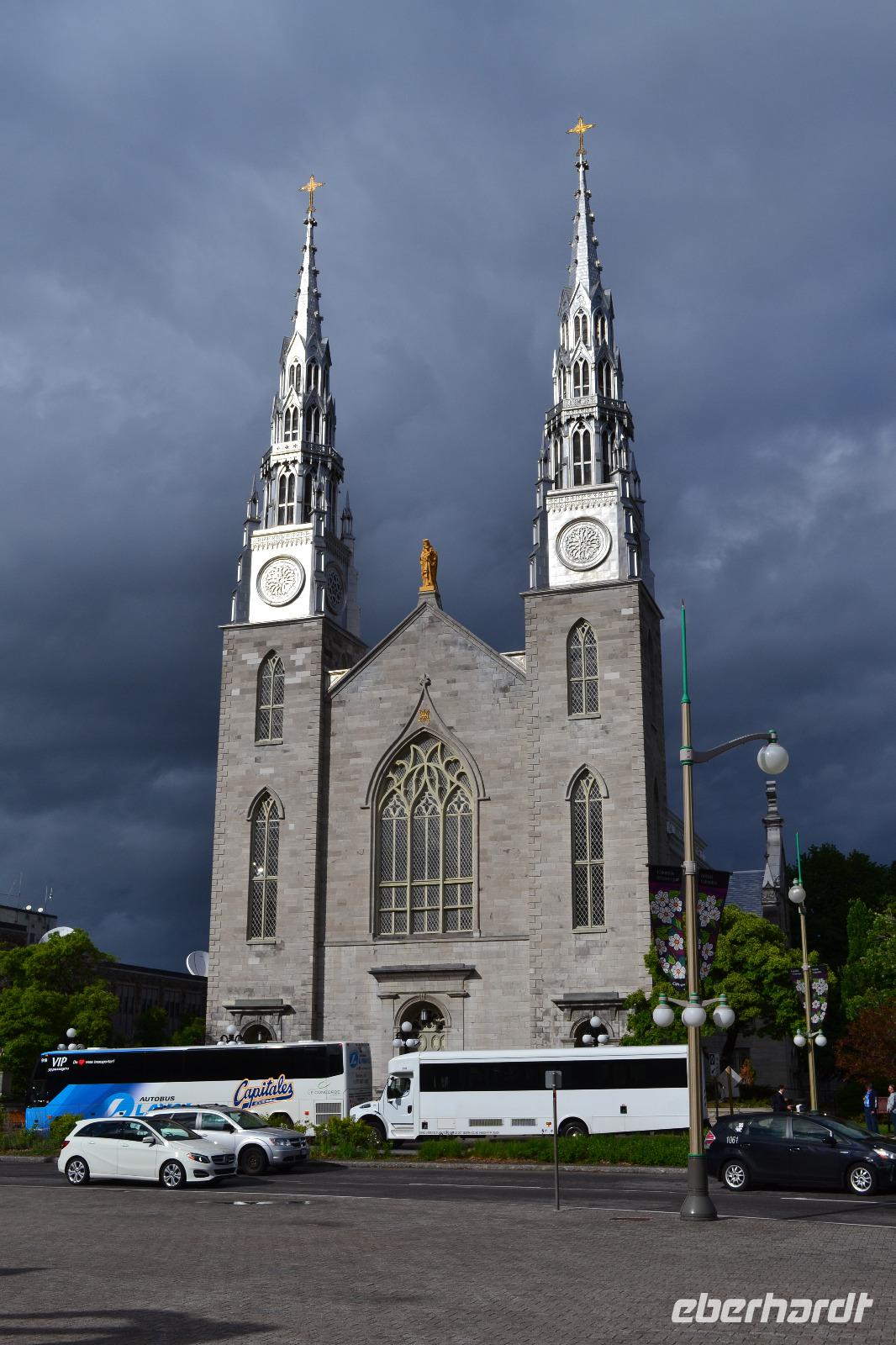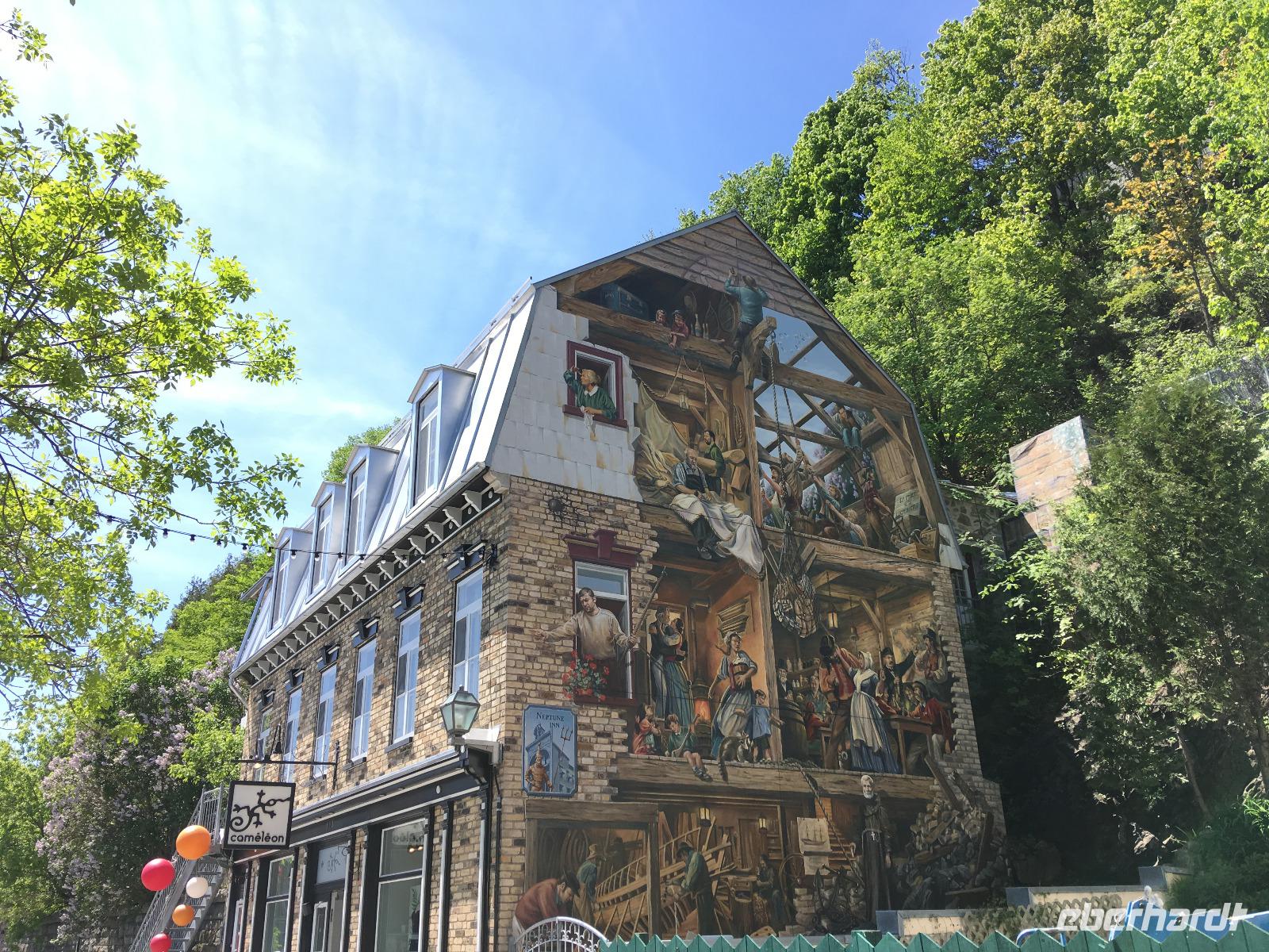 Am nächsten Morgen holt uns Celine wieder vom Hotel ab und wir setzen unsere Erkundungstour fort. Unser erstes Ziel ist die Kathedrale Notre Dame. Die römisch-katholische Basilika im neugotischen Stil wurde von einem protestantischen Architekten aus New York entworfen und ab 1824 erbaut. Kurz vor seinem Tod trat der Architekt zum katholischen Glauben über, damit er in der Krypta unter „seiner" Kirche begraben werden konnte. Auch unser nächster Halt ist an einer Kirche - an der anglikanischen Christ Church Cathedral, erbaut in den Jahren 1857 bis 1859. Wir gehen allerdings nicht hinein, sondern fahren mit der Rolltreppe unter die Kirche in die unterirdische Stadt. Zum Glück ist Celine dabei, denn hier in den Einkaufspassagen könnten wir uns wirklich verlaufen. Das Netzwerk von unterirdischen Passagen hilft den Einwohnern von Montréal im Winter, trotz vereister Straßen und sich stapelnder Schneemassen morgens zur Arbeit und abends wieder nach Hause zu gelangen. Wir wollen aber weder arbeiten noch shoppen, sondern uns die Sehenswürdigkeiten von Montréal anschauen, weshalb uns Celine noch bis zum Rathaus bringt, wo wir uns von ihr verabschieden. Die quirlige Altstadt zwischen Rathaus und ehemaligem Hafengelände können wir nun bei sehr schönem Wetter auf eigene Faust erkunden, bevor wir uns gegen Mittag wieder am Bus treffen. Bevor wir Montréal endgültig verlassen, habe ich meinen Gästen noch versprochen, dass wir auf den namensgebenden Hügel, Verzeihung: den königlichen Berg, hinauffahren. Dort befinden sich zwei sehr schöne Aussichtspunkte, die uns einen Blick Richtung Innenstadt und Hafen bzw. Richtung Olympiagelände eröffnen. Jetzt müssen wir aber wirklich aus der Stadt raus, denn bis Québec liegen einige Kilometer vorwärts, zumal ich gern die Panoramastrecke am Ufer des Sankt-Lorenz-Stroms nehmen möchte, der uns durch kleine Dörfchen mit hübschen Häuschen führt. An der Wallfahrtskirche Notre-Dame-du-Cap in Trois-Rivières legen wir einen Zwischenstopp ein. An diesem Ort sollen sich zwei Wunder ereignet haben - zuerst soll sich eine Brücke aus Eis über den Sankt-Lorenz-Strom geformt und später dann soll die Marienstatue in der alten Kirche (eine der ältesten Steinkirchen Nordamerikas) vor drei Zeugen ihre Augen geöffnet haben. Architektonisch interessant ist die moderne Basilika auf jeden Fall - es findet sogar gerade ein Gottesdienst statt - doch bzgl. der Wunder bin ich sehr skeptisch. Am Abend erreichen wir dann Québec City, und spätestens als wir vor dem Abendessen durch die gerade sehr ruhige untere Altstadt wandeln und über uns das von der Abendsonne angestrahlte Château Frontenac erblicken, ist es um uns geschehen.