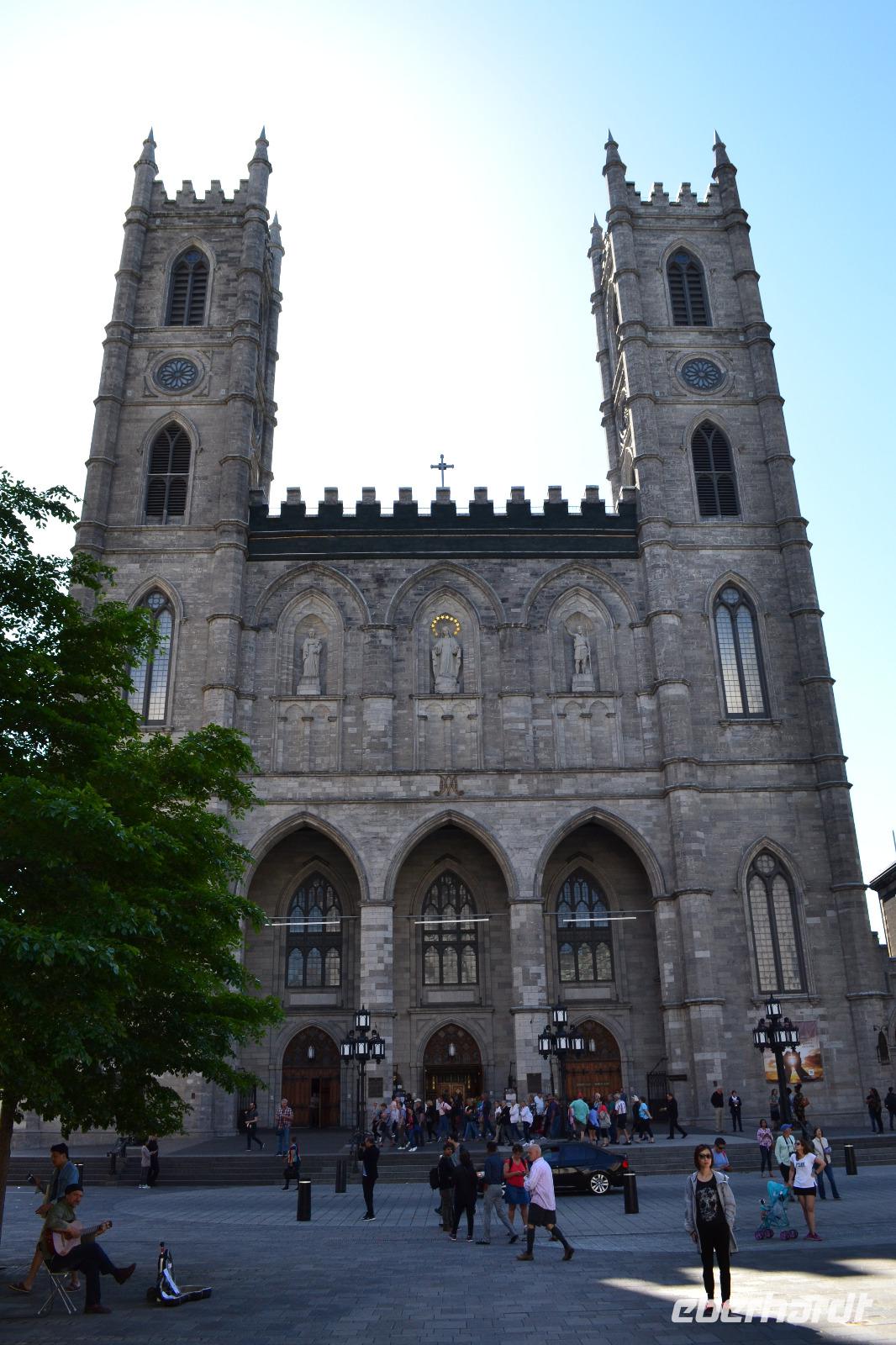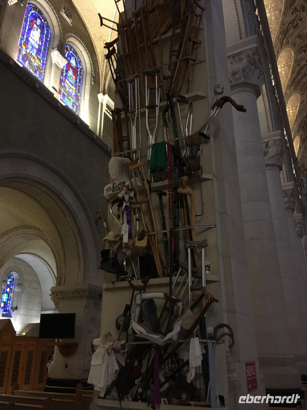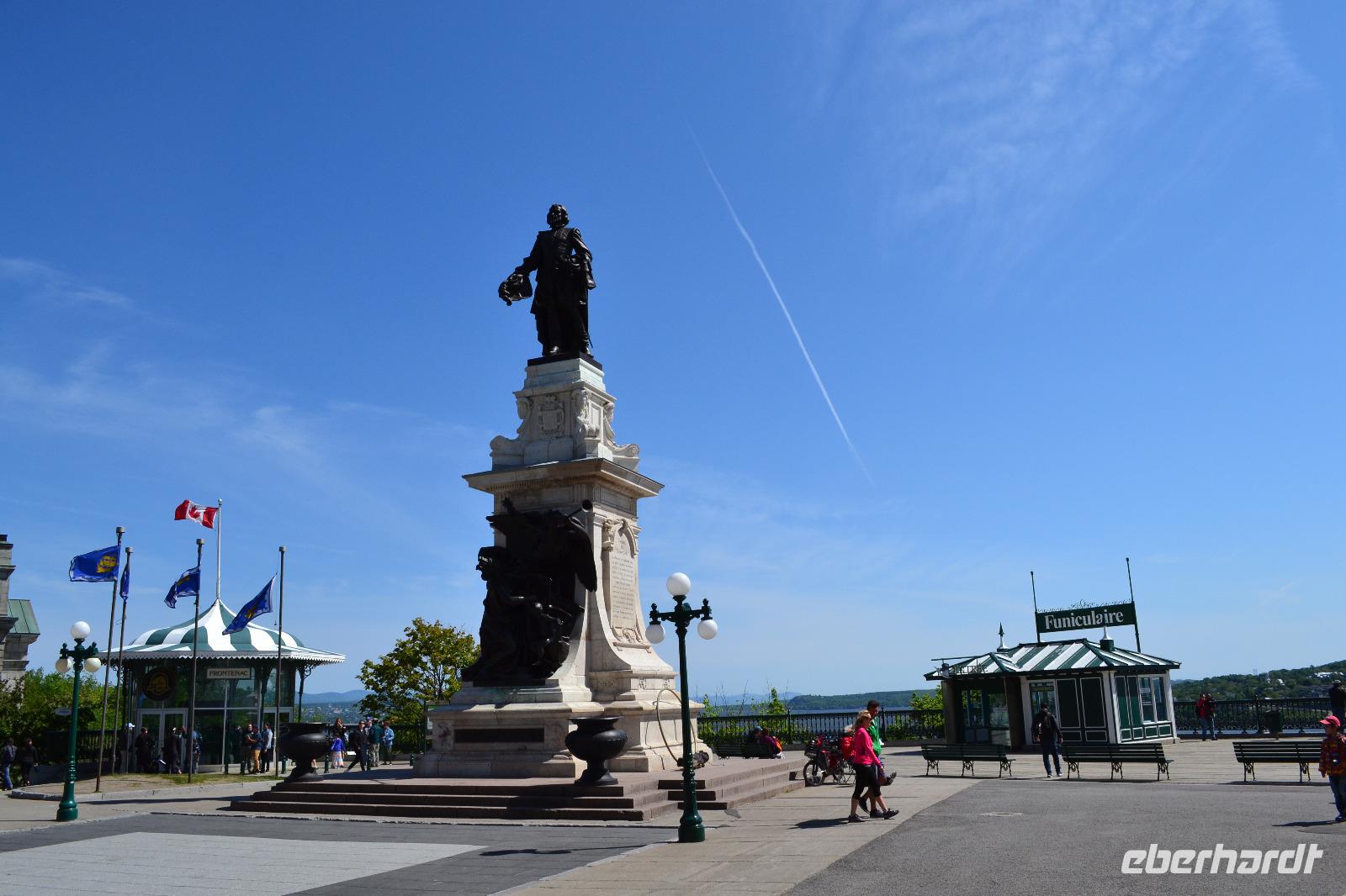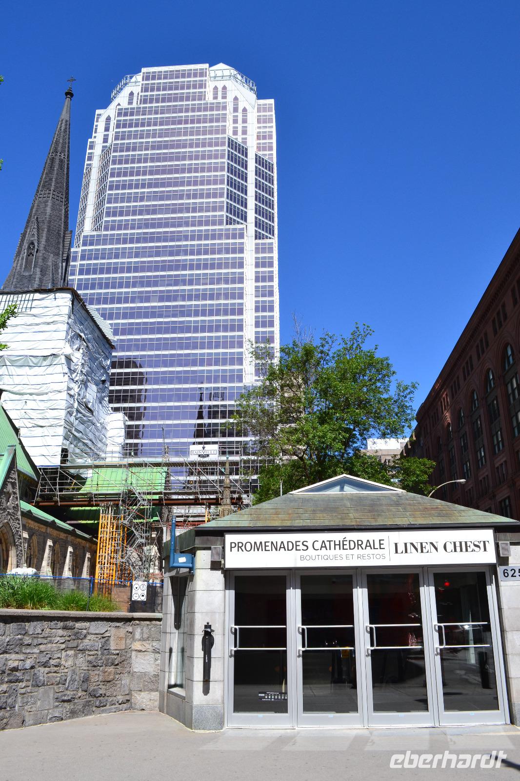 Am nächsten Morgen holt uns Celine wieder vom Hotel ab und wir setzen unsere Erkundungstour fort. Unser erstes Ziel ist die Kathedrale Notre Dame. Die römisch-katholische Basilika im neugotischen Stil wurde von einem protestantischen Architekten aus New York entworfen und ab 1824 erbaut. Kurz vor seinem Tod trat der Architekt zum katholischen Glauben über, damit er in der Krypta unter „seiner" Kirche begraben werden konnte. Auch unser nächster Halt ist an einer Kirche - an der anglikanischen Christ Church Cathedral, erbaut in den Jahren 1857 bis 1859. Wir gehen allerdings nicht hinein, sondern fahren mit der Rolltreppe unter die Kirche in die unterirdische Stadt. Zum Glück ist Celine dabei, denn hier in den Einkaufspassagen könnten wir uns wirklich verlaufen. Das Netzwerk von unterirdischen Passagen hilft den Einwohnern von Montréal im Winter, trotz vereister Straßen und sich stapelnder Schneemassen morgens zur Arbeit und abends wieder nach Hause zu gelangen. Wir wollen aber weder arbeiten noch shoppen, sondern uns die Sehenswürdigkeiten von Montréal anschauen, weshalb uns Celine noch bis zum Rathaus bringt, wo wir uns von ihr verabschieden. Die quirlige Altstadt zwischen Rathaus und ehemaligem Hafengelände können wir nun bei sehr schönem Wetter auf eigene Faust erkunden, bevor wir uns gegen Mittag wieder am Bus treffen. Bevor wir Montréal endgültig verlassen, habe ich meinen Gästen noch versprochen, dass wir auf den namensgebenden Hügel, Verzeihung: den königlichen Berg, hinauffahren. Dort befinden sich zwei sehr schöne Aussichtspunkte, die uns einen Blick Richtung Innenstadt und Hafen bzw. Richtung Olympiagelände eröffnen. Jetzt müssen wir aber wirklich aus der Stadt raus, denn bis Québec liegen einige Kilometer vorwärts, zumal ich gern die Panoramastrecke am Ufer des Sankt-Lorenz-Stroms nehmen möchte, der uns durch kleine Dörfchen mit hübschen Häuschen führt. An der Wallfahrtskirche Notre-Dame-du-Cap in Trois-Rivières legen wir einen Zwischenstopp ein. An diesem Ort sollen sich zwei Wunder ereignet haben - zuerst soll sich eine Brücke aus Eis über den Sankt-Lorenz-Strom geformt und später dann soll die Marienstatue in der alten Kirche (eine der ältesten Steinkirchen Nordamerikas) vor drei Zeugen ihre Augen geöffnet haben. Architektonisch interessant ist die moderne Basilika auf jeden Fall - es findet sogar gerade ein Gottesdienst statt - doch bzgl. der Wunder bin ich sehr skeptisch. Am Abend erreichen wir dann Québec City, und spätestens als wir vor dem Abendessen durch die gerade sehr ruhige untere Altstadt wandeln und über uns das von der Abendsonne angestrahlte Château Frontenac erblicken, ist es um uns geschehen.
