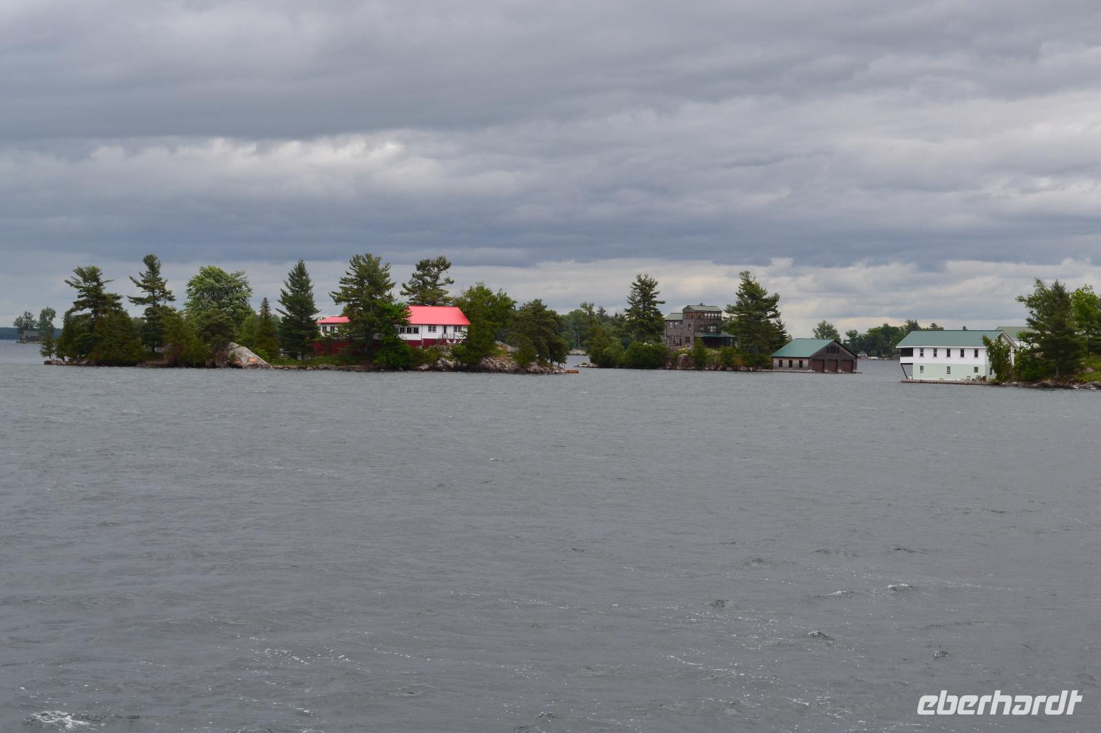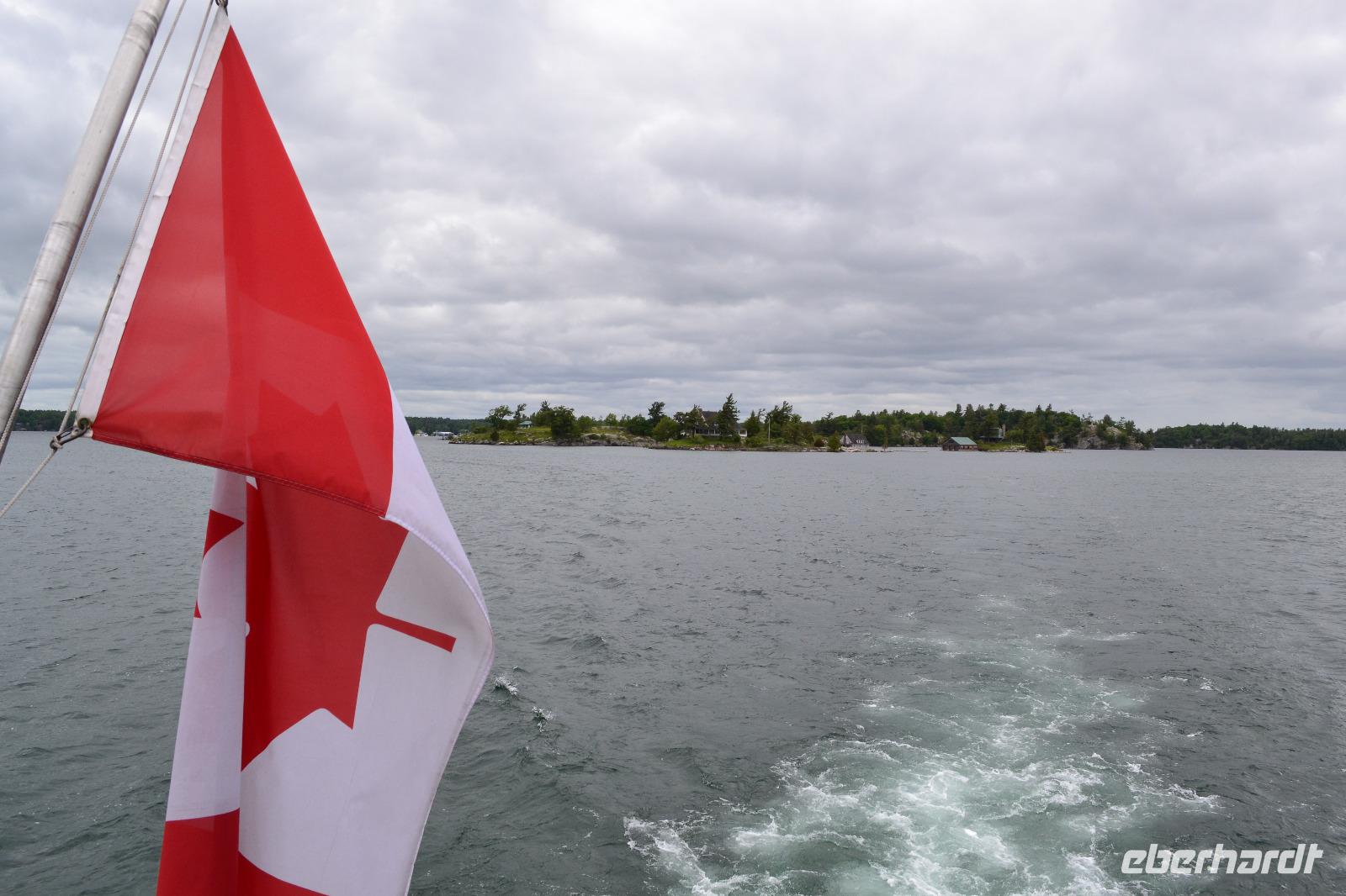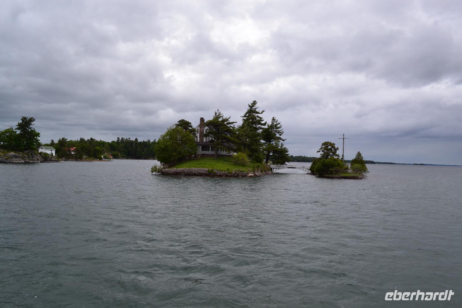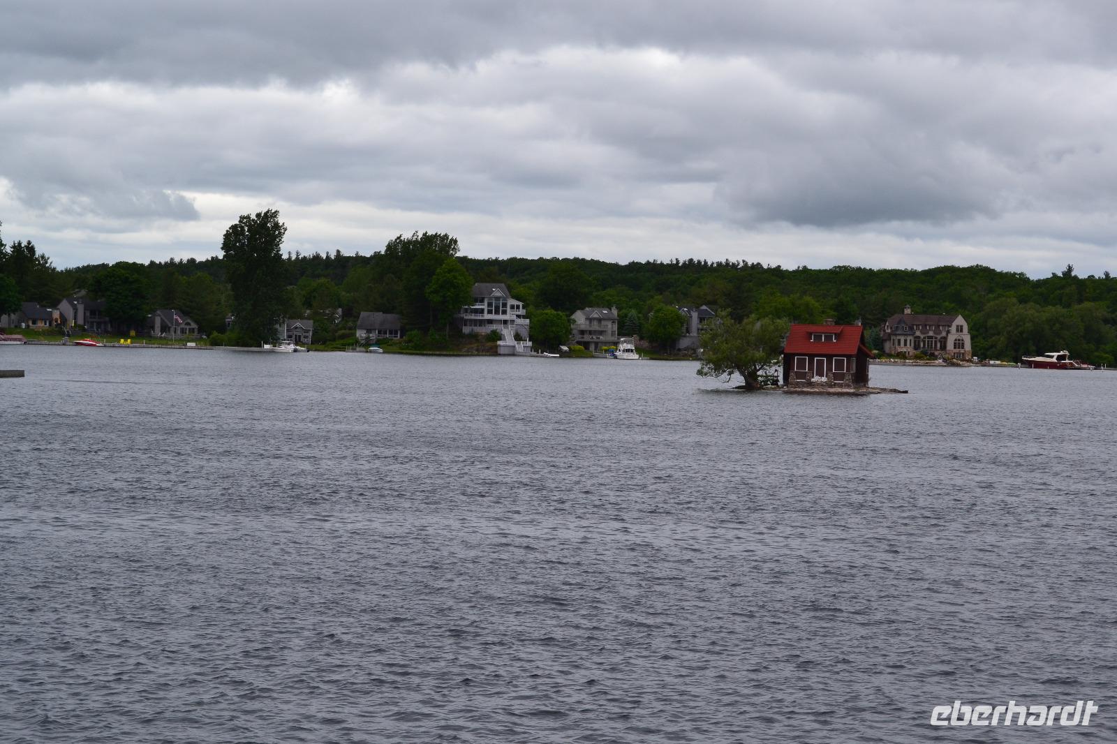 Das Canadian Museum of History geht in seinen Anfängen zurück bis vor die Gründung des Dominion of Canada 1867. Seit 1989 befindet es sich am jetzigen Standort in Gatineau am Ottawa-Fluss. Schon das Museumsgebäude selbst ist sehr beeindruckend, denn der Architekt Douglas Cardinal griff in seinem Entwurf viele Elemente indigener Kulturen auf. Auf mehreren Etagen wird sehr anschaulich die Geschichte der First Nations und die Geschichte der Kolonisierung Kanadas erzählt, zuerst unter französischer, dann unter britischer Herrschaft. Im Foyer treffen wir unsere Stadtführerin Stephanie wieder, die schon mit der nächsten Reisegruppe unterwegs ist. Wir könnten bestimmt einen ganzen Tag im Museum verbringen und hätten immer noch nicht alles gesehen. Doch wir möchten heute auch noch eine Bootsfahrt zu den 1.000 Inseln unternehmen. Deshalb fahren wir wieder nach Süden an den Sankt-Lorenz-Strom. Nach einem gemeinsamen Mittagessen in Rockport geht es auch schon auf das Schiff. Bei unserer Fahrt überqueren wir auch die kanadisch-amerikanische Grenze, die hier mitten durch den Sankt-Lorenz-Strom verläuft. Insgesamt gibt es hier übrigens nicht nur 1.000, sondern 1.864 Inseln! Allerdings bilden nur 21 davon den Thousand-Islands-Nationalpark, den kleinsten Nationalpark Kanadas. Für die Superreichen sind die vielen Inseln offenbar ein beliebter Rückzugsort, denn sie sind gesprenkelt mit kleinen und großen Häusern und Villen. Mit dem Boldt Castle gibt es sogar ein standesgemäßes Schloss zu besichtigen. Mir ist jedoch vor allem die Schwiegermutter-Insel im Gedächtnis geblieben - sie ist so klein, dass gerade mal eine kleine Hütte und ein Baum darauf passen.