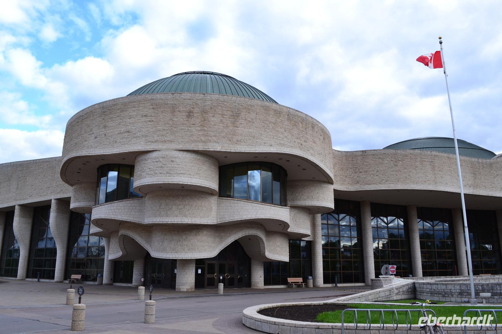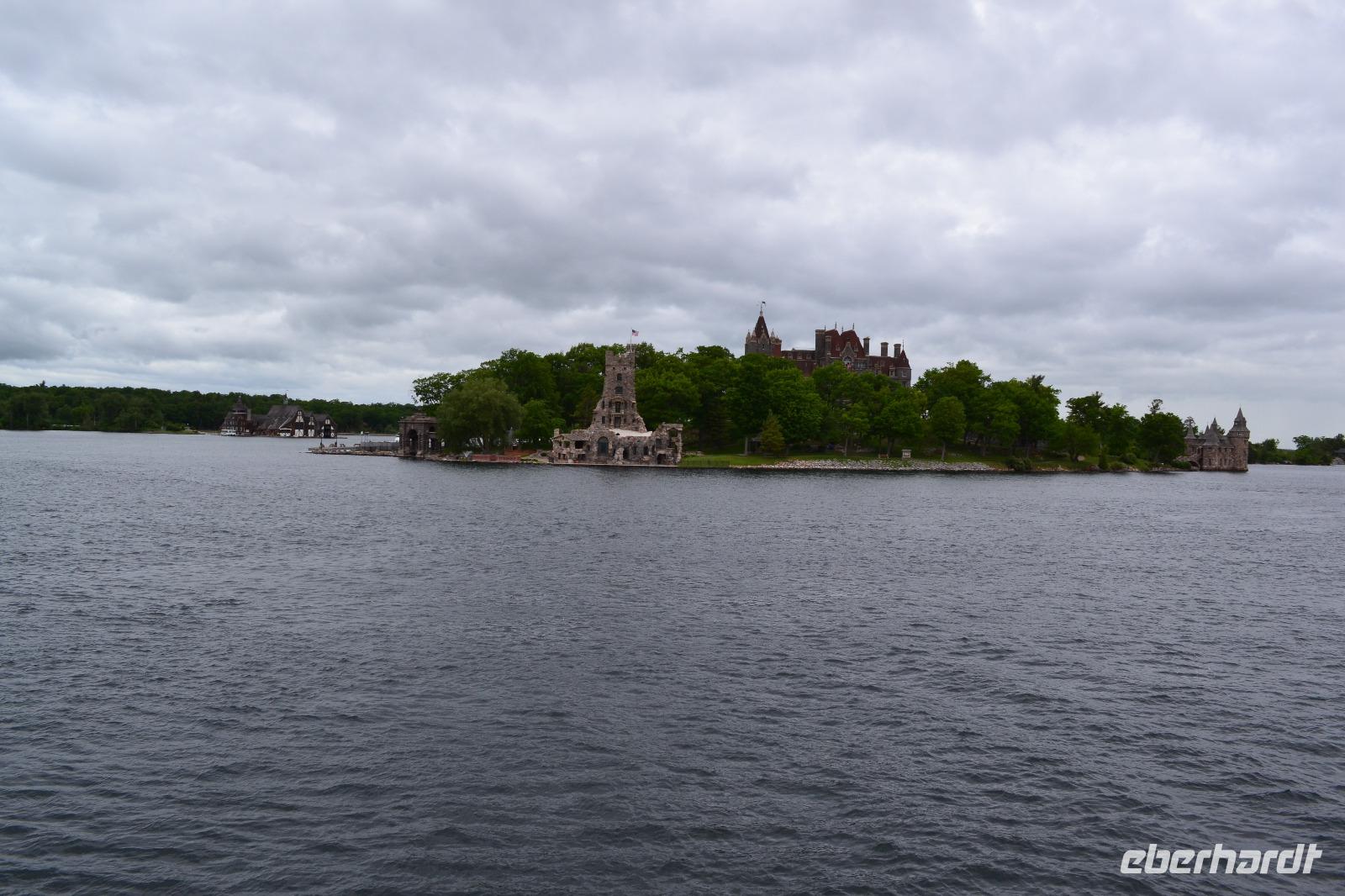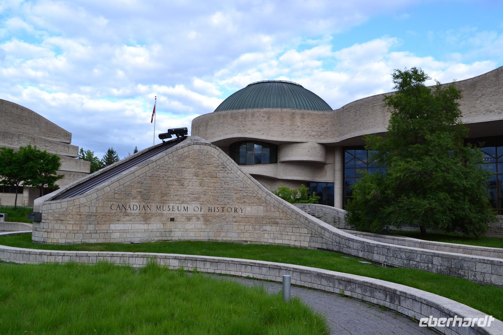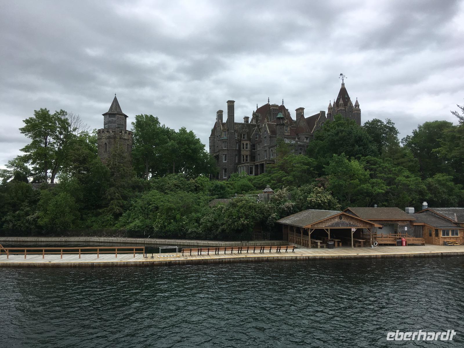 Das Canadian Museum of History geht in seinen Anfängen zurück bis vor die Gründung des Dominion of Canada 1867. Seit 1989 befindet es sich am jetzigen Standort in Gatineau am Ottawa-Fluss. Schon das Museumsgebäude selbst ist sehr beeindruckend, denn der Architekt Douglas Cardinal griff in seinem Entwurf viele Elemente indigener Kulturen auf. Auf mehreren Etagen wird sehr anschaulich die Geschichte der First Nations und die Geschichte der Kolonisierung Kanadas erzählt, zuerst unter französischer, dann unter britischer Herrschaft. Im Foyer treffen wir unsere Stadtführerin Stephanie wieder, die schon mit der nächsten Reisegruppe unterwegs ist. Wir könnten bestimmt einen ganzen Tag im Museum verbringen und hätten immer noch nicht alles gesehen. Doch wir möchten heute auch noch eine Bootsfahrt zu den 1.000 Inseln unternehmen. Deshalb fahren wir wieder nach Süden an den Sankt-Lorenz-Strom. Nach einem gemeinsamen Mittagessen in Rockport geht es auch schon auf das Schiff. Bei unserer Fahrt überqueren wir auch die kanadisch-amerikanische Grenze, die hier mitten durch den Sankt-Lorenz-Strom verläuft. Insgesamt gibt es hier übrigens nicht nur 1.000, sondern 1.864 Inseln! Allerdings bilden nur 21 davon den Thousand-Islands-Nationalpark, den kleinsten Nationalpark Kanadas. Für die Superreichen sind die vielen Inseln offenbar ein beliebter Rückzugsort, denn sie sind gesprenkelt mit kleinen und großen Häusern und Villen. Mit dem Boldt Castle gibt es sogar ein standesgemäßes Schloss zu besichtigen. Mir ist jedoch vor allem die Schwiegermutter-Insel im Gedächtnis geblieben - sie ist so klein, dass gerade mal eine kleine Hütte und ein Baum darauf passen.