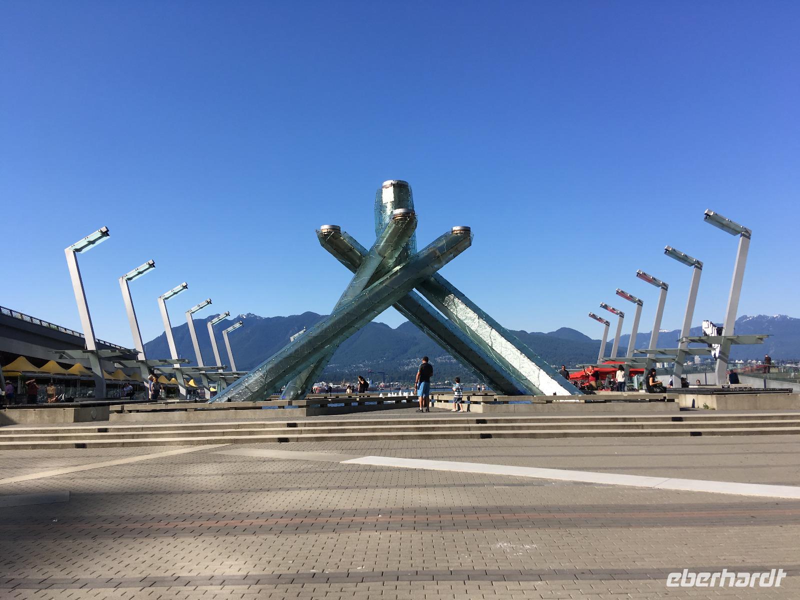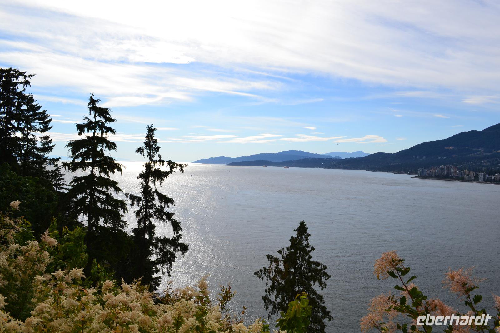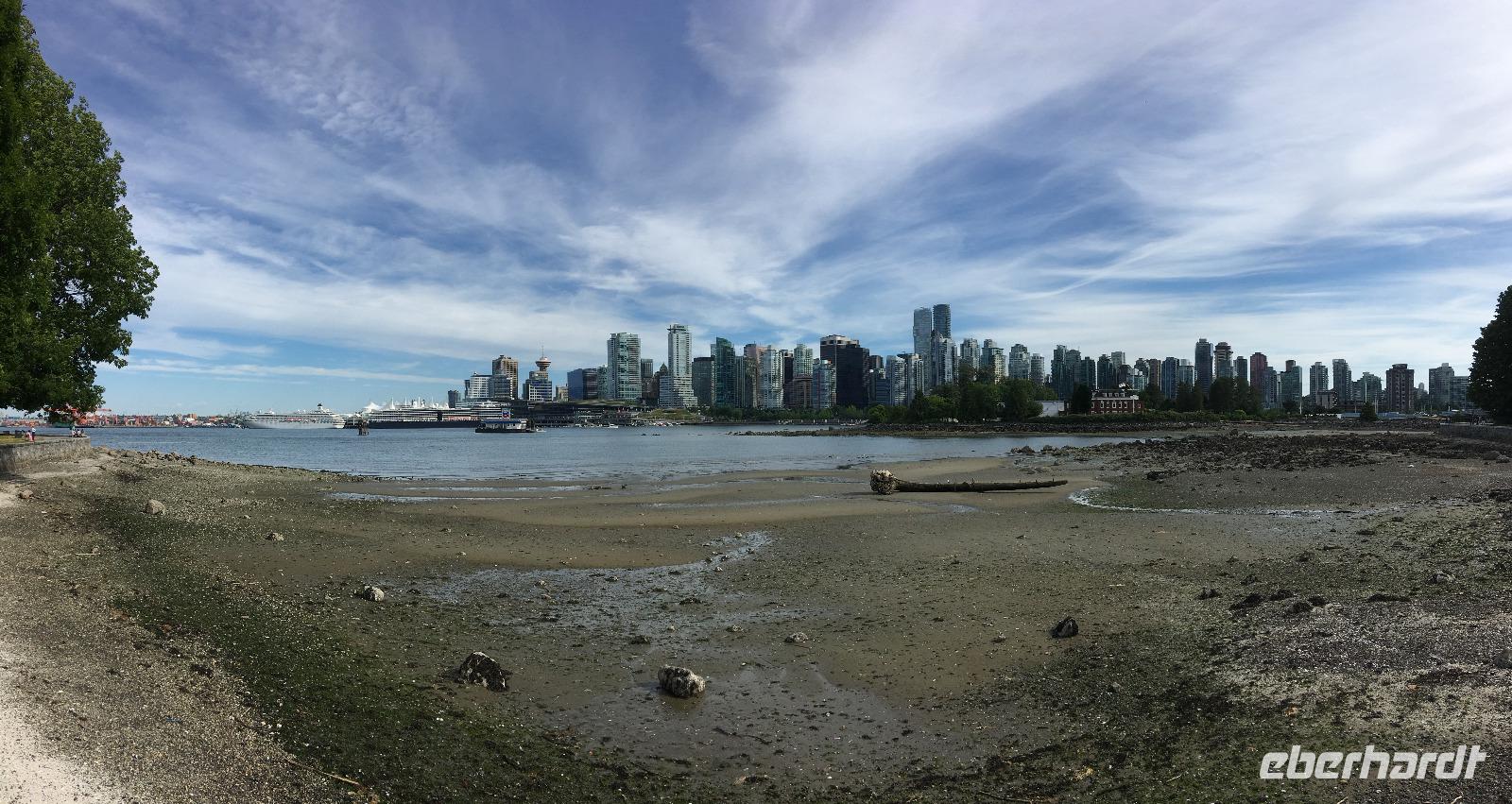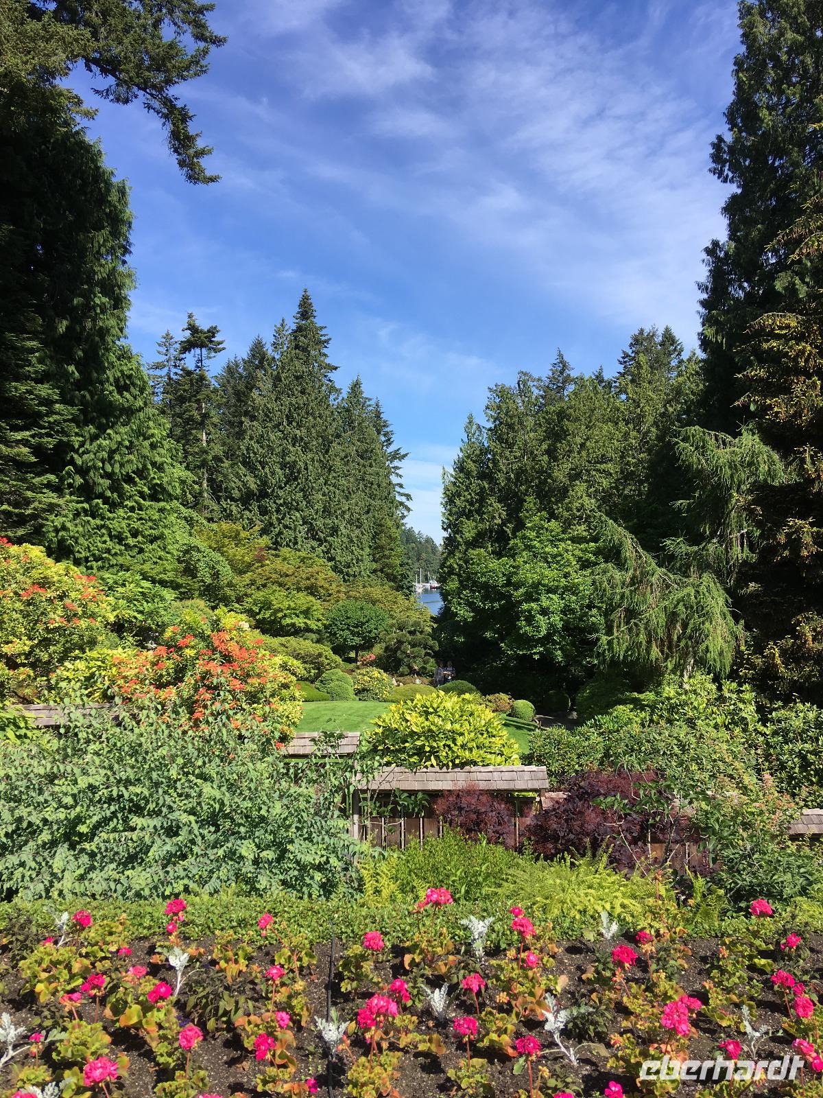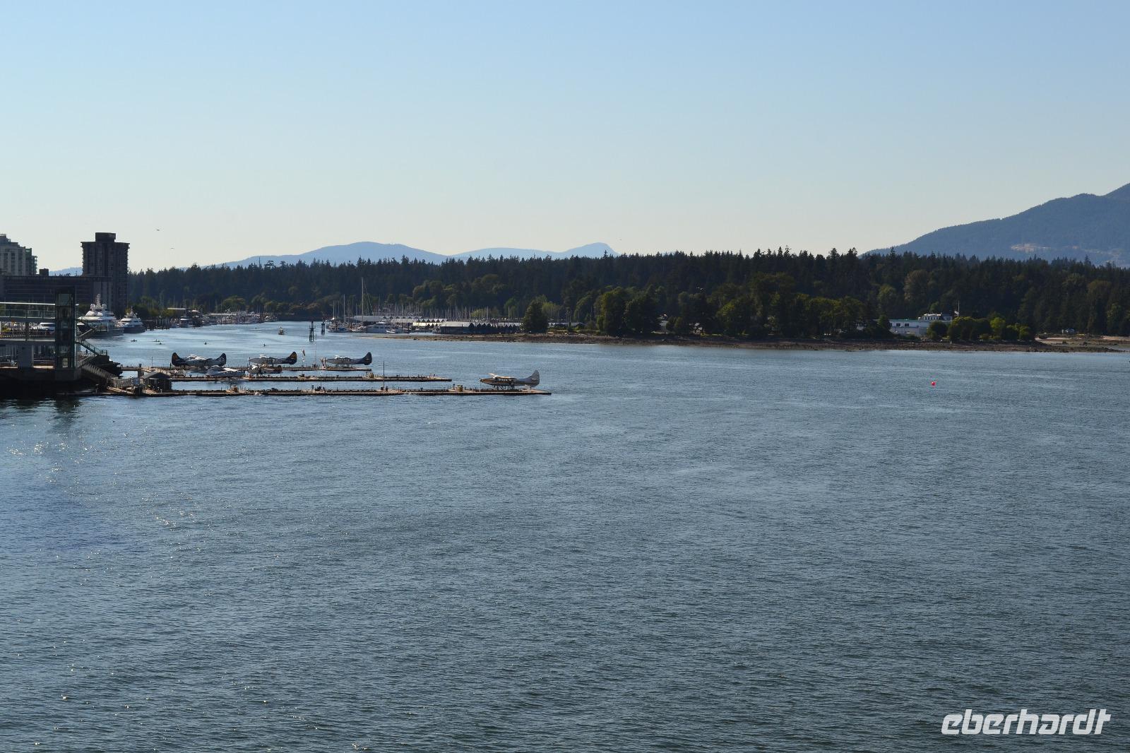 Da wir es am gestrigen Abend aus Zeitgründen nicht mehr geschafft haben, holen wir heute morgen zuerst den Fotostopp am Ausgangs- bzw. Endpunkt des Transcanada Highway (Mile 0) nach. Für meine Gäste scheint allerdings die Aussicht über die Juan-de-Fuca-Straße auf die Olympic Mountains im Norden des US-Bundesstaates Washington interessanter zu sein. Bevor wir dann mit der Fähre wieder zurück aufs Festland fahren, besichtigen wir die Butchart Gardens. Sie gehen zurück auf das Jahr 1904, als Jennie Butchart damit begann, den aufgelassenen Steinbruch ihres Mannes zu verschönern. Daraus entwickelte sich im Laufe der Zeit eine heute 22 Hektar große Anlage, die sich noch immer im Privatbesitz befindet. Nach der Begrüßung durch eine Mitarbeiterin können wir die Gärten auf eigene Faust erkunden. In einem der Gartenrestaurants erhalten wir dann alle ein reichhaltiges Mittagessen, bevor es zur Fähre geht. Vor allem der erste Teil der Überfahrt ist sehr schön, denn er führt an vielen Buchten und Inseln vorbei. Am Nachmittag erreichen wir dann die drittgrößte Metropolregion Kanadas und größte Stadt im Westen Kanadas, Vancouver. Sie entstand Mitte/Ende des 19. Jahrhunderts infolge eines Goldrausches und entwickelte sich zunächst mit dem Bau der Eisenbahn und später durch die Eröffnung des Panamakanals zu einem wichtigen Handelsposten. Wir fahren durch Chinatown und den historischen Stadtteil Gastown, dessen wichtigste Sehenswürdigkeit eine berühmte Dampfuhr ist. Im Vergleich mit europäischen Städten oder auch den Städten an der kanadischen Ostküste ist Vancouver jedoch eine sehr junge Stadt, weshalb vor allem moderne Wolkenkratzer das Stadtbild prägen. Vom Stanley Park aus, dem größten Stadtpark Kanadas, bietet sich uns eine gute Sicht auf die Skyline, den Hafen und die Berge im Norden Vancouvers. Auch die Wasserflugzeuge können wir gut beobachten, die im Hafen starten und landen. Im Park gibt es auch eine Sammlung an Totempfählen, die an die ehemaligen Bewohner des Areals erinnern. Mit vielen schönen Fotos im Gepäck (auch heute ist das Wetter wieder super) fahren wir zu unserem Hotel an der English Bay.
