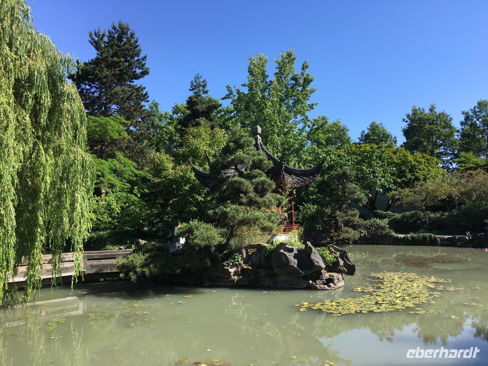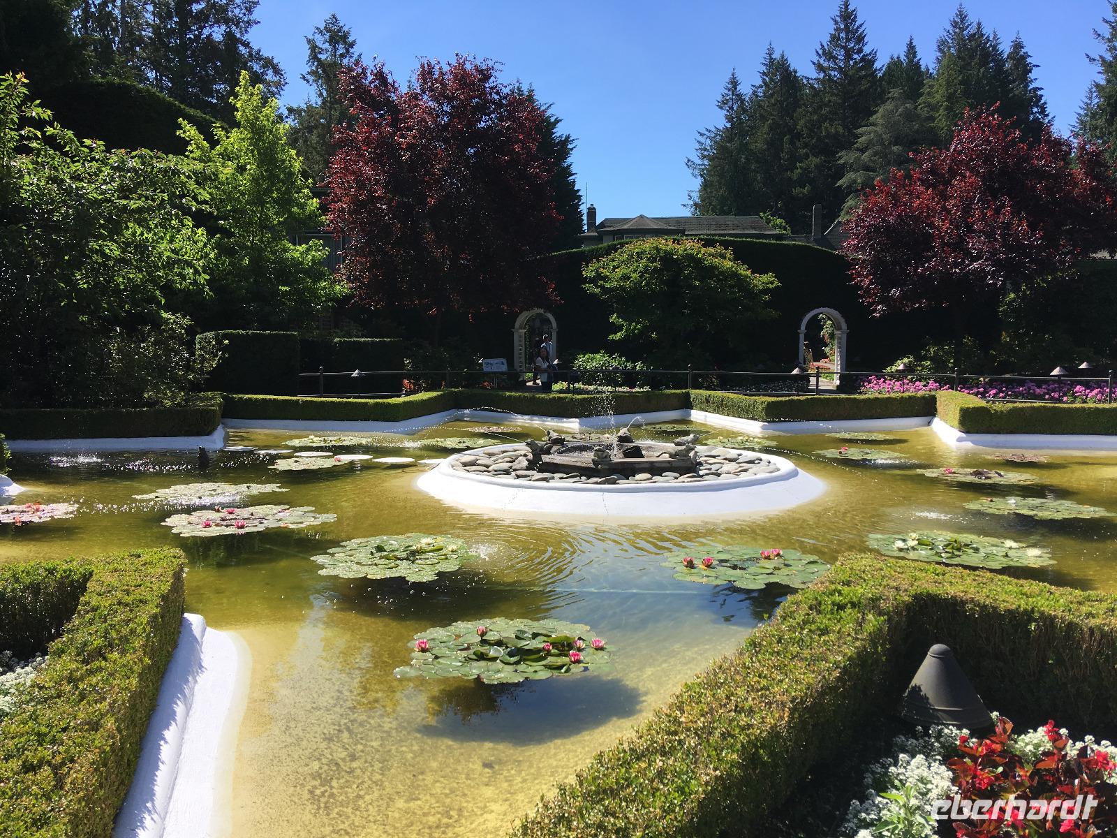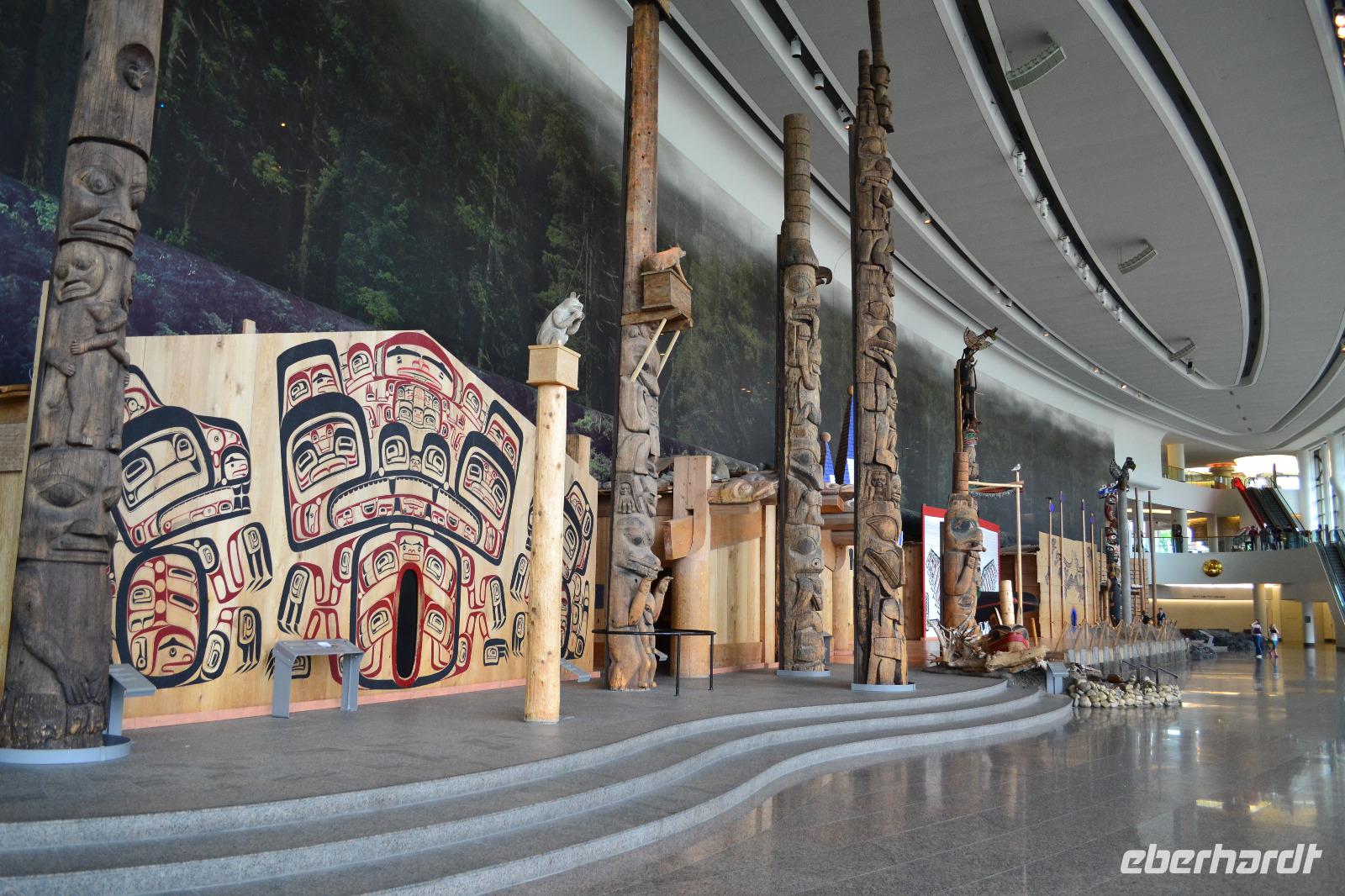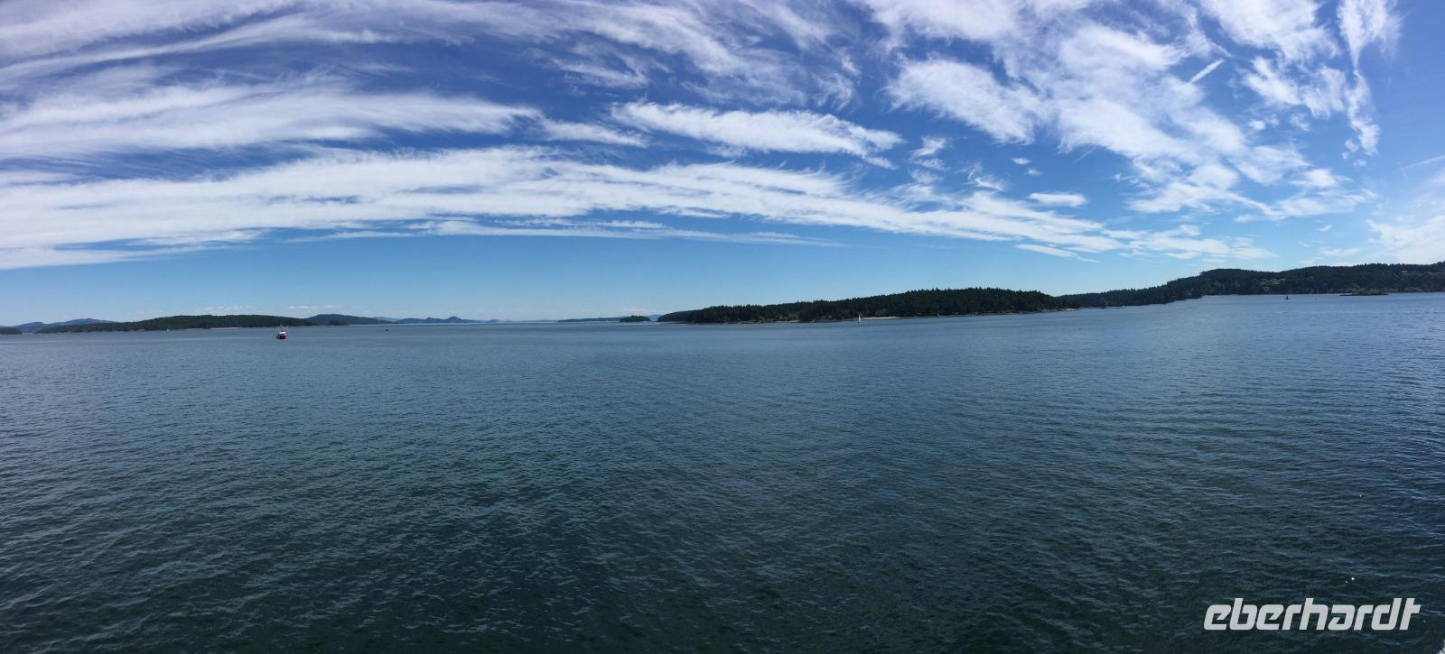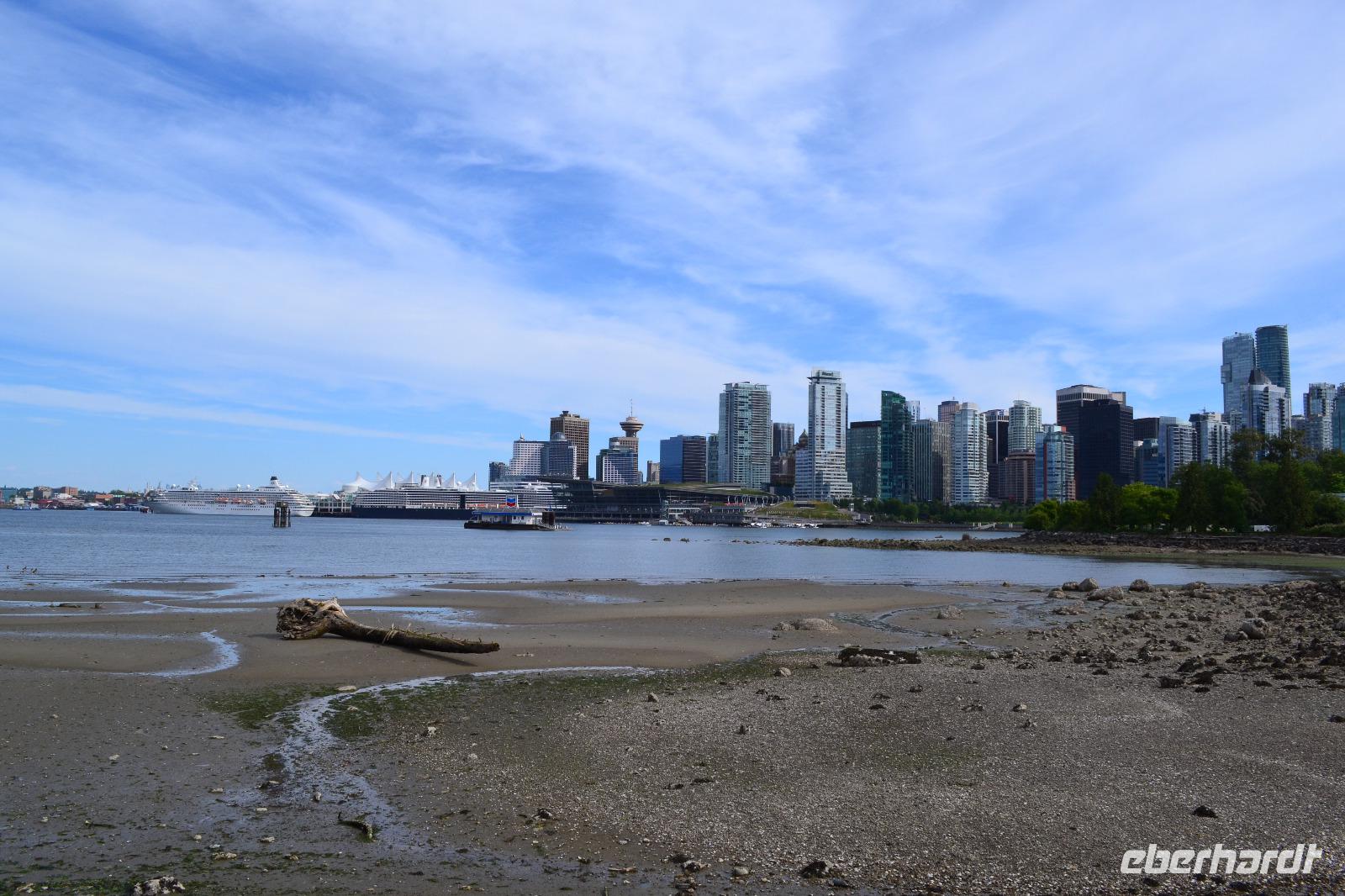 Da wir es am gestrigen Abend aus Zeitgründen nicht mehr geschafft haben, holen wir heute morgen zuerst den Fotostopp am Ausgangs- bzw. Endpunkt des Transcanada Highway (Mile 0) nach. Für meine Gäste scheint allerdings die Aussicht über die Juan-de-Fuca-Straße auf die Olympic Mountains im Norden des US-Bundesstaates Washington interessanter zu sein. Bevor wir dann mit der Fähre wieder zurück aufs Festland fahren, besichtigen wir die Butchart Gardens. Sie gehen zurück auf das Jahr 1904, als Jennie Butchart damit begann, den aufgelassenen Steinbruch ihres Mannes zu verschönern. Daraus entwickelte sich im Laufe der Zeit eine heute 22 Hektar große Anlage, die sich noch immer im Privatbesitz befindet. Nach der Begrüßung durch eine Mitarbeiterin können wir die Gärten auf eigene Faust erkunden. In einem der Gartenrestaurants erhalten wir dann alle ein reichhaltiges Mittagessen, bevor es zur Fähre geht. Vor allem der erste Teil der Überfahrt ist sehr schön, denn er führt an vielen Buchten und Inseln vorbei. Am Nachmittag erreichen wir dann die drittgrößte Metropolregion Kanadas und größte Stadt im Westen Kanadas, Vancouver. Sie entstand Mitte/Ende des 19. Jahrhunderts infolge eines Goldrausches und entwickelte sich zunächst mit dem Bau der Eisenbahn und später durch die Eröffnung des Panamakanals zu einem wichtigen Handelsposten. Wir fahren durch Chinatown und den historischen Stadtteil Gastown, dessen wichtigste Sehenswürdigkeit eine berühmte Dampfuhr ist. Im Vergleich mit europäischen Städten oder auch den Städten an der kanadischen Ostküste ist Vancouver jedoch eine sehr junge Stadt, weshalb vor allem moderne Wolkenkratzer das Stadtbild prägen. Vom Stanley Park aus, dem größten Stadtpark Kanadas, bietet sich uns eine gute Sicht auf die Skyline, den Hafen und die Berge im Norden Vancouvers. Auch die Wasserflugzeuge können wir gut beobachten, die im Hafen starten und landen. Im Park gibt es auch eine Sammlung an Totempfählen, die an die ehemaligen Bewohner des Areals erinnern. Mit vielen schönen Fotos im Gepäck (auch heute ist das Wetter wieder super) fahren wir zu unserem Hotel an der English Bay.
