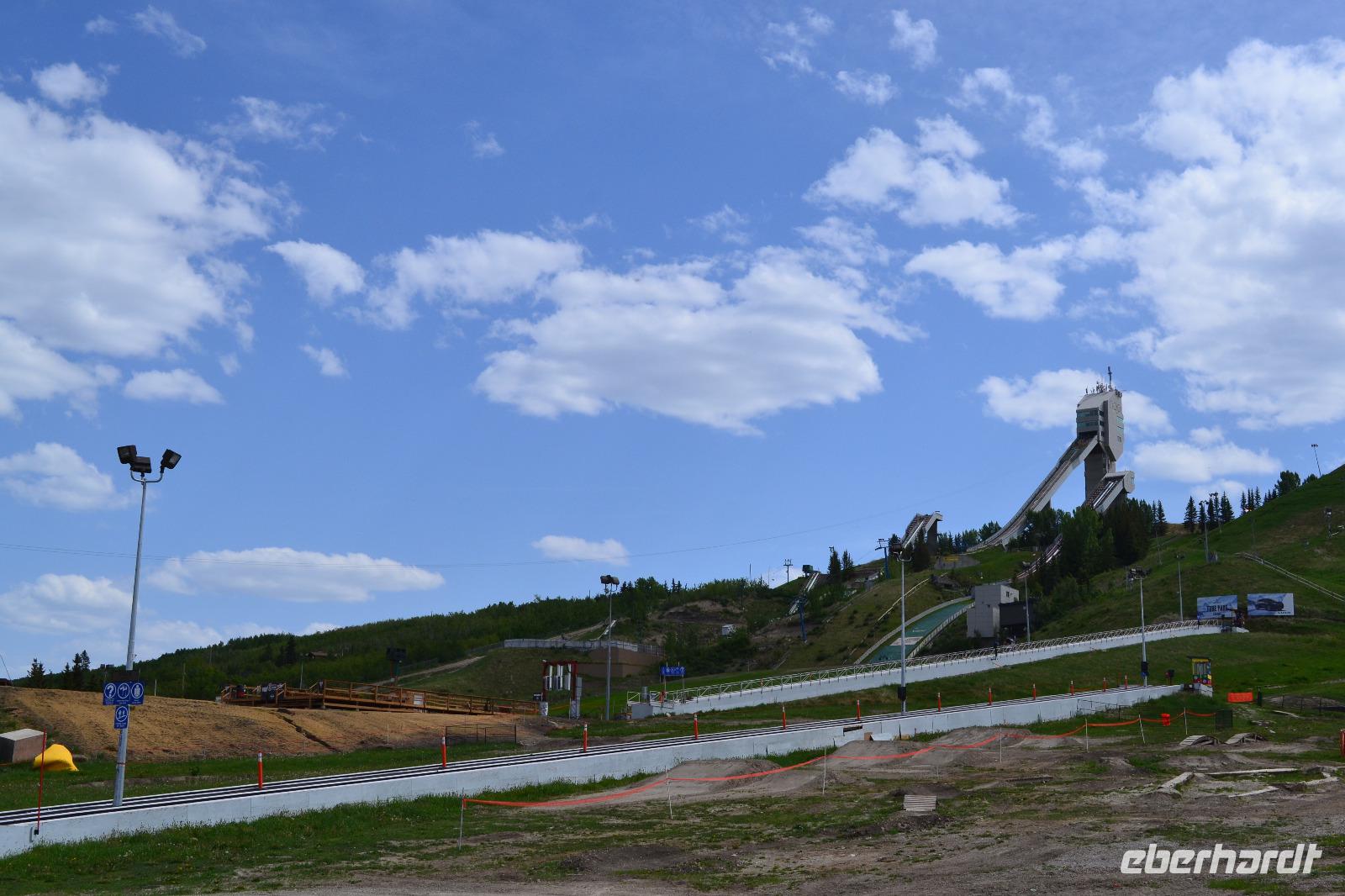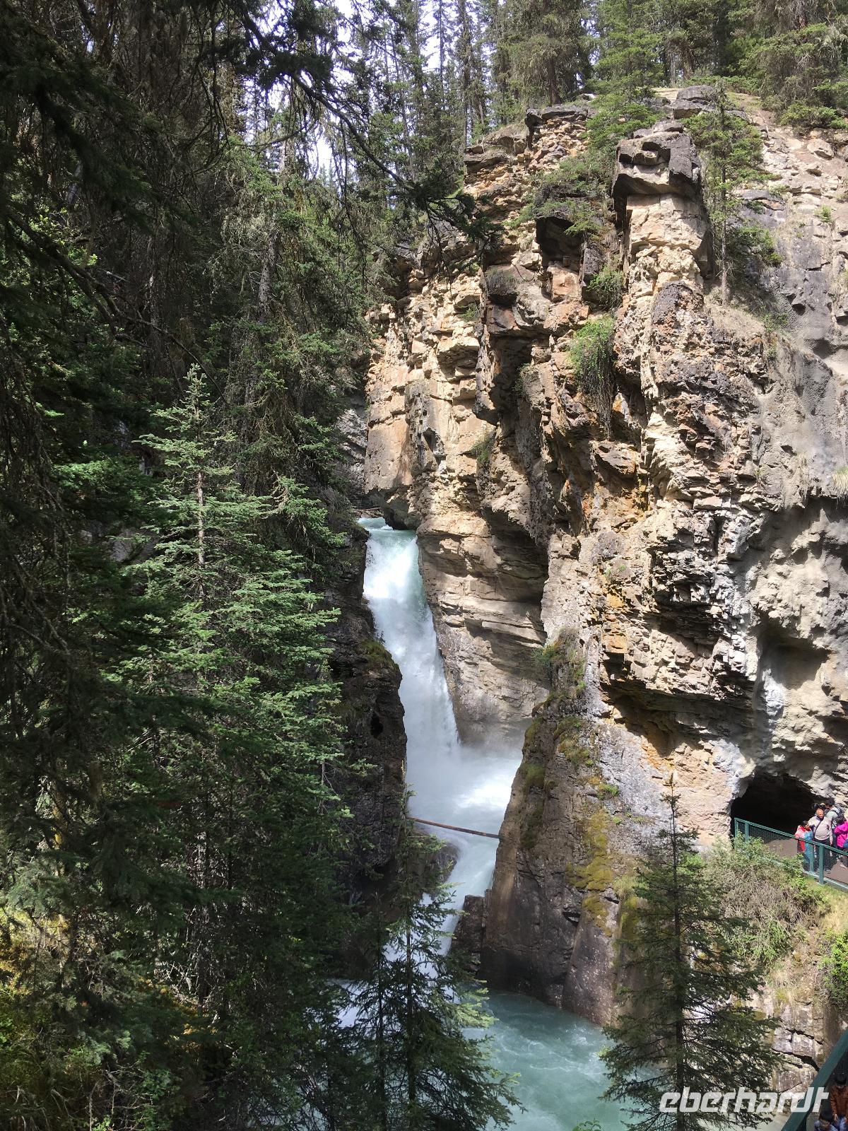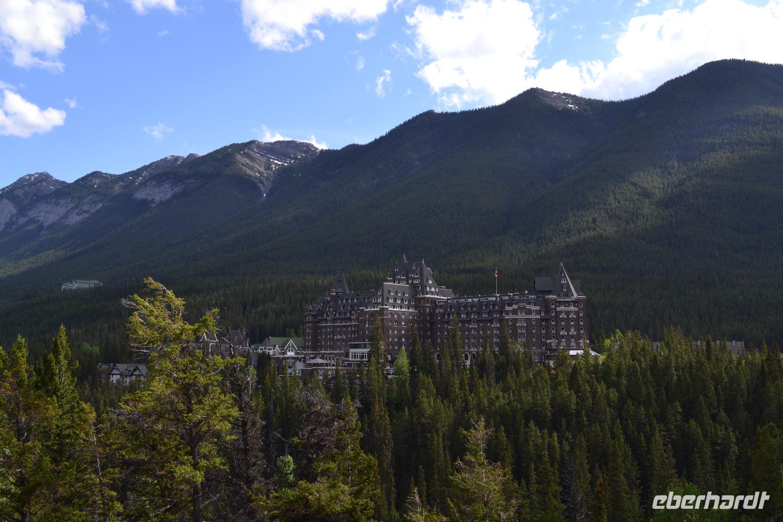 Heute geht es ganz zeitig los, denn wir fliegen in den Westen! Das Frühstück nehmen wir in einem typischen Diner ein, dann geht es weiter zum internationalen Flughafen von Toronto. Er wurde nach dem ehemaligen Premierminister Lester B. Pearson benannt, der für seinen Beitrag zur Beilegung der Suez-Krise 1957 den Friedensnobelpreis erhielt. In Calgary werden wir von Al empfangen, der uns durch den Westen bis nach Vancouver führen wird. Doch zuerst zeigt er uns nach einer kurzen Mittagspause (denn wir sind sehr ausgehungert) seine Heimatstadt Calgary, in die er vor langer Zeit aus Deutschland ausgewandert ist. Im Glanz der Olympischen Spiele 1988 sonnt sich Calgary noch immer, wie wir am Olympic Plaza und später am Canada Olympic Park erleben können. Die berühmte Calgary Stampede, die größte Rodeoshow der Welt, verpassen wir um einen Monat, denn sie findet immer im Juli statt. Dann werden wieder mehr als 1,5 Mio. Besucher erwartet, womit sich die Einwohnerzahl von Calgary mehr als verdoppelt. Auf dem Highway 1 fahren wir dann am Nachmittag bei um die 30 Grad und wieder viel Sonne mit dem Bus nach Westen, bis sich plötzlich die ersten Ausläufer der Rocky Mountains vor uns auftürmen. Das kleine Örtchen dient als Basis für Wintersportler und Touristen wie uns, die die Berge erkunden wollen. Zwei Fotostopps, der erste an den Bow Falls, der zweite mit Blick auf das majestätische Fairmont Banff Springs Hotel lassen uns erahnen, warum die kleine Stadt schon seit Jahrzehnten zu den beliebtesten Zielen in Kanada gehört. Für zwei Nächte ist sie nun auch unser Zuhause.