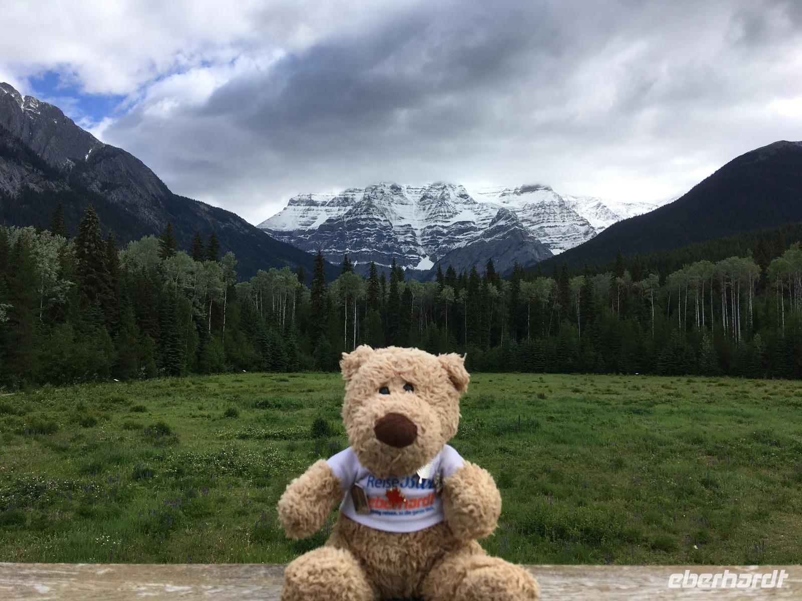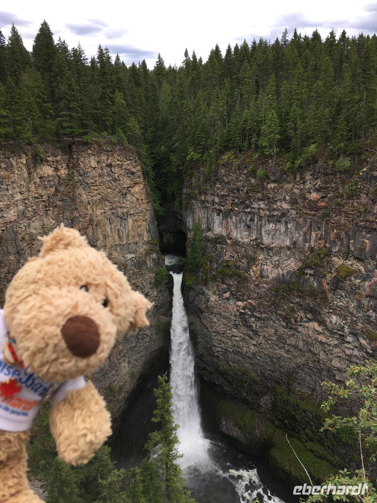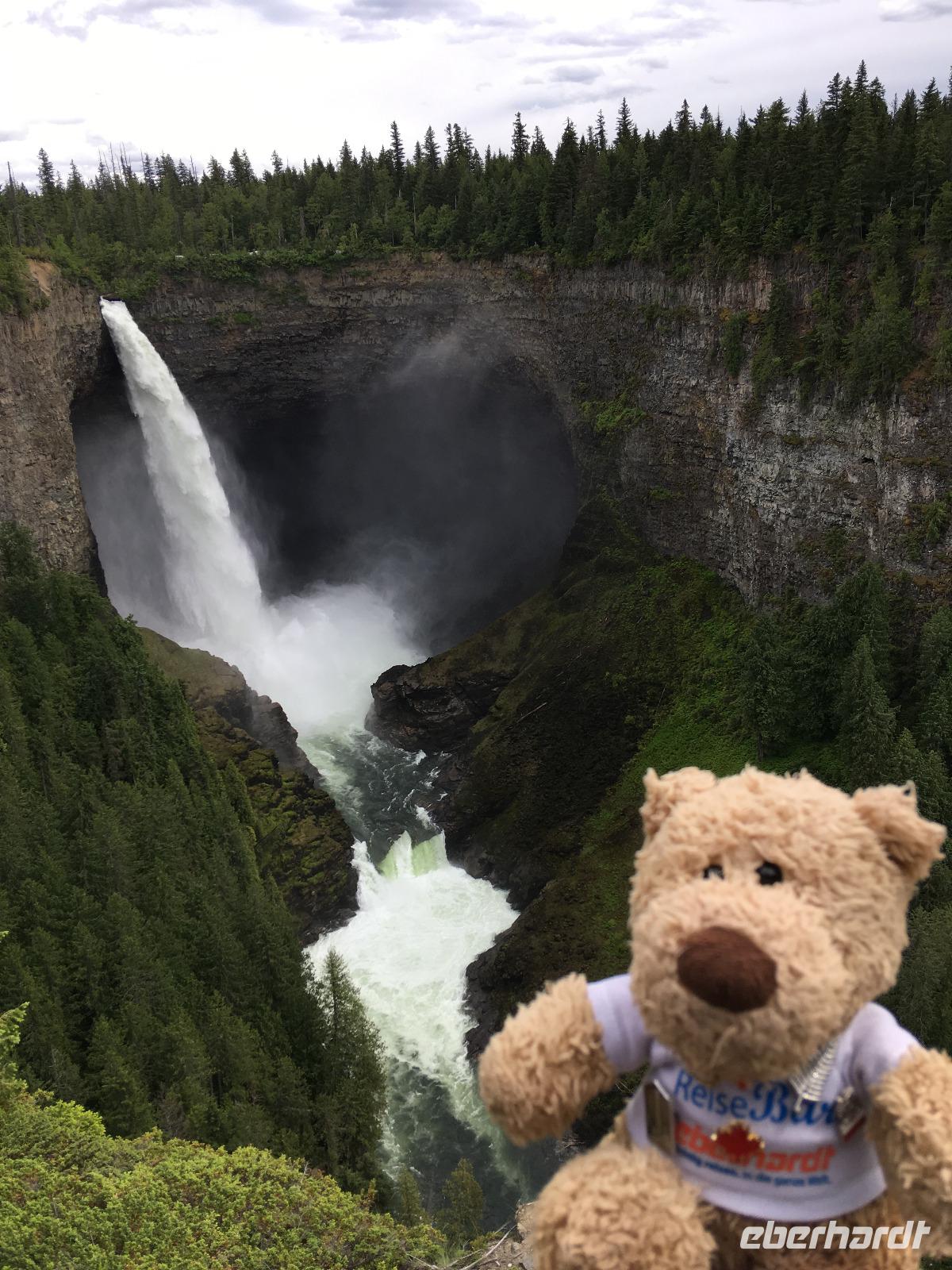 Noch einmal fahren wir das Teilstück der Panoramastraße bis nach Jasper, sodass wir zumindest auf diesem Abschnitt die Berge gut gesehen haben. Dann überqueren wir zum zweiten Mal und diesmal endgültig die Grenze nach British Columbia, und diesmal stellen wir auch unsere Uhren um eine weitere Stunde zurück. Wieder sehen wir Bären - zuerst einen jungen Grizzly, dann zwei kleine Schwarzbären hoch oben auf einem Baum, die dort Schutz vor einem ausgewachsenen, schlecht gelaunten Grizzly-Männchen gesucht haben, wie wir später erfahren. Auch an einem Hirsch fahren wir vorbei. Damit ist das Soll an wilden Tieren auf dieser Reise nun aber wirklich übererfüllt! In dieser Hinsicht haben wir auf dieser Reise wirklich großes Glück. Am Fuße des Mount Robson, des mit 3.954 m höchsten Berges in den Kanadischen Rocky Mountains, machen wir eine Pause am Besucherzentrum. Hier kann ich dann nicht mehr widerstehen und kaufe mir nach intensiver Beratung durch meine Gäste ein flauschiges kanadisches Holzfällerhemd. Pünktlich zur Mittagspause erreichen wir Clearwater. Rund um das Besucherzentrum gibt es einige (auch sehr günstige) Cafés und Restaurants, sodass wir uns für den Nachmittag stärken können. Den verbringen wir nämlich im Wells Gray Provincial Park mit der Besichtigung dreier jeweils sehr unterschiedlicher, aber sehr schöner Wasserfälle. Die Dawson Falls werden auch die kleinen Niagara-Fälle genannt und stürzen auf einer Breite von 90 Metern bis zu 15 m in die Tiefe. An den Helmcken Falls fällt der Murtle River dann weitere 141 m nach unten. Der spektakuläre, nach dem deutschstämmigen britischen Arzt John Sebastian Helmcken benannte Wasserfall ist der vierthöchste in Kanada. Auch der Spahat-Wasserfall ist sehr schön, denn er kommt aus einer schmalen Felsspalte herausgeschossen. Von hier aus können wir auch hinunter ins Tal des Clearwater River blicken. Zum Abendessen sind wir heute auf die Wells Gray Ranch eingeladen, wo uns der Nachtisch von zwei reizenden „Damen" mit großen Argumenten serviert wird.