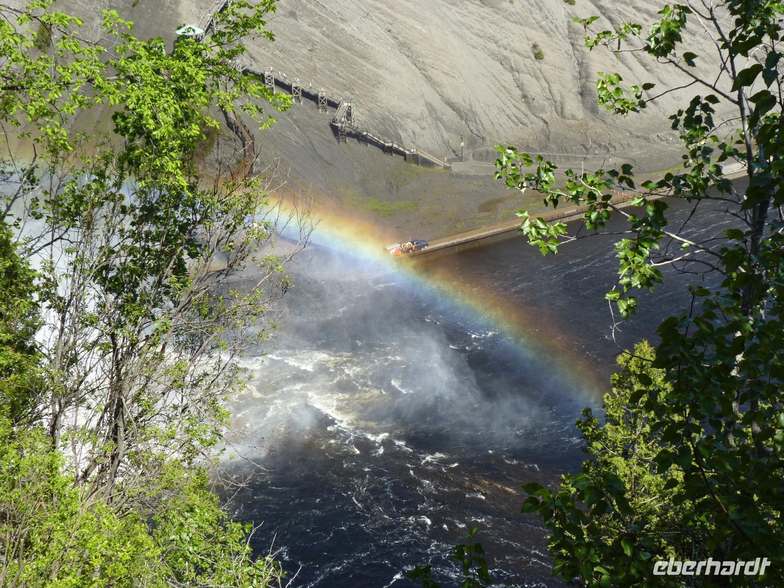 Dieser Tag begann mit einem American Breakfast, also recht puritanisch ohne Wurst und Käse, aber satt geworden sind wir trotzdem. Ein ganzer Tag in Quebec, der am Morgen mit Marina, einer ehemaligen Schweizerin und jetzt örtliche Stadtführerin begann. Sie spazierte mit uns durch die City, zeigte uns die schönsten Seiten dieser wirklich tollen und lebenswerten ca. 530.000 Einwohner zählenden Stadt. Einzig erschreckend für uns Flachländer der lange kalte Winter und die Aussichten auf 3-5 Meter Schnee. Danach ging es raus aus der Stadt, zuerst zum St. Anne Canyon, wo sich der gleichnamige Fluss durch eine Schlucht zwängt und die Wasserfälle immerhin 10 Meter höher sind als die bekannten Niagara-Wasserfälle. Über schwankende Hängebrücken gehend, konnte man sich dieses Naturschauspiel aus nächster Nähe betrachten. Weiter ging es zur meistbesuchtesten Wallfahrtskirche in Nordamerika. Name? Natürlich etwas mit Anna, ganz genau Basilika von Saint-Anne de Beaupre. Waren die St.Anne-Wasserfälle schon höher als die vom Niagara, so haben wir noch eine Schippe draufgelegt. Zum Abschluss besuchten wir den Montmorency-Wasserfall, der immerhin 30 Meter höher als die berühmten Niagaras sind. Ein herrliches Naturschauspiel. Der Tag endete aber nicht mit diesen beeindruckenden Erlebnissen. Der Abend drehte sich ganz um das berühmteste Produkt von Kanada, dem Ahornsirup. Unser Essen nahmen wir in einem traditionellen Sugar Shack ein. Dabei lernten wir nicht nur, wie Ahornsirup hergestellt wird, sondern konnten auch unseren eigenen Lolli drehen und somit auch den Ahornsirup in fester Form probieren. Ein schöner Abend, der diesen tollen Tag, auch aufgrund des sonnigen Wetters, bestens abrundete.
