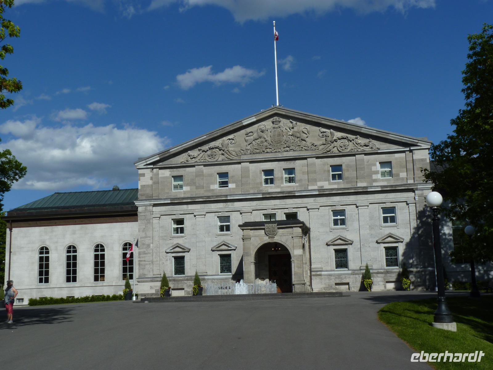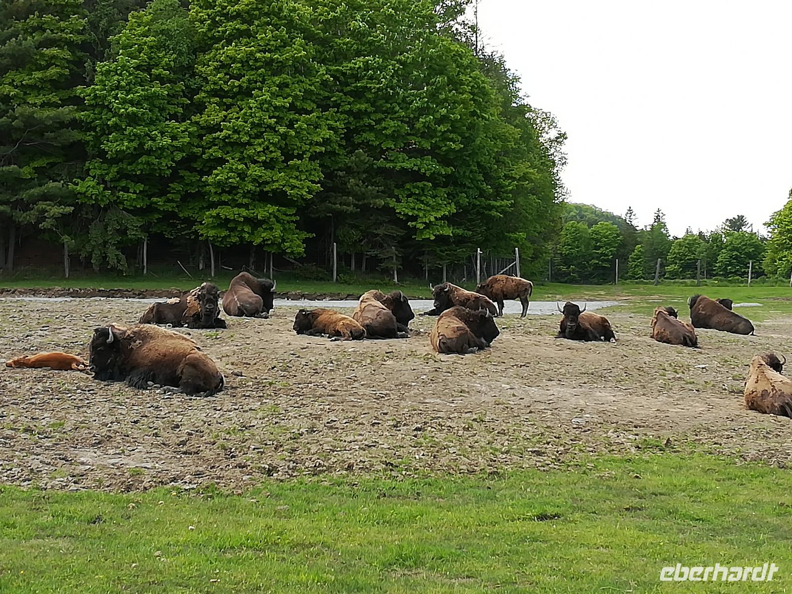Unser heutiges Mittagessen haben wir in einem Hotel der berühmten Fairmont-Hotelgruppe, dem Fairmont Le Chateau Montebello, eingenommen. Sehr lecker. Nur wenige Kilometer weiter erlebten wir den Höhepunkt dieses Tages, der Besuch des Omega Wild Life Parcs. Normalerweise wären wir mit unserem Bus durchgefahren, aber unsere Gruppe hatte sich entschlossen, einen speziellen Safaribus mit einem Guide zu mieten und so konnten wir die Tiere des Parc hautnah und durch geöffnete Fenster erleben und füttern. Ein schönes Erlebnis, die Hirsche, Rehe, Bisons, Schwarz- und Braunbären, Bisons, Elche, Wölfe, Füchse usw. aus nächster Nähe zu erleben und zum Teil streicheln zu können. Wirklich toll. Im Anschluss setzten wir unsere Fahrt nach Ottawa fort und unternahmen gleich bei Ankunft noch eine kleine Stadtrundfahrt. Wir besuchten bei einem kleinen Spaziergang durch den Park von Rideau Hall den Sitz des Generalgouverneurs von Kanada. Pardon, es muss Gouverneurin heißen, ist es doch mit der ehemaligen Astronautin Julie Payette eine Frau. Da der Abend einen schönen Sonnenuntergang versprach, haben sich alle Gäste entschlossen, mit mir Wein und Bier zu kaufen und in die Nähe des Parlamentsgebäudes zu gehen, um dort mit Blick auf den Ottawa River den Sonnenuntergang in gemütlicher Runde zu genießen. Im Nachgang muss ich daran denken, dass Alkohol in der Öffentlichkeit in Kanada eigentlich verboten ist. Es hat Niemanden gestört, also was soll´s. Ein schöner und erlebnisreicher Tag ging wundervoll zu Ende.