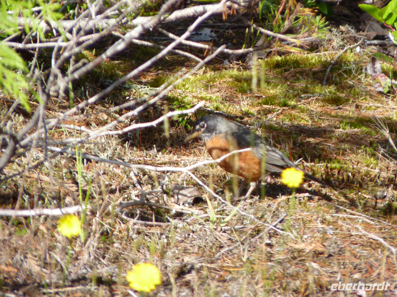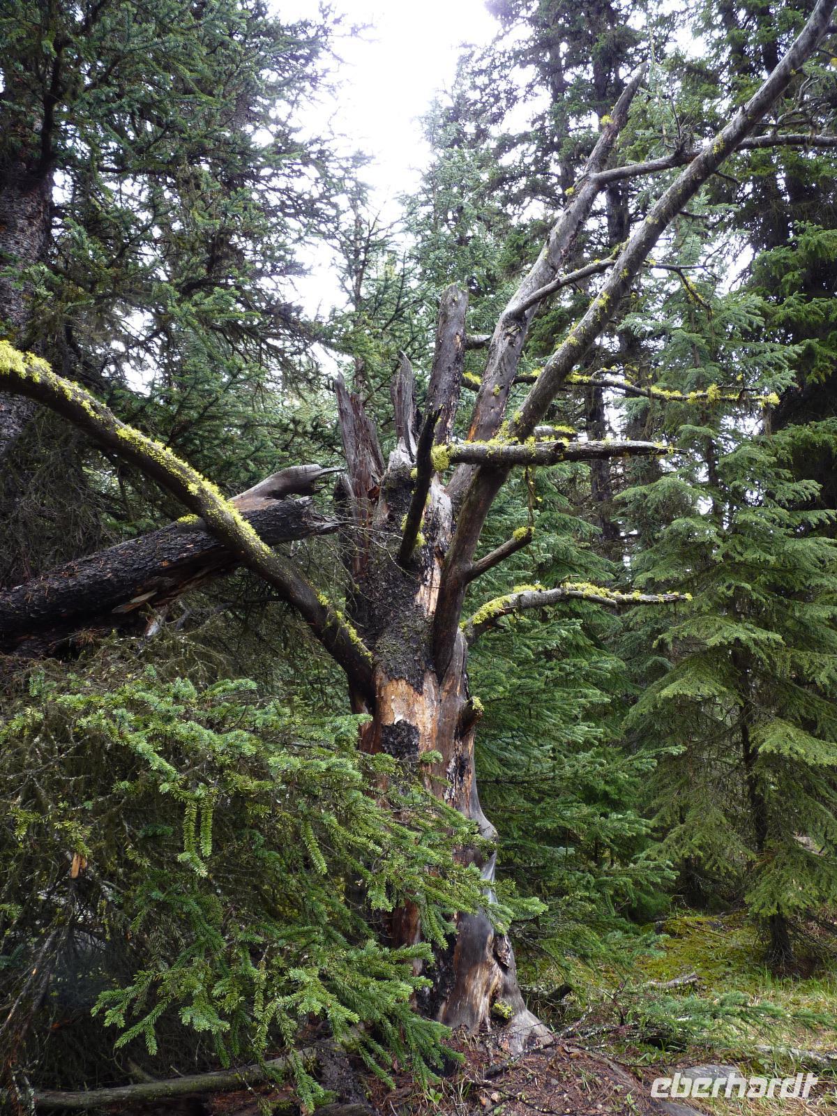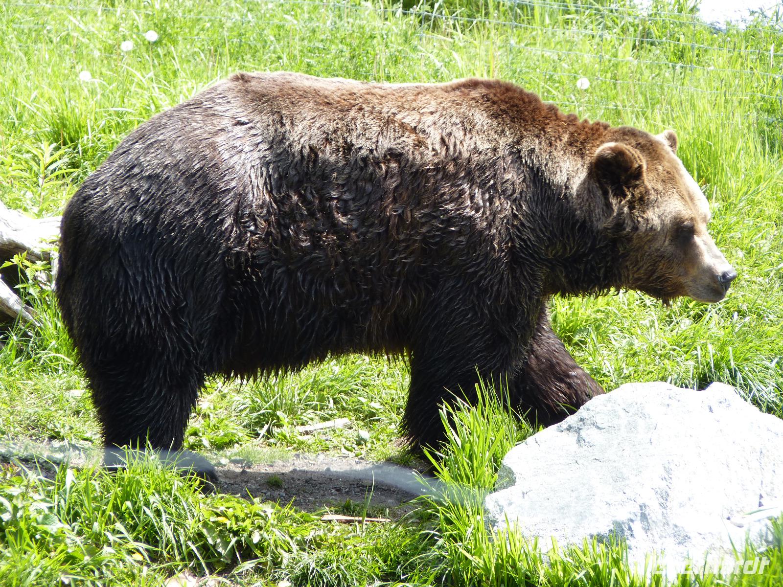 Wir waren noch gar nicht weit gekommen, erlebten wir den Traum aller Besucher des Westen von Kanadas. Wir konnten einen Grizzly beobachten und zahlreiche Fotos von ihm machen, bevor er im Wald verschwand.