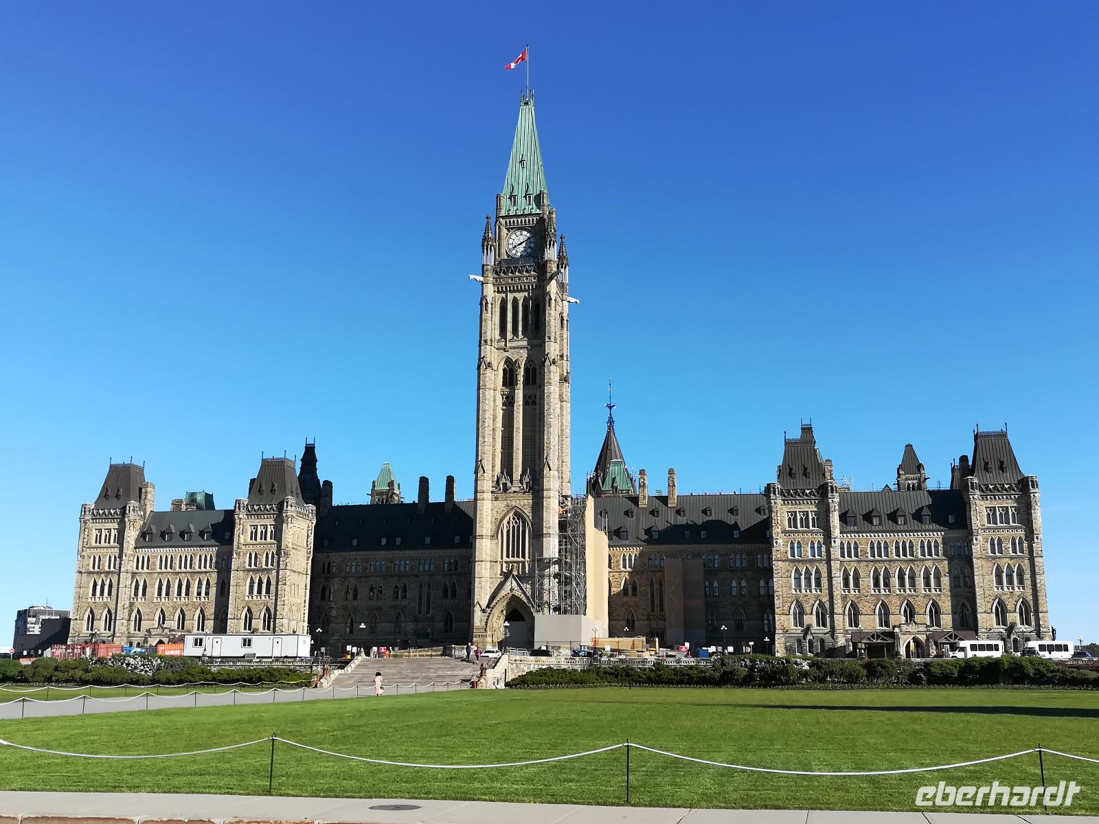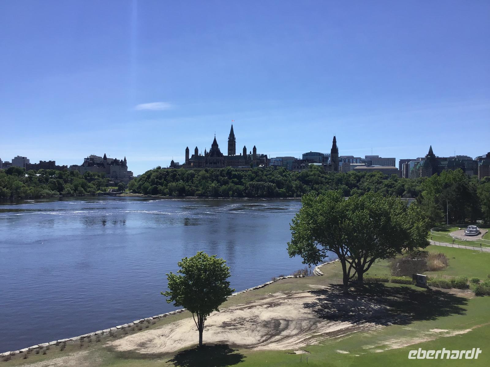 Den Vormittag begannen wir nach dem Frühstück mit einem Spaziergang zum Parlaments Hill. Was schon am Vortag aufgefallen ist, dass zwar alle Regierungsgebäude bewacht werden, aber die Polizeibeamten sehr entspannt und freundlich mit den Besuchern umgehen und Fragen gerne beantworten. Weiter ging unser Spaziergang zum Heldendenkmal, und anschließend am Fairmont Chateau Laurier vorbei in die Altstadt. Von hier aus fuhren wir dann zum Canadian Museum of History, wo wir einerseits einen Einblick in die Geschichte der ersten Bewohner, den Indianern, bekamen und zudem einen wundervollen Blick auf die gegenüberliegende Flussseite mit dem Parlamentsgebäude hatten. Selbstverständlich wurde das für viele Fotos genutzt.