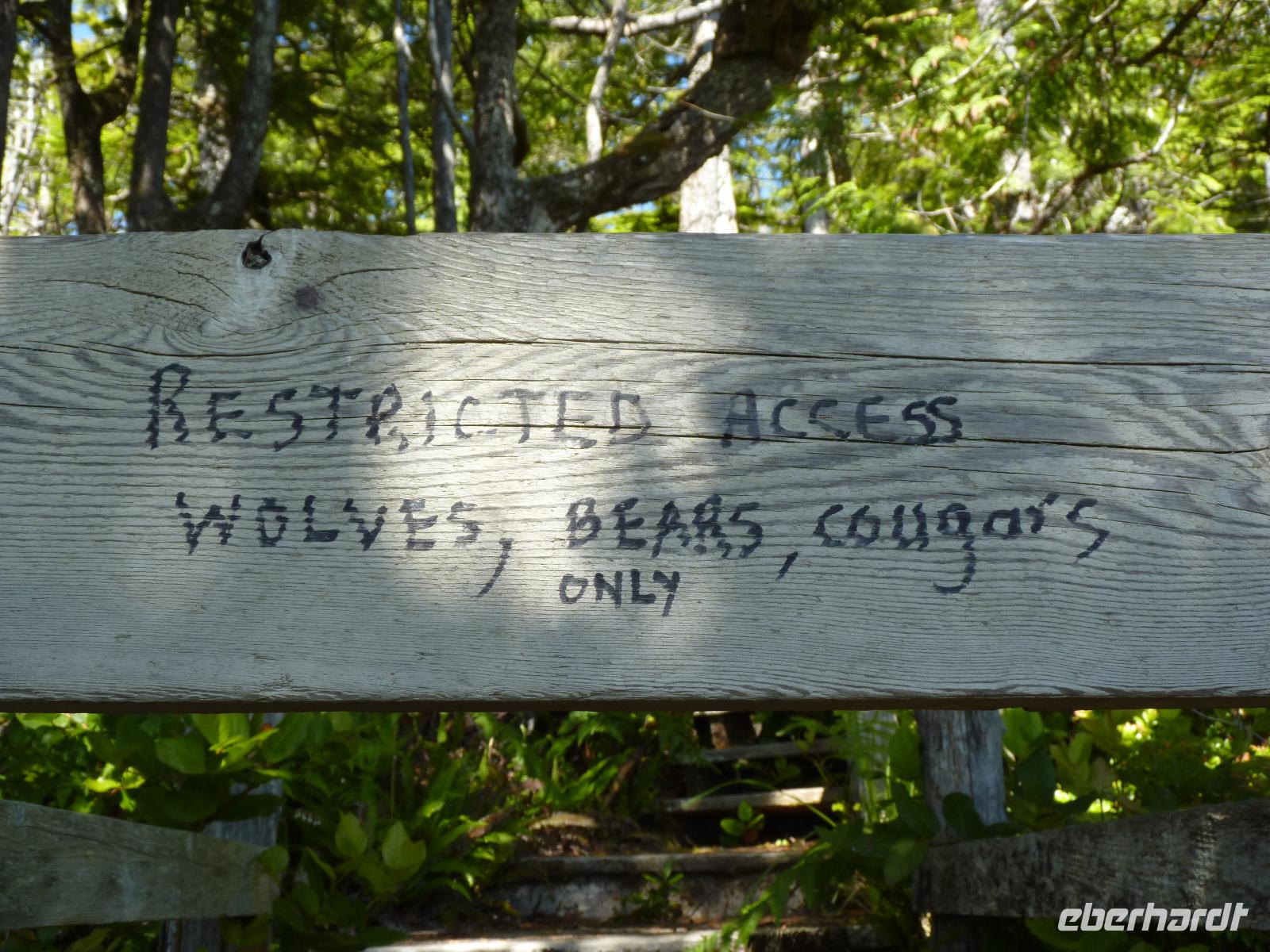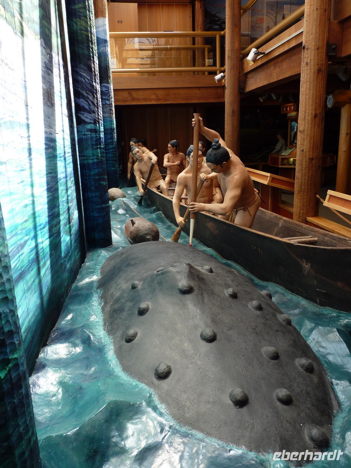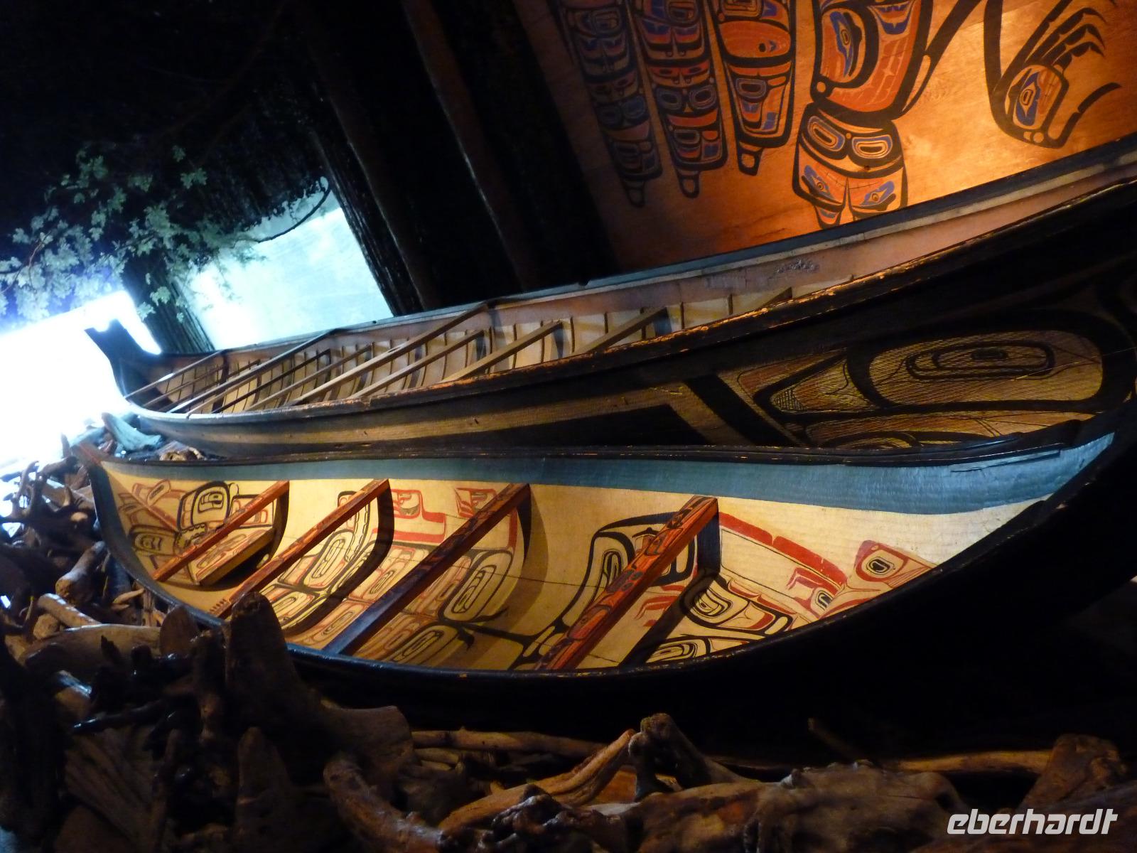 Weiter ging es zum Besucherzentrum Wickaninnish Beach, in dem man einen sehr anschaulichen Eindruck von den Leben der Ureinwohner machen konnte. Nicht nur die Geschichte dieses in diesem Territorium lebenden Stammes, sondern auch Informationen zu Pflanzen und Tieren dieser Regien wurden gegeben. Zu bestimmten Themen konnte man sich den Text auch in der indianischen Sprache anhören. Verstanden haben wir zwar nichts, interessant war es trotzdem.