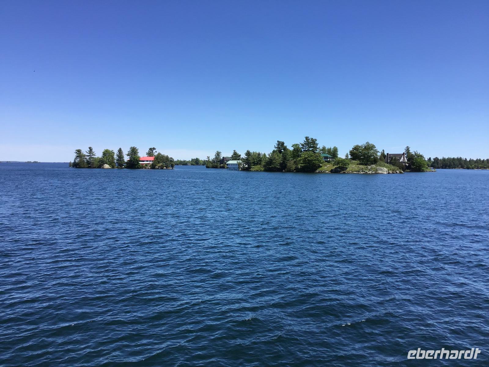 Wir verließen Ottawa, um weiter nach Toronto, der mit 2,6 Millionen Einwohnern größten kanadischen Stadt zu fahren. Wir folgten dem Flusslauf des St. Lorenz-Stroms bis zur Mündung in den Ontario-See. Dort unternahmen wir eine Bootsfahrt zu den tausend Inseln. Man kann schon sagen, dass wir internationale Gewässer durchfuhren, gehörten doch manche der Inseln zu Kanada und Andere wieder zu den USA. Zu den 1.000 Inseln werden auch nur die gezählt, die mindestens 8 qm groß sind und einen Baum oder Strauch darauf stehen haben. Da momentan der Wasserstand immer noch sehr hoch war, standen viele Häuser auf den Inseln noch zum Teil im Wasser. In jedem Fall es eine schöne Bootsfahrt bei tollem Wetter.
