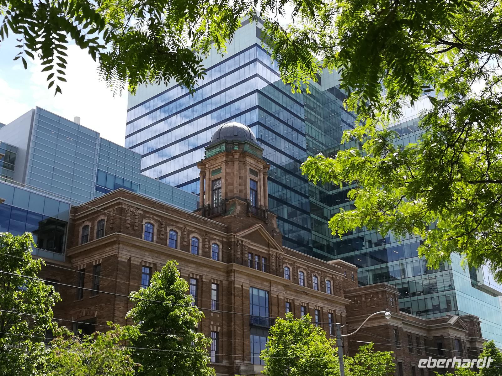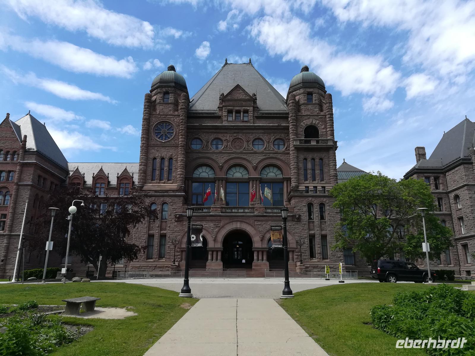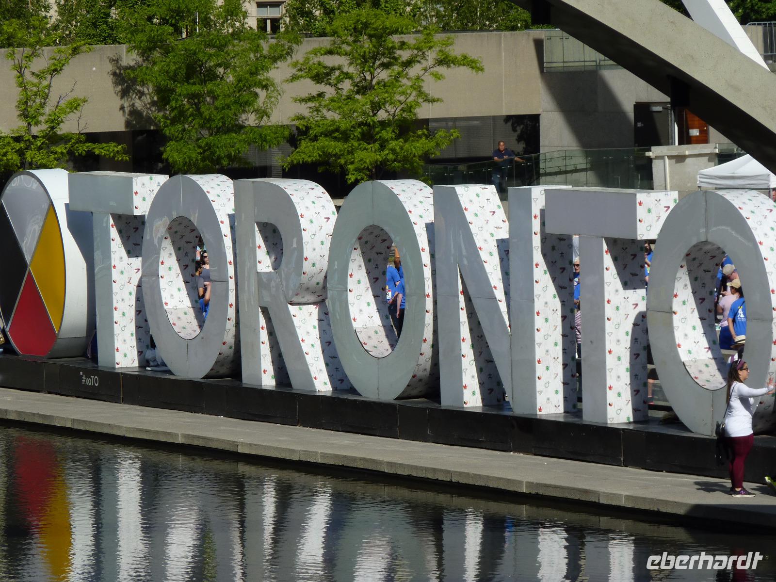 An diesem Tag galt es, diese Großstadt besser kennenzulernen und daher starteten wir nach dem Frühstück mit unserer Stadtrundfahrt. Unseren ersten Stopp machten wir am Rathaus um dann festzustellen, dass wir scheinbar die Zeit der Sportevents ausgesucht haben. In Ottawa eine Rad- und jetzt eine Laufveranstaltung. Daher waren auch hier einige Straßen gesperrt, aber unser Fahrer Guy kurvte mit viel Ruhe durch die Straßen, so dass wir doch fast alles sehen konnten. Auffallend war der Bauboom, mit dem dutzende Wohnhochhäuser entlang des Ontariosees gebaut wurden und werden. Christa fuhr mit uns zu einem wunderbaren Aussichtspunkt direkt am Wasser, von dem wir einen perfekten Blick auf die Skyline der Stadt und den CN-Tower hatten. Ein Super-Fotomotiv.