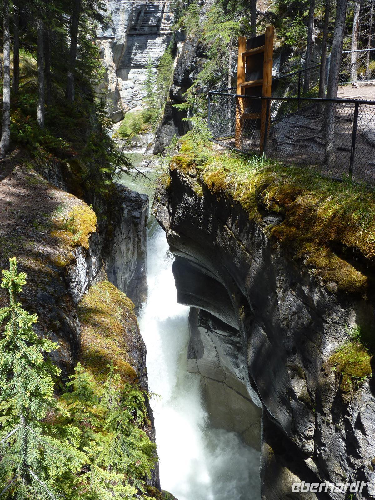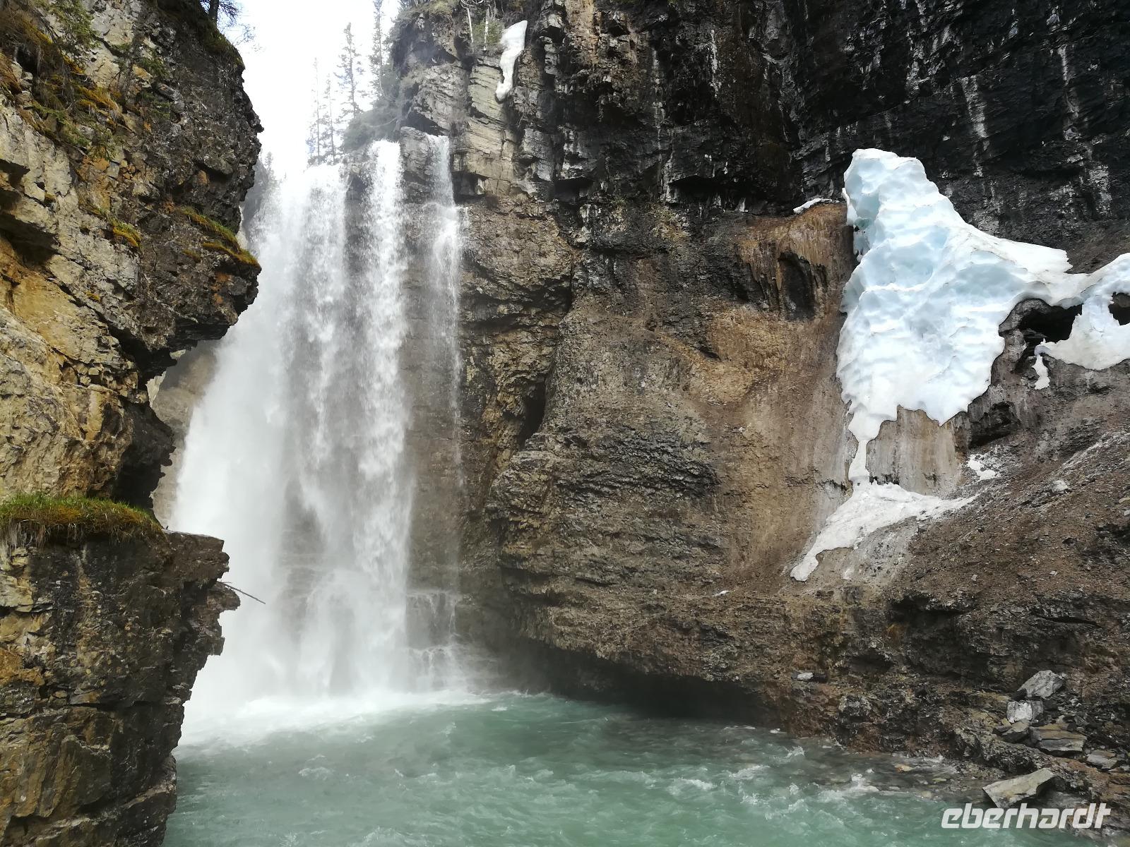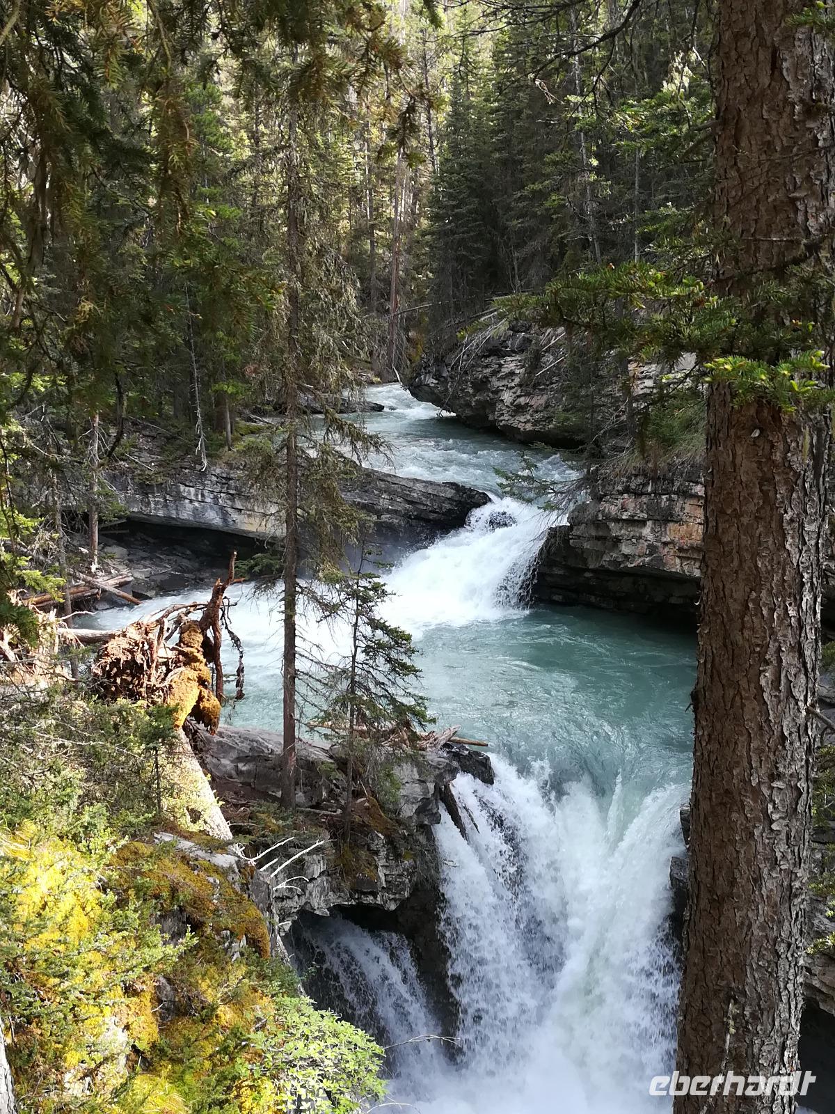 Am Vormittag besuchten wir zunächst den in der Nähe von Banff gelegenen Johnston Canyon, in dem wir eine schöne Wanderung entlang des Flusses hin zu zwei Wasserfällen unternahmen. Bei so vielen Wasserfällen, die zudem noch in den nächsten Tagen folgen sollten, könnte man denken: Schon wieder ein Wasserfall! Dem war aber nicht so. Jeder war anders und es war immer wieder beeindruckend, mit welcher Urgewalt sich das Wasser seinen Weg durch die Felsen bahnt.