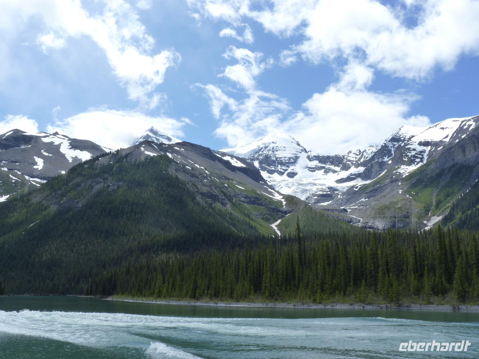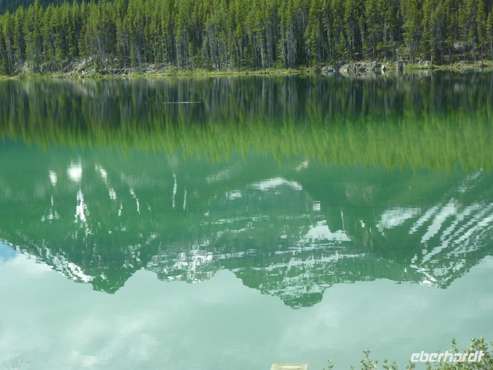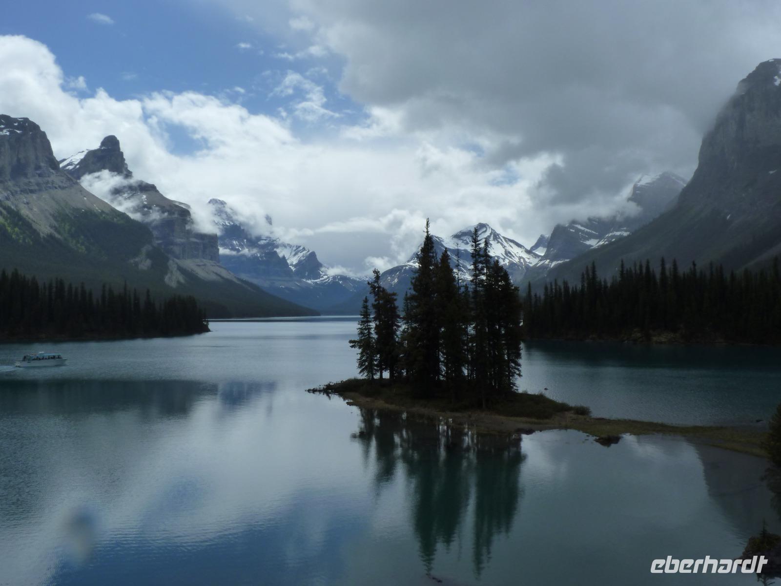 Am Maligne Lake selbst unternahmen wir eine kleine Wanderung in der Hoffnung, irgendwo am Ufer einen Elch zu entdecken. Leider hatten wir keinen Erfolg. Die Bootsfahrt auf dem See selbst führte uns zur Spirit Island, dem wohl meist fotografierten Motiv von Kanada. Die Insel selbst durfte man nicht betreten, da es sich um ein Heiligtum der Indianer handelt.