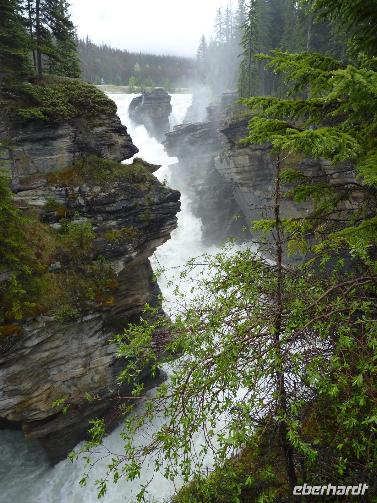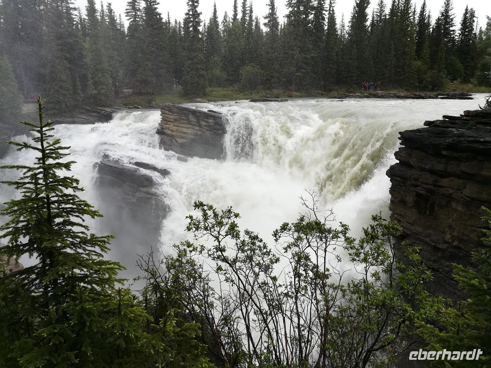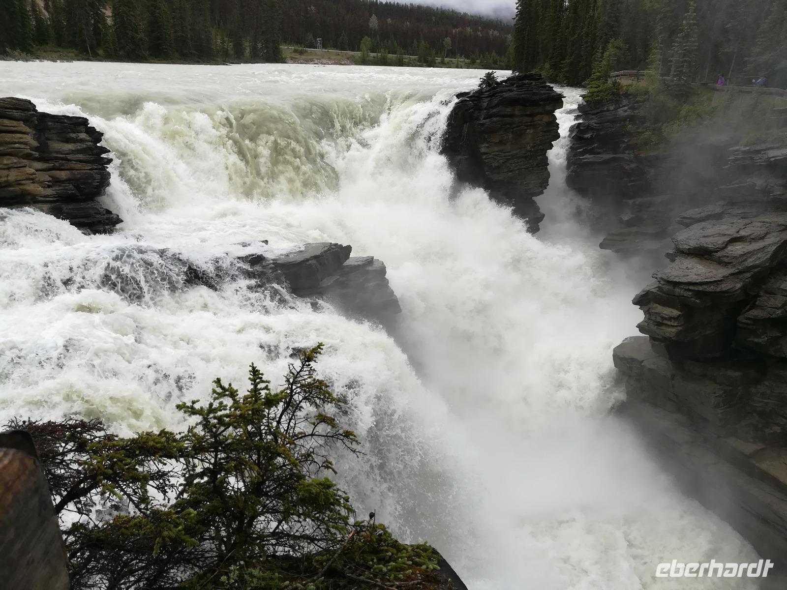 Zuerst einmal haben wir uns aber noch den Sunwapta und Athabasca Wasserfall angesehen. Wir hatten ja nun schon einige Wasserfälle in den Tagen gesehen, aber wieder aufs Neue waren wir über diese Naturgewalt Wasser erstaunt und begeistert. Da die Flüsse alle sehr viel Wasser führten, kommt das Wasser natürlich mit noch größerer Wucht daher als bei normalen Wasserständen.