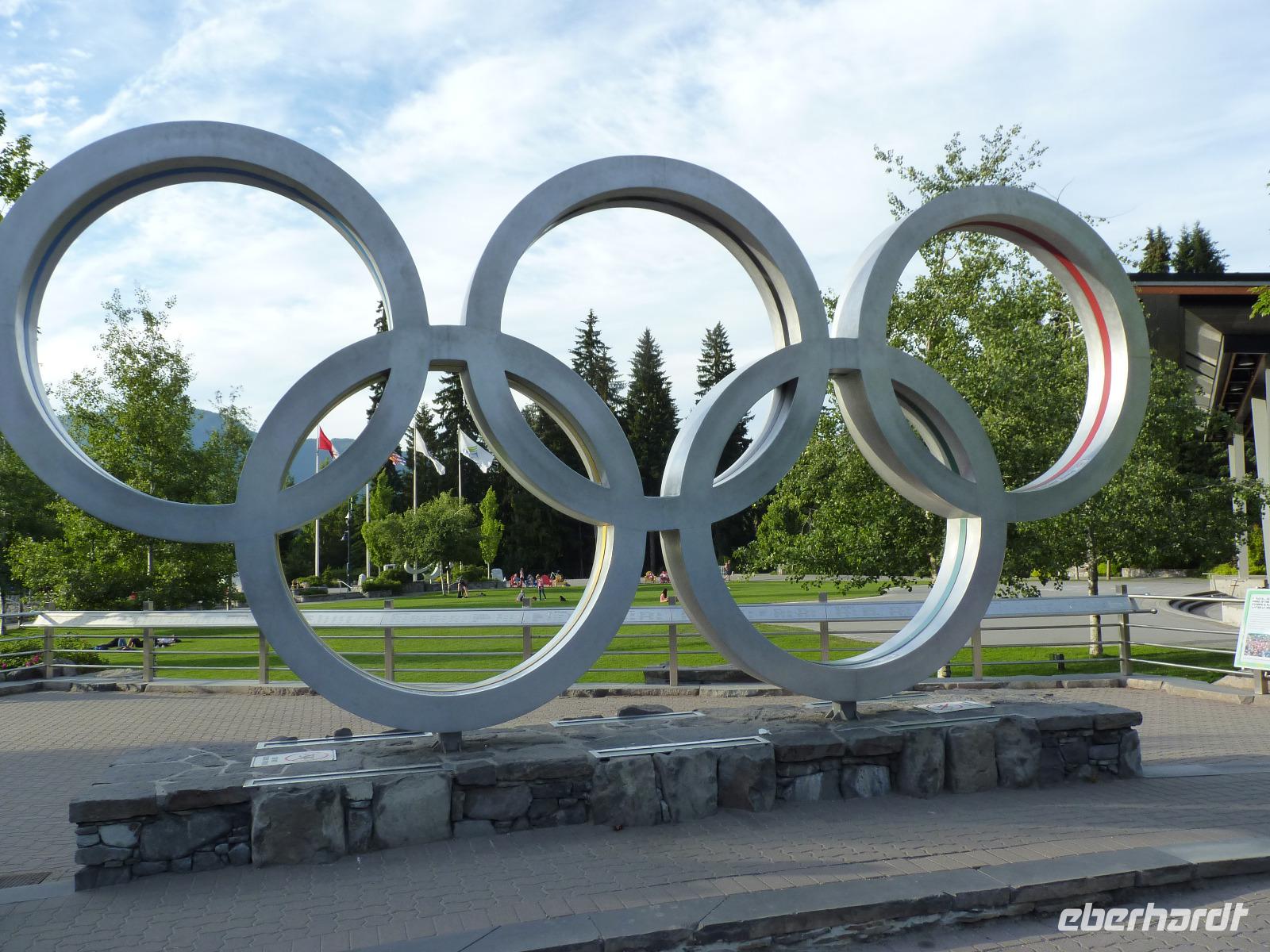 Am späten Nachmittag hatten wir dann Whistler erreicht. Wir bezogen unsere sehr schönen Zimmer in der Crystel Lodge und machten uns auf den Weg, den sehr lebendigen Ort zu erkunden. Das wichtigste Ziel alles Gäste war natürlich das Olympiazentrum mit seinen olympischen Ringen. Ein Foto durfte da selbstverständlich nicht fehlen.