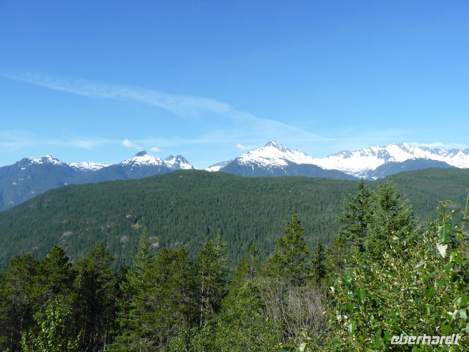 Andere Länder, andere Sitten. Das Frühstück in Kanada besteht meistens aus Eiern, Speck oder Schinken, gebratenen Kartoffelstückchen und Toast. Irgendeine Form von Marmelade noch und sehr selten mit Wurst oder Käse. Und natürlich Kaffee ohne Limit. In unserem Hotel in Clearwater hatten wir alles. Verschiedene Sorten an Wurst und Käse, Rührei und Speck natürlich, Obst, Orangensaft und vor allem dunkles Brot. Das beste Frühstück auf unserer Tour bis dahin. So gestärkt nahmen wir gutgelaunt die nächste Etappe in Angriff. Whistler, der Wintersportort der alpinen olympischen Wettbewerbe 2010 war unser Tagesziel.