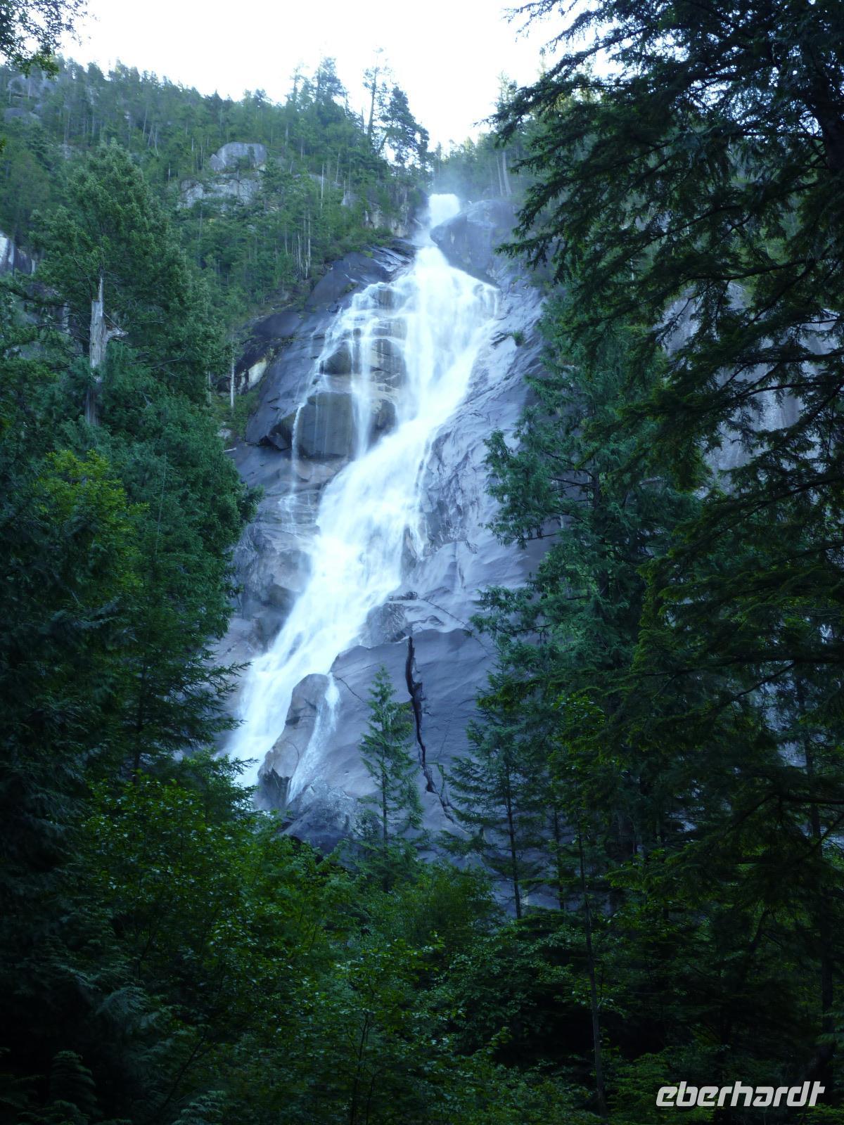 Wir verlassen das Festland und setzen mit der Fähre über nach Vancouver Island. Dazu fuhren wir von Whistler über den Sea-to-Sky-Highway zum Fährhafen in der Horseshoe Bay, mit der Fähre nach Nanaimo überzusetzen. Auf dem Weg zur Fähre haben wir noch einen Stopp gemacht, natürlich an einem Wasserfall, dem Shannon Fall. Über mehrere Stufen rund 360 Meter hoch, auch sehr schön.