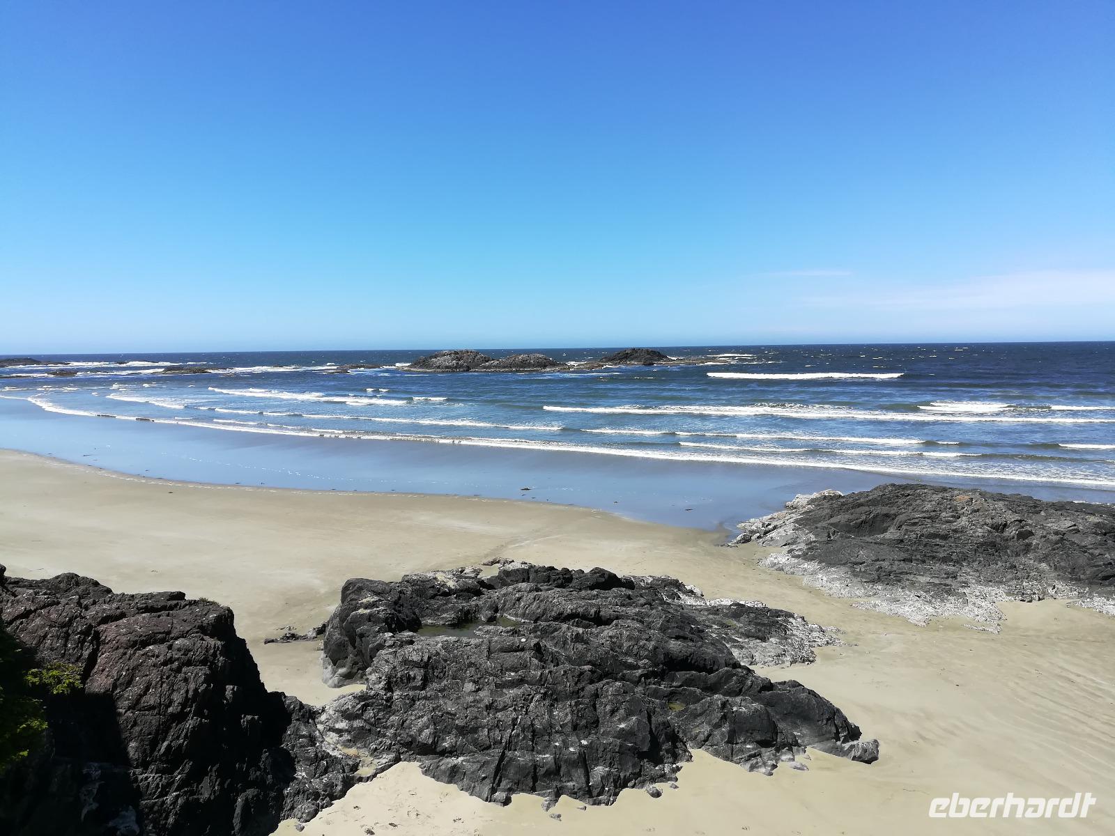 Heute blieben wir im Ort, wollten aber die Umgebung erkunden. Unseren ersten Stopp machten wir am Radar Hill Trail, von wo wir einen wunderbaren Ausblick auf die Buchten rund um Tofino und Vancouver Island hatten. Schließend ging es direkt an den Strand von Long Beach, um sich die Füsse zu kühlen, den Surfern zuzuschauen oder auch Muscheln zu suchen.