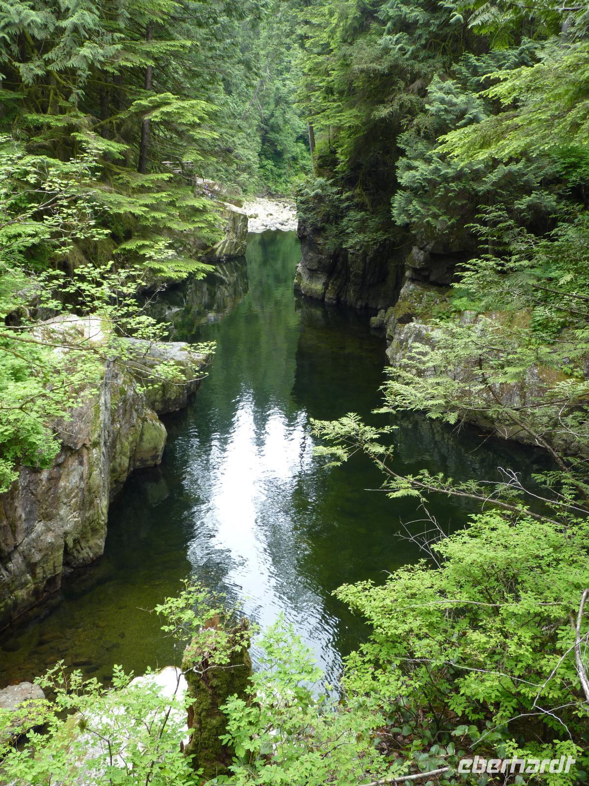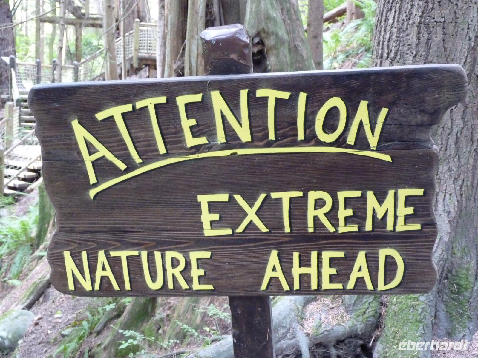 Im Weiteren daran wanderten wir mit Claudia durch den pazifischen Regenwald durchquerten dabei, wie sie es nannte, einen Zauberwald. Tatsächlich hätte man angesichts der Baum- und Strauchfiguren vermuten können, dass gleich die Hexe Babajaga um die Ecke biegt. Zum Ende unserer Wanderung besuchten wir Capilano Salmon Hatchery, eine Lachsaufzuchtstation, in der der Lebenskreis der Lachse demonstriert wird, letztendlich aber der Erhaltung der Lachse in den Flüssen und Meeren von Kanada dient.