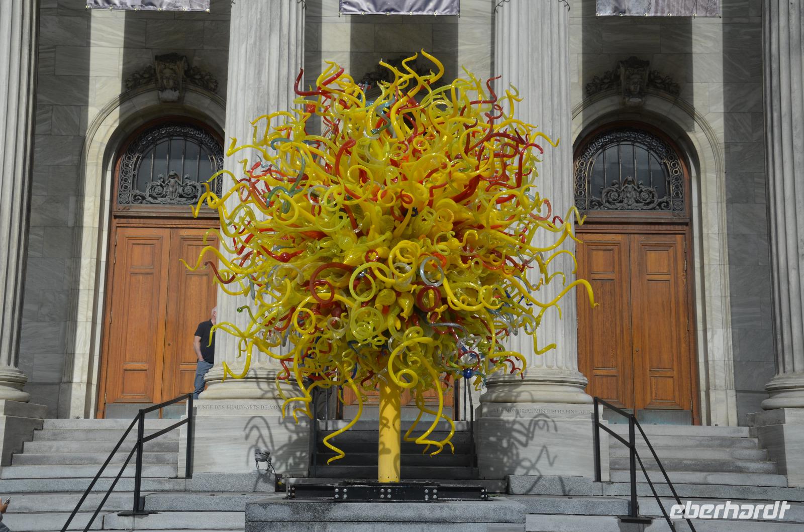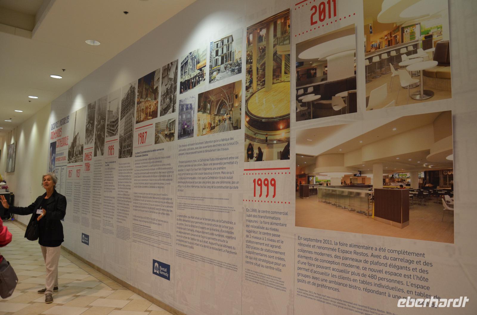 Bei unserem ersten Halt besichtigen wir die unterirdischen Passagen „Ville Souterraine". Dabei handelt es sich um ein tunnelartiges System, welches sich wie ein Netz unter der gesamten Stadt erstreckt. Besonders im Winter ermöglicht es den Einwohnern Strecken zurück zu legen, ohne der Kälte und den Schneemassen trotzen zu müssen. Somit bleibt hier unten, in Sachen Geschäften, kein Wunsch unerfüllt. Nachdem wir die Hamstergänge Montreals beschritten haben, zieht es uns wieder ans Licht. Als nächstes besteigen wir den ehrwürdigen Berg „Mount Royal". Das gesamte Areal ist ein gut ausgebautes Naherholungsgebiet, welches von den Einheimischen gern genutzt wird. Hindurch durch einen dichten Wald, gelangen wir zum 1932 erbauten „Mount Royal Chalet", an welches sich eine Aussichtsplattform anschließt mit herrlichem Blick über die gesamte Stadt. Auffällig sind auch hier die wundervollen Blumenarrangements und kunstvoll bepflanzten Gärten. Ich fange immer mehr an mich zu fragen, wie diese Pracht bei diesem doch rauen Klima möglich ist. Auch bei uns beheimatete Pflanzen haben hier teils die doppelte Größe! Die Kanadier können also entweder zaubern, oder sie haben den besten, geheimen Dünger, den es auf diesem Globus gibt! Ich bin jedenfalls an der Lösung des Mysteriums dran!