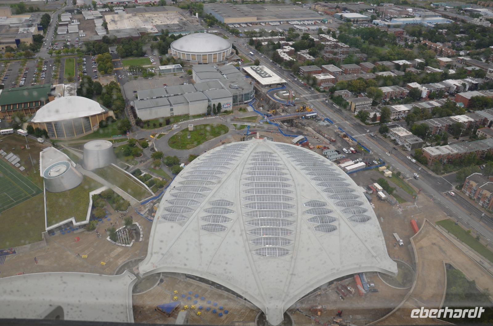 Da wir unerschrockene Abenteurer sind, lassen wir uns von einer langen Anreise nicht den Tag verderben. Durch die Zeitverschiebung von sechs Stunden, ist es hier bei unserer Ankunft gerade einmal kurz vor 12 Uhr. Somit haben wir den ganzen Tag noch vor uns. Auf geht's! Nachdem unsere Reisegruppe endlich vollzählig ist, starten wir auf eine kleine Stadtrundfahrt. Unser erster Stopp ist dabei das Olympiastadion inmitten des Olympiaparks, welches anlässlich der Olympischen Sommerspiele von 1976 errichtet wurde. Dabei fahren wir mit einer Gondel auf den geneigten Turm hinauf, der mit einer Höhe von 175 Metern nicht nur eine fantastische Aussicht über die gesamte Umgebung bietet, sondern auch weltweit der höchste Turm seiner Form ist. Von hier oben aus hat man einen fantastischen Blick über das „Hochelaga-Archipel", welches insgesamt aus 234 Inseln besteht und sich im Mündungsbereich des Sankt-Lorenz-Stroms und des Flusses Ottawa befindet. Montreal ist dabei auf der gleichnamigen „Ile de Montréal" gelegen, der größten Insel des Archipels. Im Anschluss fahren wir über die Ile Sainte-Hélène zu unserem wohlverdienten Hotel. Unterwegs stoppen wir noch für einige Schnappschüsse. Nach etwas Zeit zum Frischmachen, geht es zum gemeinsamen Abendessen ins Vieux - Port Steakhouse. Hier läuten wir mit einem rustikal-deftigen Mahl unsere kommenden Tage in Kanada ein. Dazu gibt es standesgemäß ein lokales Bier. Prost!
