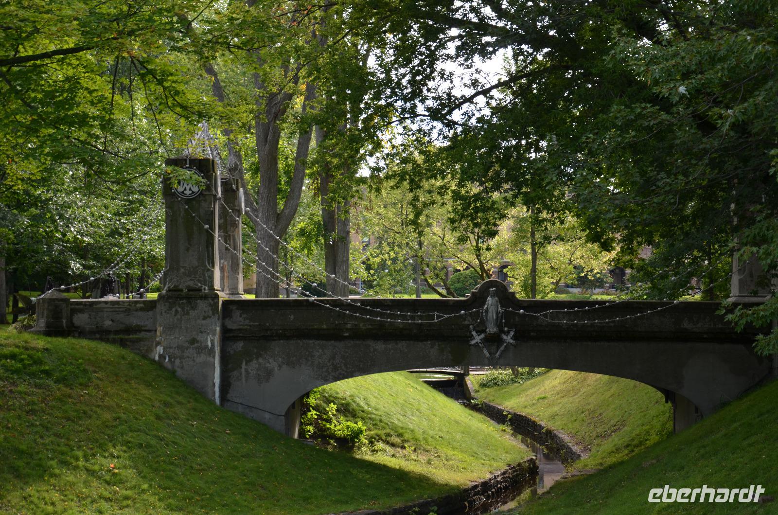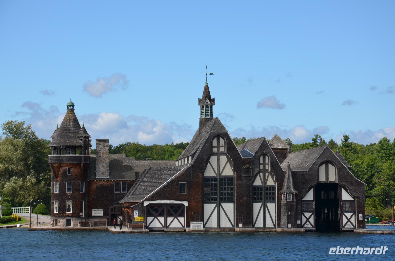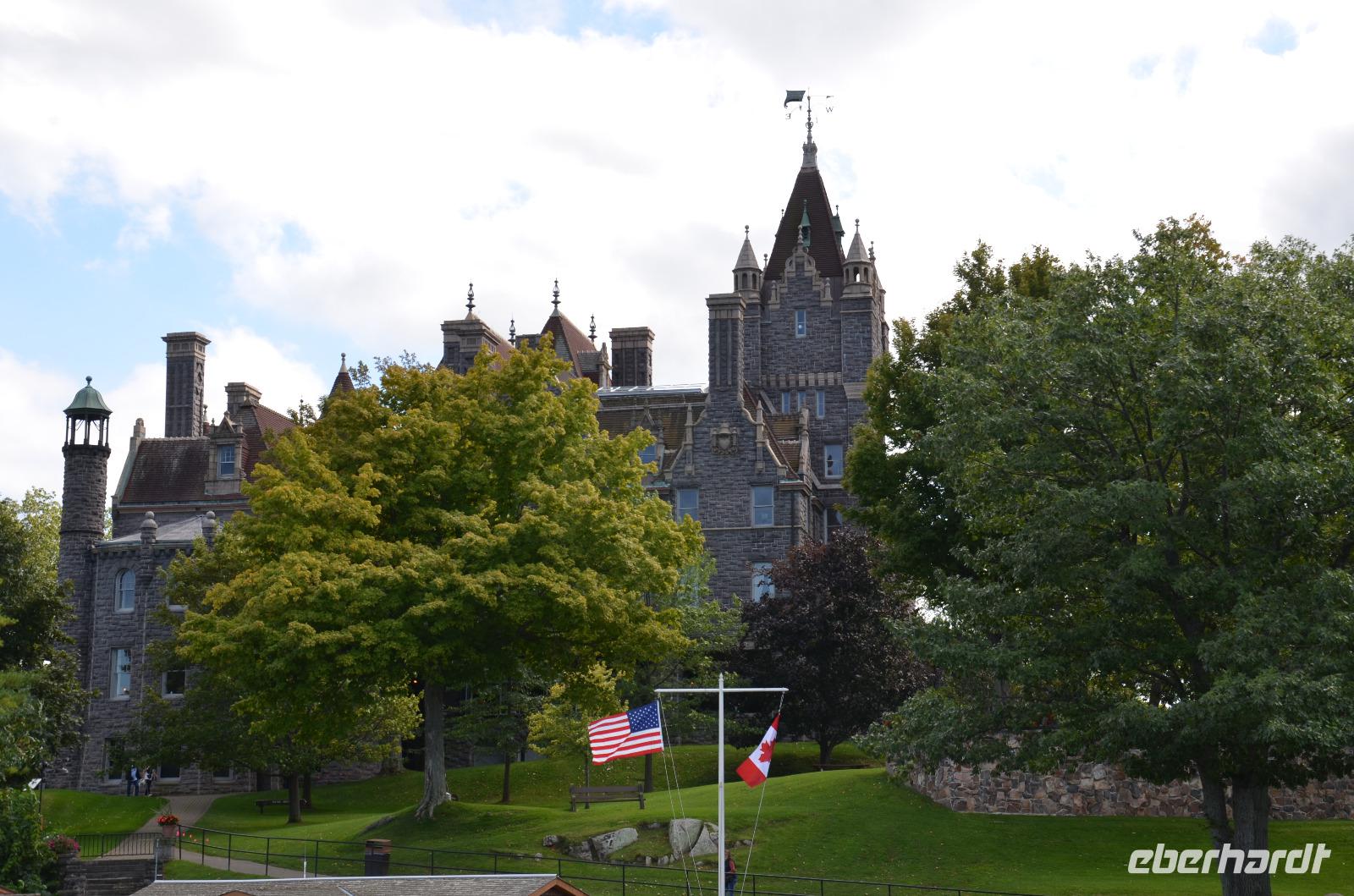 Die Hauptattraktion unserer Fahrt auf Seiten der USA ist das „Boldt Castle", welches auf der Heart Island thront. Der zwischen 1894-1904 vom Hotelmagnaten George C. Boldt erbaute Gebäudekomplex, sollte eine Liebeserklärung an seine Frau Louise darstellen und das größte und schönste private Wohngebäude Nordamerikas werden. Als diese allerdings kurz vor der Fertigstellung verstarb, wurden die Bauarbeiten abrupt eingestellt und die Gebäude dem Verfall überlassen. Erst im Jahr 1977 wurde das Gemäuer von der Thousand Island Bridge Authority übernommen und grundrenoviert; allerdings bewusst nie fertig gestellt. Heute ist es ein beliebtes Ausflugsziel für Touristen.