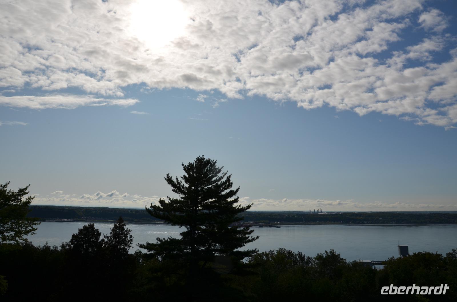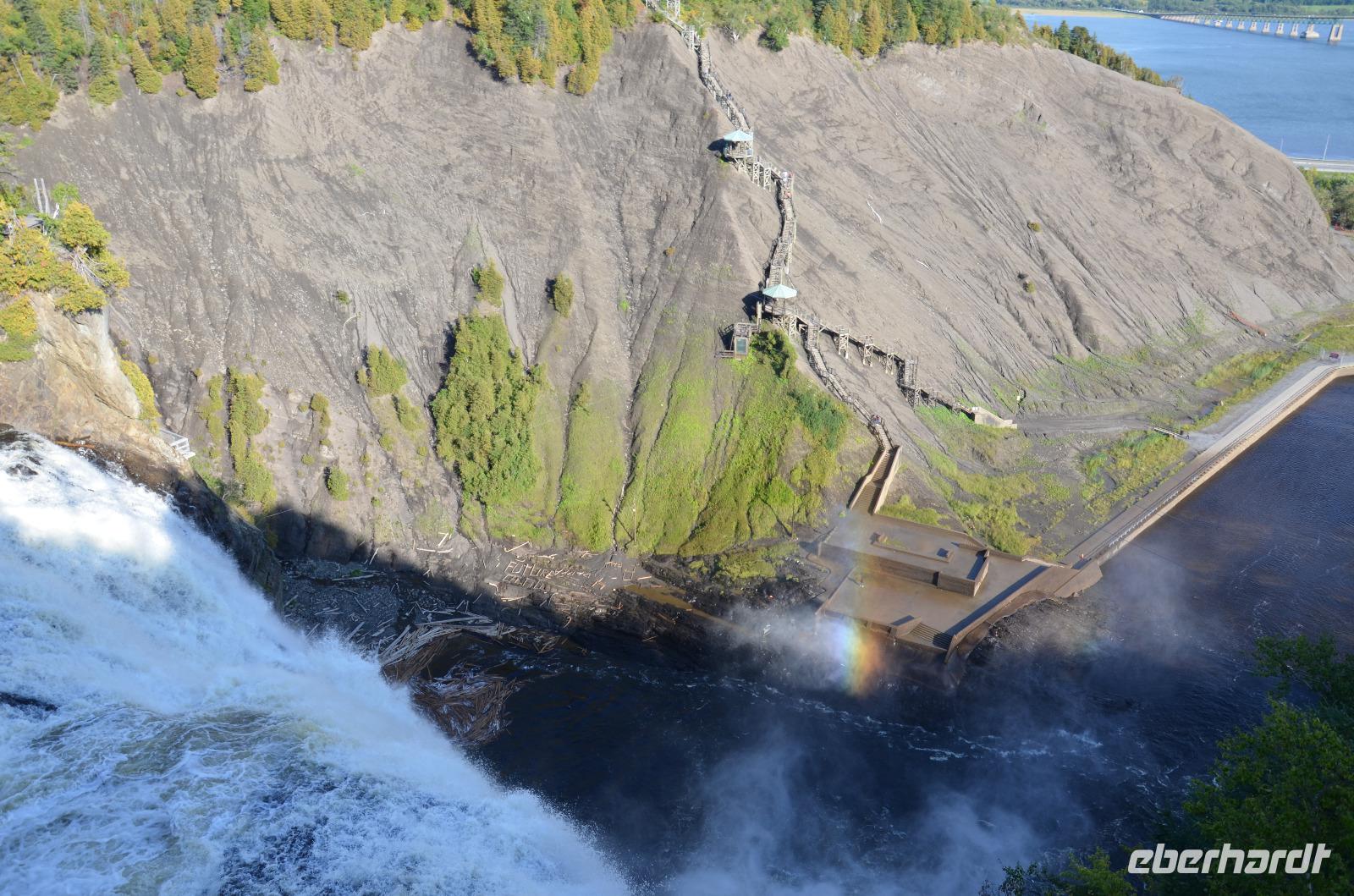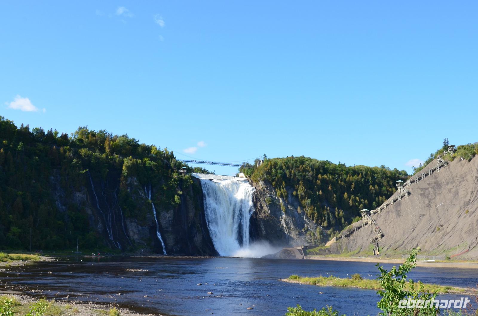 Die Zeit vergeht wie im Flug und schon sind wir auf dem Weg zum nächsten Naturspektakel - dem „Montmorency Wasserfall". Hierbei stürzen die Wassermassen des Montmorency über 83 Meter in die Tiefe und ergießen sich in den Sankt-Lorenz Strom. Somit überragt dieser Wasserfall die Niagara-Fälle um ganze 30 Meter. Aber davon werden wir uns später ein eigenes Bild machen.