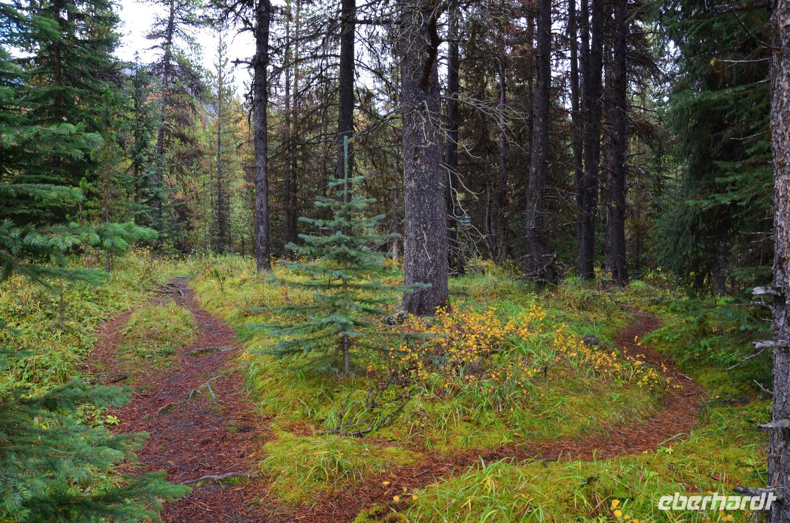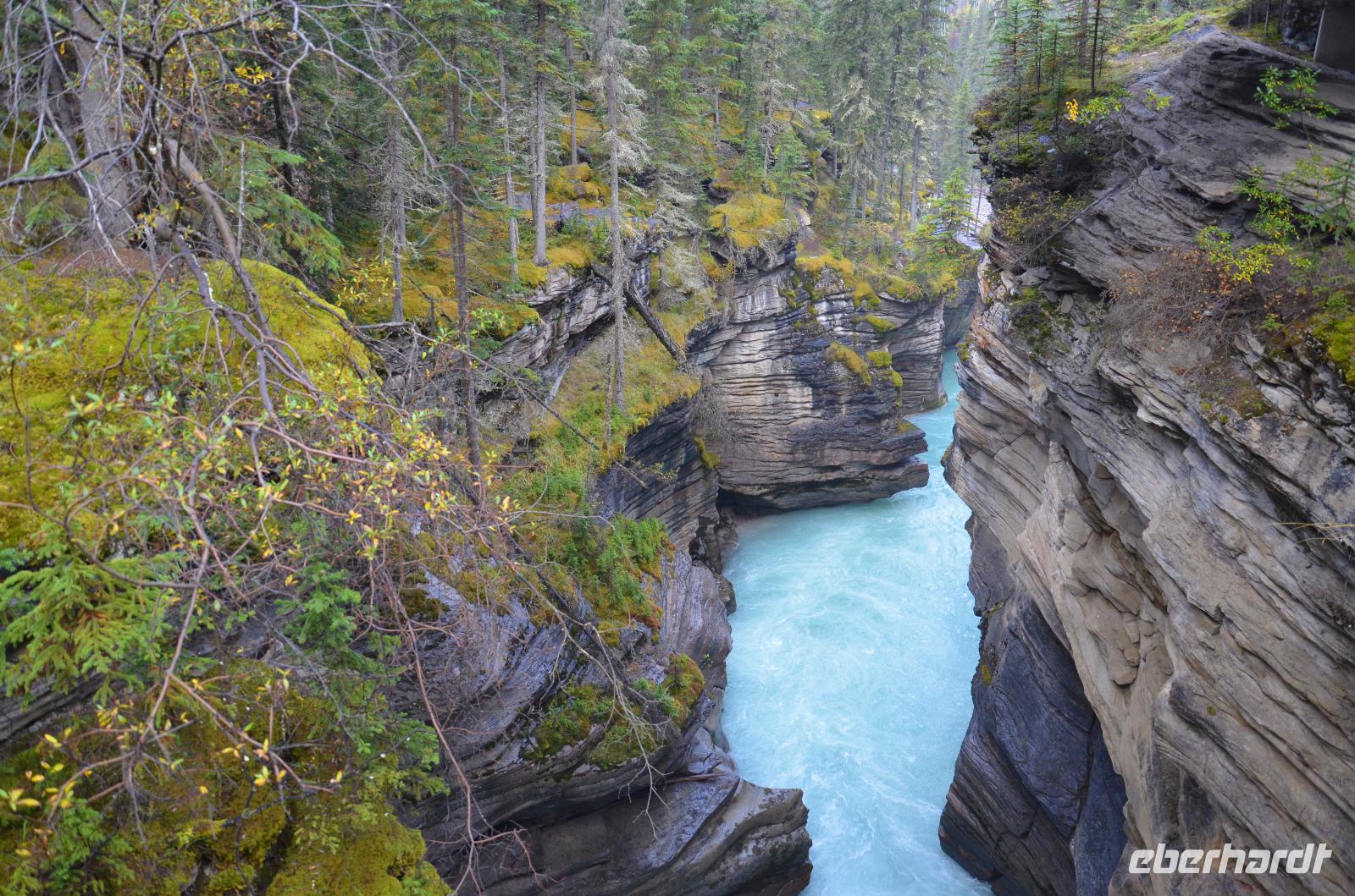 Mittlerweile befinden wir uns im „Japsper-Nationalpark". Die „Athabasca-Falls" sind mit ihren 23 Metern Höhe eine der Attraktionen hier, aber mehr bekannt durch die unbändige Wucht mit der sich das Wasser des „Athabasca Rivers" seinen Weg bahnt. Auf den kleinen Wegen zwischen den Felsen und Schluchten fühlt man sich fast wie im Elbsandsteingebirge. Nur die Artenvielfalt an Pilzen ist wesentlich höher. Die Rotkappe ist dabei ein Beispiel par exellence und nimmt Größen an, wie ich es noch nie gesehen habe.