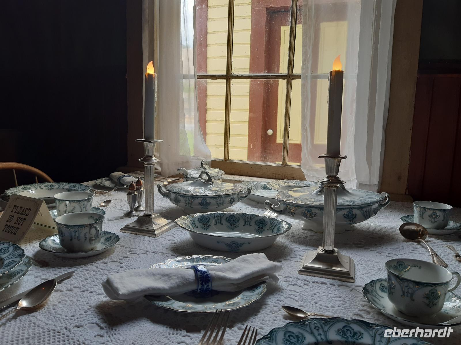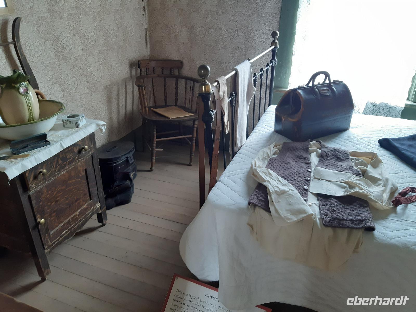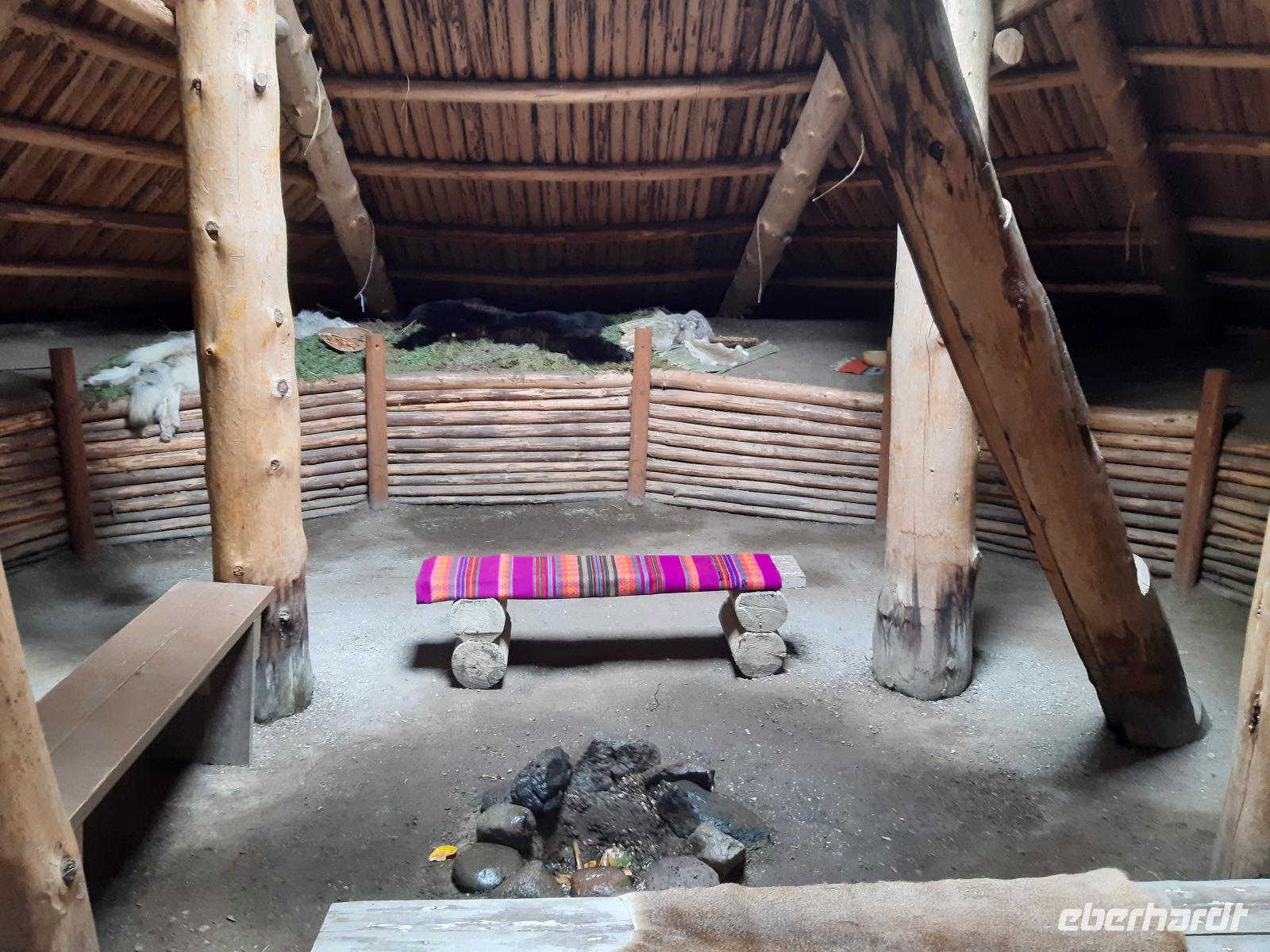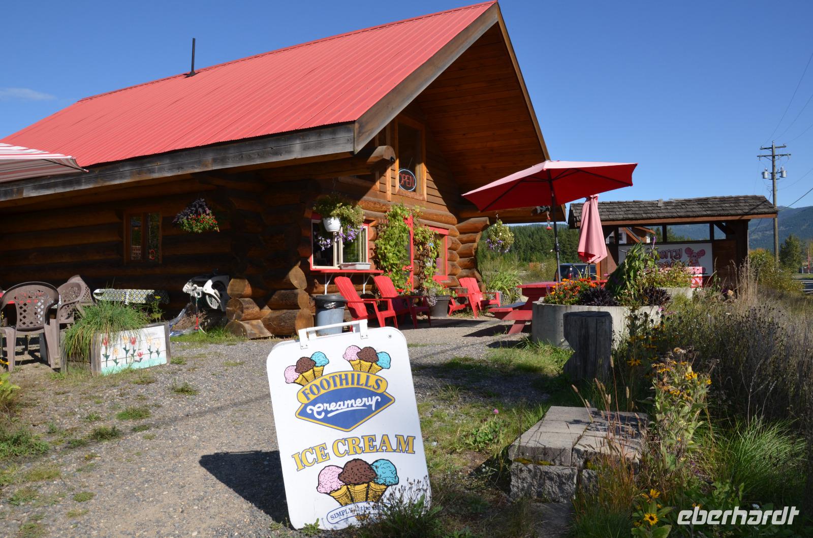 Pünktlich zur Mittagszeit trudeln wir in der historisch wertvollen „Hat Creek Ranch" ein. Dabei werden wir direkt vor dem mit Blumen übersäten Haupthaus von der Rancherin selbst begrüßt, die den ersten Teil der Führung durch den Hof übernimmt. Wer möchte, kann den ersten Weg mit Jim und Jake in einer alten Kutsche zurück legen. Die zwei besagten Pfundskerle sind dabei die Kutschpferde. Im Farmhaus lauschen wir erst gebannt den Ausführungen über die Zeit des Goldrausches, wo übrigens auch Elche und Kamele als Arbeitstiere mit eingespannt wurden, und begeben uns dann auf einen Rundgang durch das altehrwürdige Haus. Im Saloon sind noch die Spieltische aufgebaut, nebst der großen Bar. Dies war eine reine Männerdomäne, in der nur zu Weilen Tänzerinnen erlaubt waren. Im Obergeschoss des Hauses sind verschiedene Schlafräume eingerichtet, die gut erahnen lassen, wie verschiedene Personengruppen auf Reisen ausgestattet waren. Interessant ist auch die Küche, in der sich eine Glühbirne befindet, die seit bereits 30 Jahren brennt. Dabei ist das Geheimnis ihrer Langlebigkeit, den Stromfluss niemals zu unterbrechen. Die Farmerin erzählt uns allerdings, dass dieses Haus erst vor kurzem von einem Stromausfall betroffen war. Bei uns brennt das Licht jedenfalls noch. Im Anschluss begeben wir uns zu Fuß oder zu Pferd zu einem nachempfundenen Indianerdorf der Shuswap Indianer, die insgesamt 17 Stämme vereinen. Unter der erfahrenen Anleitung von Marc betreten wir ein „Pit-House", eine Familienwohnstätte für bis zu 25 Personen. Die Wohnfläche befindet sich dabei zwei Meter unter der Erde und ragt fünf Meter empor. In der Mitte des geräumigen, mit Holzstämmen gestützten Baus befindet sich der Feuerplatz, um den sich die Schlafplätze reihen. Dabei fungiert Tannenreißig als Unterlage und Fälle dienen als Decken. Eine wirklich faszinierende Konstruktion, deren Errichtung bis zu sechs Monate dauern kann - je nach Familiengröße und somit Arbeitskräften. Von außen wirkt der Bau wie ein riesiger Erdhügel. Als wir uns zusätzlich den natürlichen Räucherofen und die verschiedenen Lagerkammern angeschaut haben, zieht uns der Hunger zurück ins Haupthaus. Wir bedanken uns für eine informative und spannende Führung über die Ranch! Als Belohnung für unsere Ausdauer, gibt es zum Mittagessen langsam im Ofen gegartes Alberta-Rind, mit gedünstetem Gemüse, Kartoffelbrei und Bratensoße. Ein wahres Gedicht! Nachdem zu allerletzt auch noch der Souvenirladen gestürmt wird, ist unser Besuch hier offiziell ein Erfolg auf ganzer Linie!