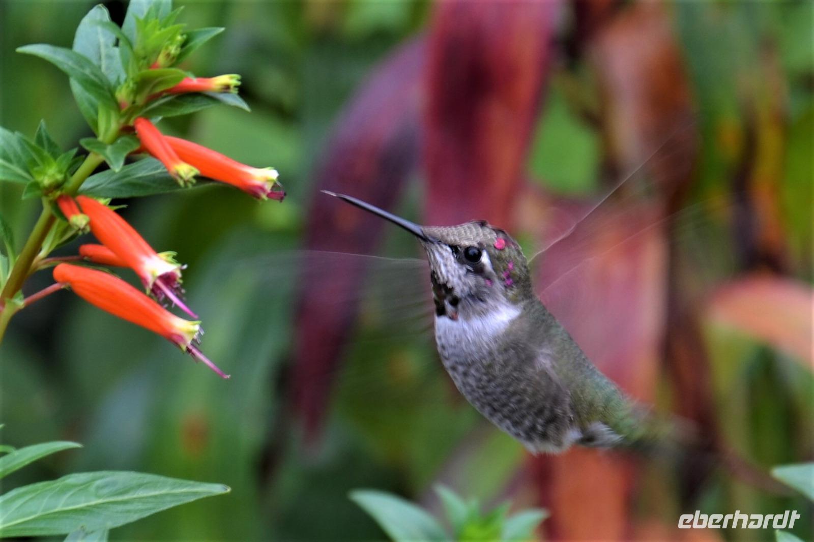 Nach einem kleinen Rundgang durch die Stadt bei Tageslicht, begeben wir uns zu unserem heutigen Glanzlicht des Tages - den „Butchart Gardens". Hierbei handelt es sich um eine 22 Hektar große, private Gartenanlage in Familienbesitz, welche sich auf der Saanich Peninsula befindet. Ihre Anfänge nahm die Parkanlage dabei unter den Bemühungen von Jennie Butchart, die den Steinbruch, der beim Abbau von Kalkstein auf dem Grundstück entstanden war, verschönern wollte. Durch ausreichende Mittel wurde das Projekt immer größer. Während Frau Butchart anfangs ausschließlich Teegästen ihren Garten stolz präsentierte, fing sie irgendwann an, den Garten auch für Fremde zu öffnen und verlangte kleine Eintrittsgelder. Heute sind die „Butchart Gardens" ein regelrechtes Familienimperium, welches seit 2004 den Kanadischen Ehrentitel „National Historic Site of Canada" trägt. Von einem einstigen Hobby sind sie also zu einem Nationaldenkmal aufgestiegen, von historischer Bedeutung. Die Anlage gliedert sich dabei in fünf Hautbereiche: dem Senkgarten, dem Rosengarten, dem Japanischen Garten, dem Italienischen Garten und dem Mediterranen Garten. Wir schlendern durch alle Bereiche hindurch und beobachten dabei zusätzlich verschiedene Kolibriarten, wie sie behände dabei sind, den Nektar der Blüten aufzunehmen. Am Ende unseres Rundgangs kehren wir in das „Blue Poppy Restaurant" ein, welches sich direkt auf dem Gelände befindet und uns ein hervorragendes Mittagessen kredenzt. Gut gestärkt geht es weiter zum Fährhafen. Auf der eineinhalbstündigen Überfahrt bei schönstem Sonnenschein, ist es uns vergönnt, neben der wunderschönen Natur auch Seelöwen zu beobachten. Auch, wenn wir auf Wale gehofft hatten, ist dies doch ein schöner Abschluss unserer Zeit an der Pazifikküste.