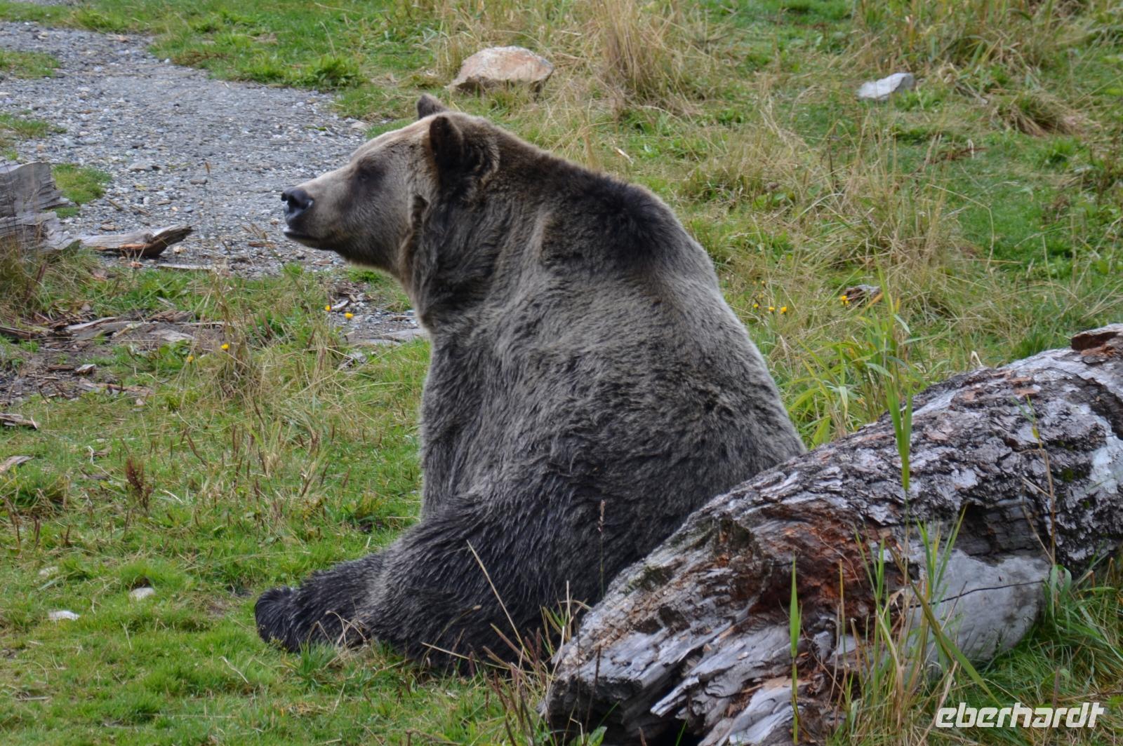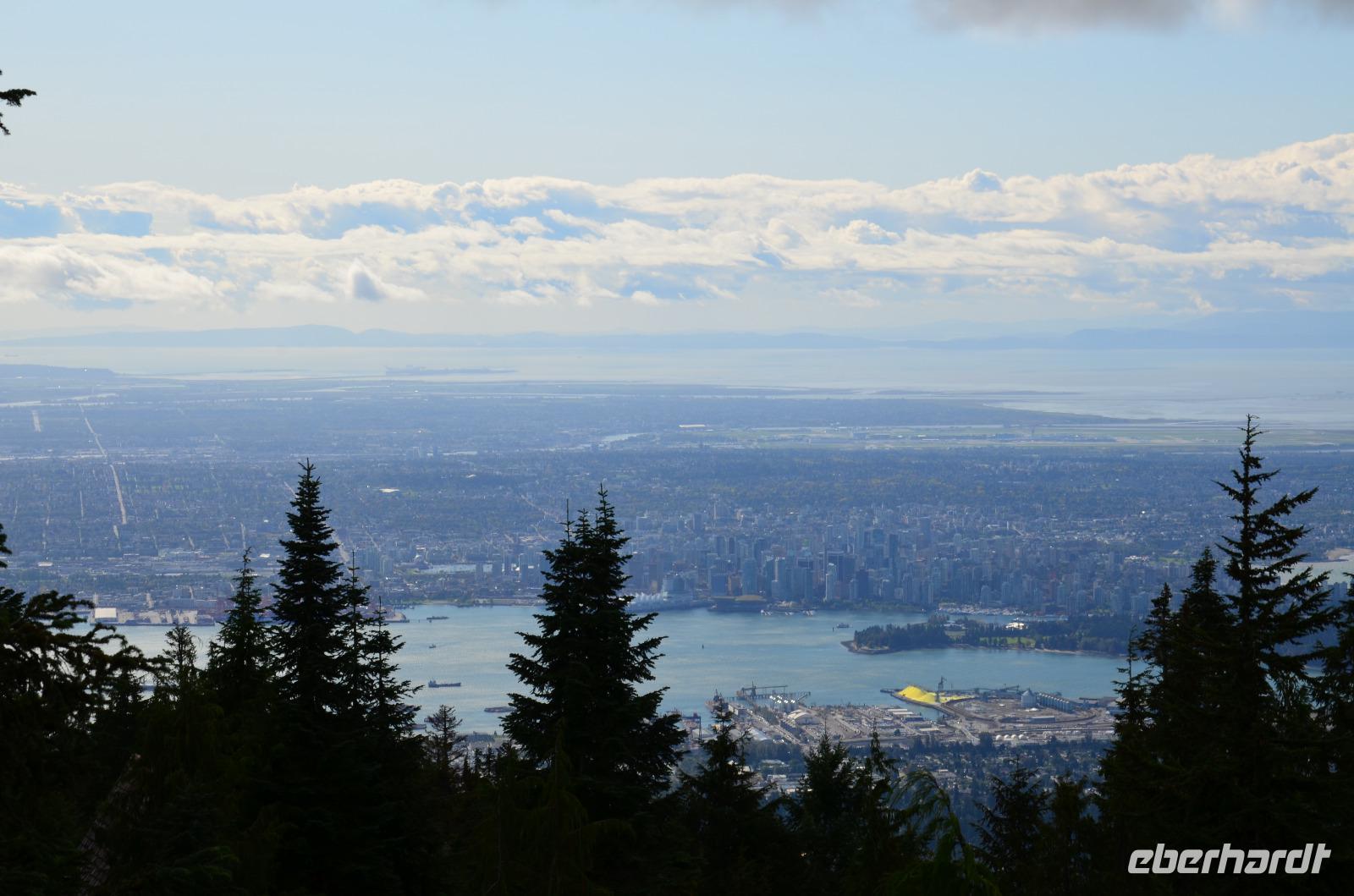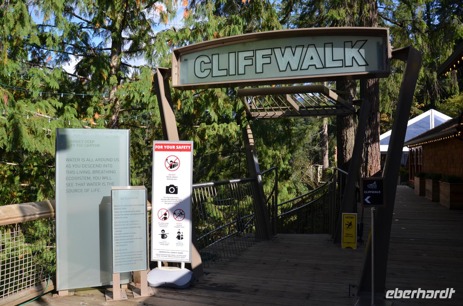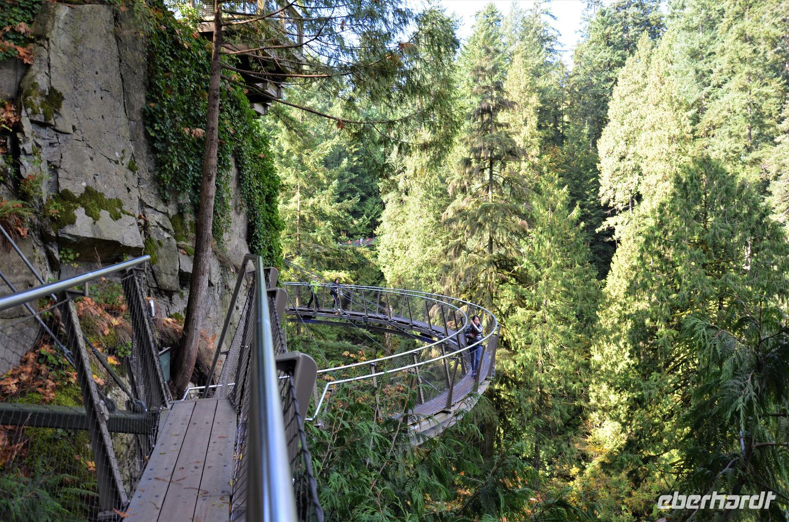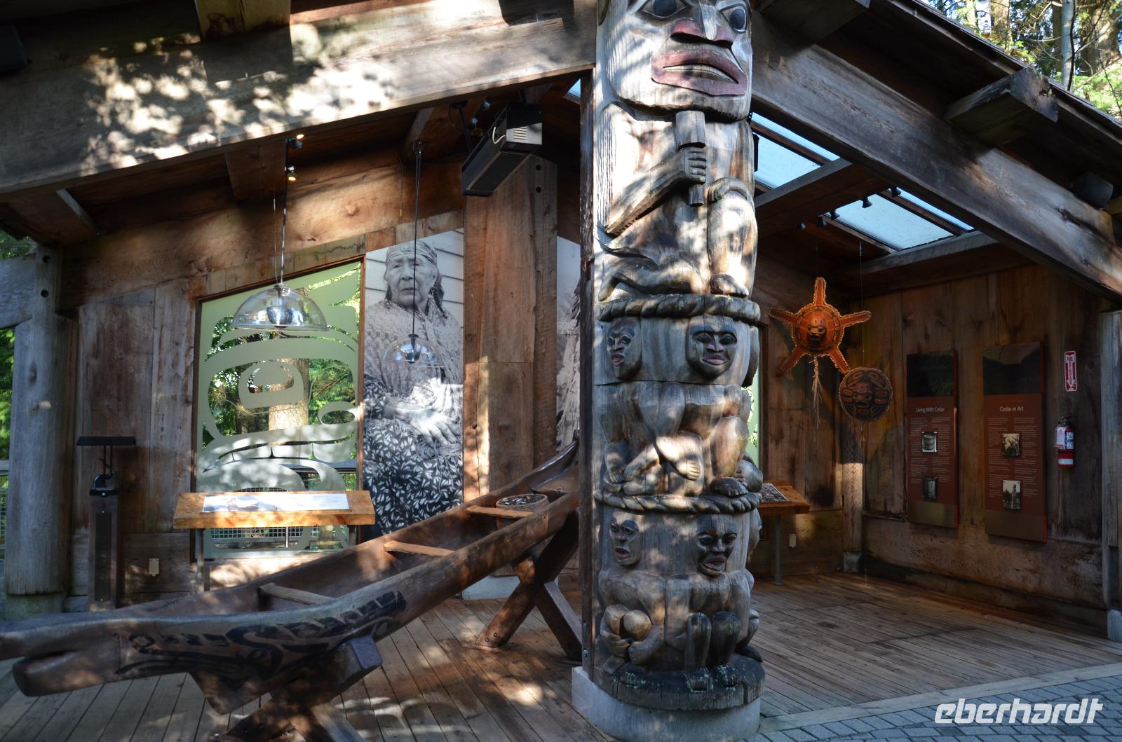 Die Sonne scheint und somit starten wir heute guter Dinge in unseren letzten Tag hier im grünen Norden Vancouvers. Bei der Fahrt über die „Lionsgate Bridge" genießen wir einmal wieder den Ausblick auf die Stadt. Als erstes erwarten uns zwei Stunden im „Capilano Suspension Bridge Park", wobei der Capilano der Fluss ist, über den die besagte freischwingende Seilbrücke in 70 Metern Höhe hinüber führt. Neben der 137 Meter langen Hauptattraktion, gibt es aber auch noch einen Baumwipfelpfad inmitten 8 aufragender Douglastannen und einen 213 Meter langen „Cliff Walk" (Klippenweg). Begleitet wird man dabei von zahlreichen Informationstafeln. Nachdem wir alle Wege beschritten haben, geht es weiter zum „Grouse Mountain", dem 1.200 Meter hohen Gipfel Vancouvers, mit einer fantastischen Panoramaaussicht über die Gegend. Hinauf geht es dabei mit einer 15 minütigen Gondelfahrt. Das wohl spannendste am Erklimmen des Berges, sind die zwei hier ansässigen Grizzlys Grinder und Coola, die bereits seit 18 Jahren hier leben. Ich hatte bereits zuvor gesagt, dass dies die Bärengattung ist, die uns zu unserem Glück noch fehlt und ich wusste bereits, dass wir wunschlos glücklich aus Kanada abreisen werden. Bei etwas kühleren Temperaturen lauschen wir gebannt den Ausführungen eines Rangers, der alles Wissenswerte über die Tiere berichtet. Da sie allein durch seine Anwesenheit auf Futter hoffen, sind sie zum Anfassen nah direkt hinter dem Zaun. Dabei demonstrieren sie immer wieder ihre Stärke und Anmut bei kleineren Interaktionen miteinander. Ich fühle mich wie in einem Dokumentarfilm - nur viel besser! In freier Wildbahn würde es ein derartiges Band zwischen zwei männlichen Grizzlys nie geben, zumal sie auch kein so stattliches Alter erreichen würden. So umstritten die Frage ist, ob man grundlegend verwaiste Bärenbabys aufnehmen sollte, um sie aufzuziehen, so sehr profitieren wir heute von der Rettung der beiden. Einen Grizzly live und in Farbe zu beobachten ist schon ein ganz besonderes Erlebnis.