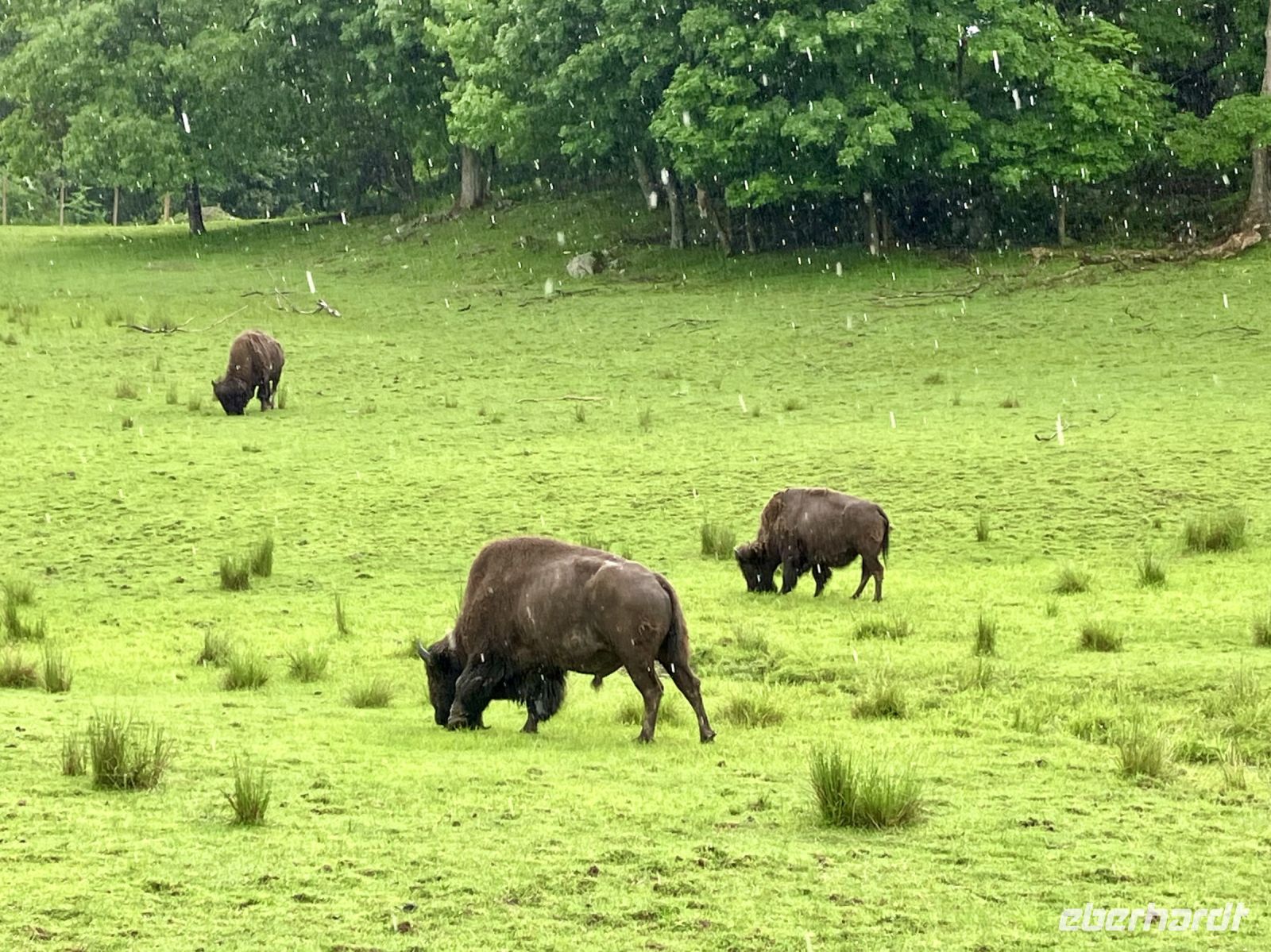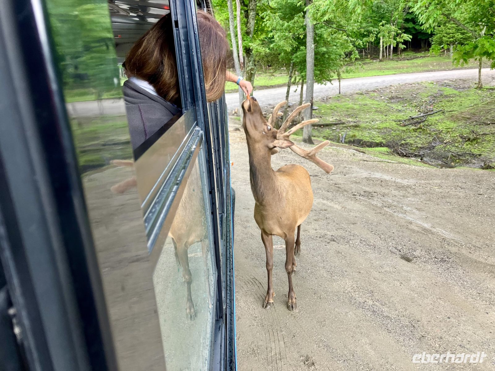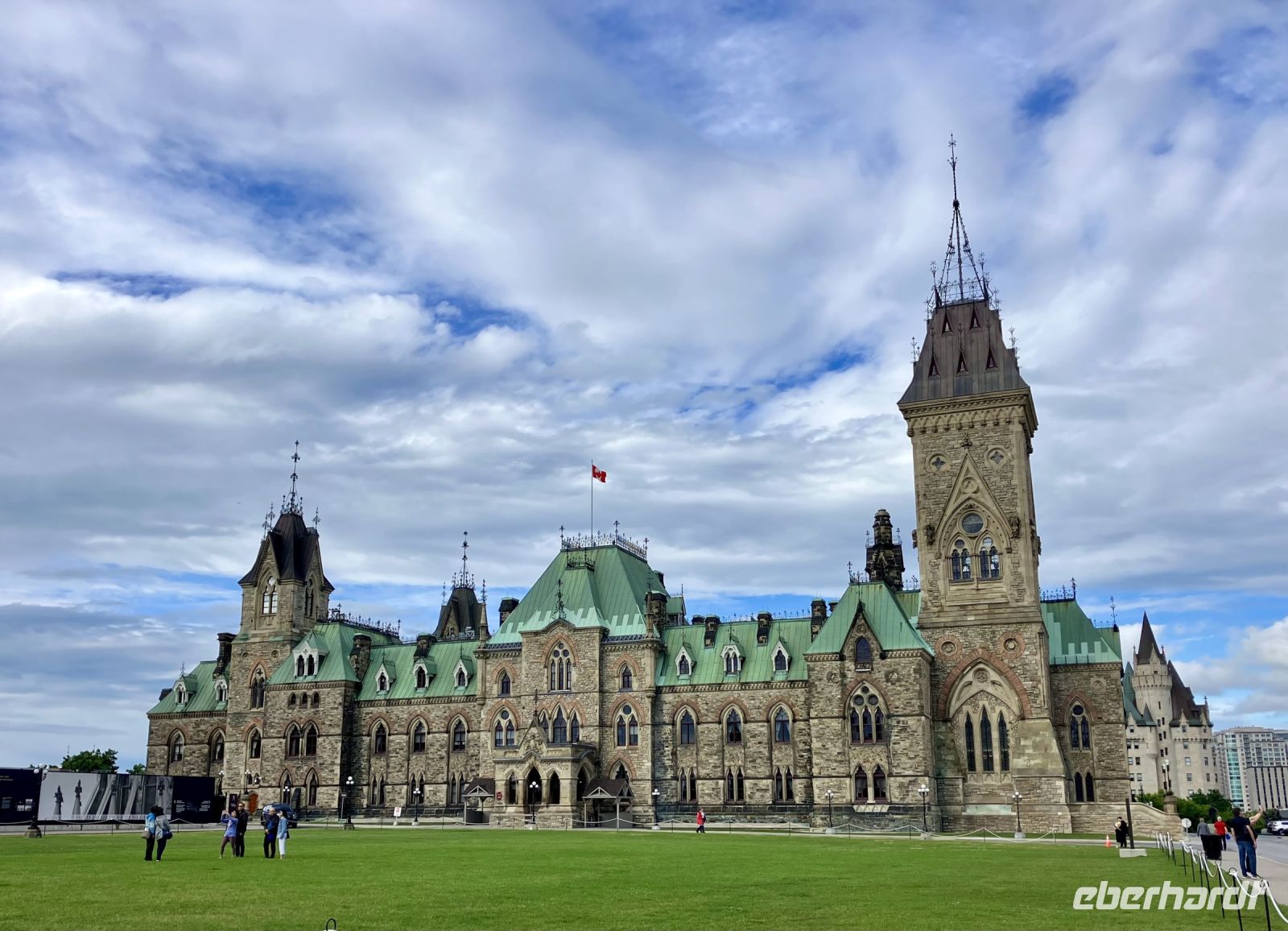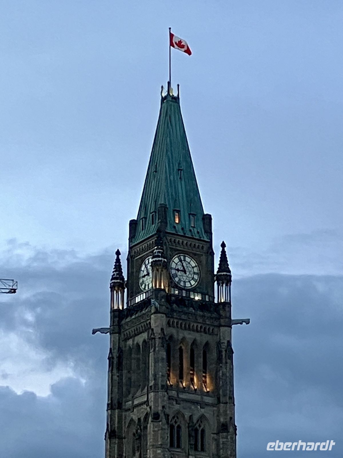 Heute muessen wir etwas frueher los, da die Reise von Quebec ueber Montreal nach Ottawa doch lange ist. Im Bus haben wir heute Zeit um die Photos aufzuarbeiten, das mitgebrachte Buch zu lesen, auszuruhen, whatsups an die Lieben zuhause vorzubereiten, einige interessante Themen durchzunehmen und Geschichten zuzuhoeren. Wir wollen uns auch mal einfach so miteinander unterhalten und besser kennen lernen. So vergehen die 4 Stunden wie im Fluge und wir sind bereits im Chateau Montebello. Dieses 5-Sterne Hotel ist ein besonders schoenes Blockhaus und wir sind die gluecklichen, die hier Mittagessen duerfen. Danach gehts gleich weiter zum Omega Park. Dieser kanadische Safari-Park ist genial. 12 Km schlaengeln wir mit einem Safari-Bus durch 900 Hektar Land und sehen Hirsche aller Arten, Elche, Bisons, Caribou, Baeren, Woelfe, Wildscheine sowie Schneeziegen, Berggeissen, Fuechse usw. Nun wissen wir genau, was wir in den Rockies naechste Woche nochmals in freier Wildbahn sehen moechten. Ein genialer Wildpark. Wir wollen aber weiter in die Hauptstadt Kanadas, nach Ottawa. Es ist nicht mehr weit, da sind wir schon im gruenen Ottawa. Auch hier ist unser Hotel sehr zentral, gleich neben dem Parlament, gelegen. Stephanie, unsere Ottawa Reiseleiterin, findet uns auch bald und sie zeigt uns die Regierungsgebaeude, das 5 Sterne Hotel Chateau Laurier, den beruehmten Rideau Kanal mit seinen Schleusen und Geschichten. Wir gehen und fahren an vielen Monumente, Brunnen, Statuen vorbei. Sehen das National Museum und seine atemberaubende Sicht ueber den Rideau Fluss auf das Parlamentsgebaeude und das Chateau Laurier. Danach faehrt uns Paul auch auf die Strasse der Botschaften und wir staunen ueber die maechtigen Villen der Residenzen. Am Abend spazieren alle noch ein wenig in der schoenen Stadt herum um das beleuchtet Parlament auf ewig fotografisch festzuhalten.