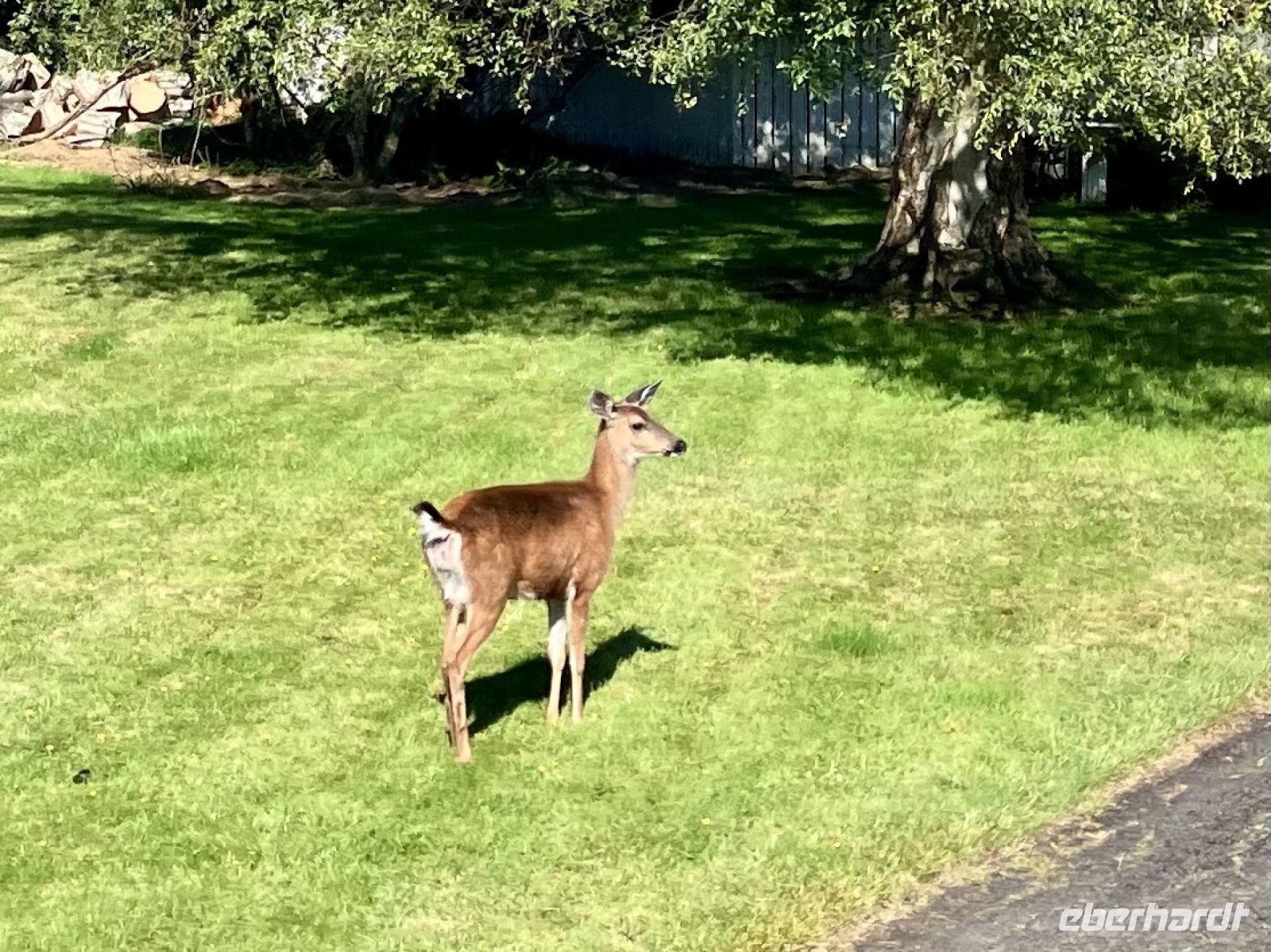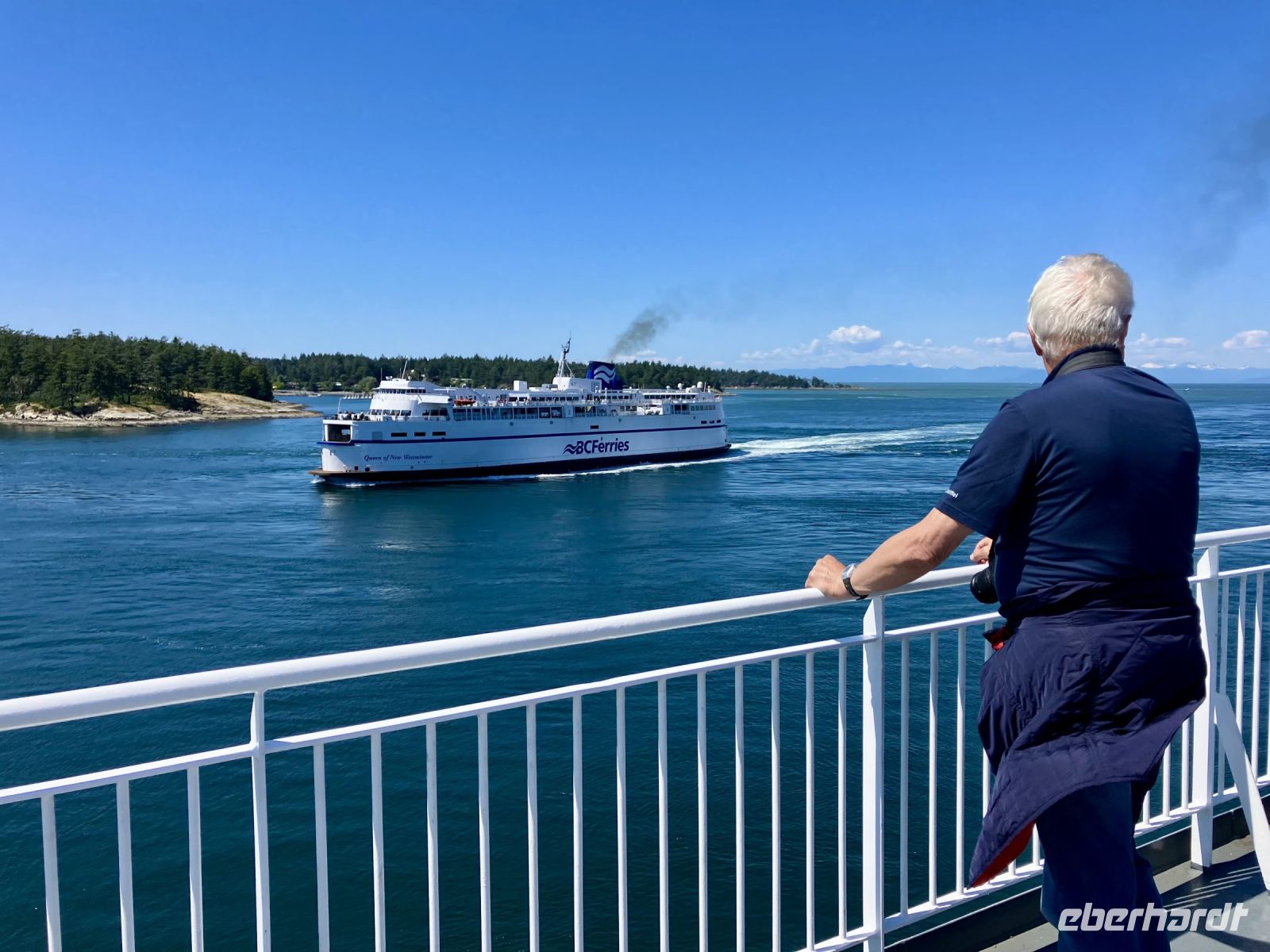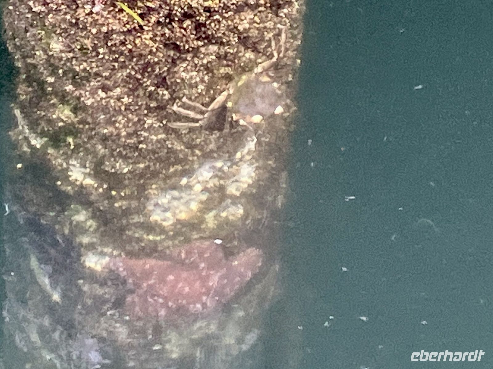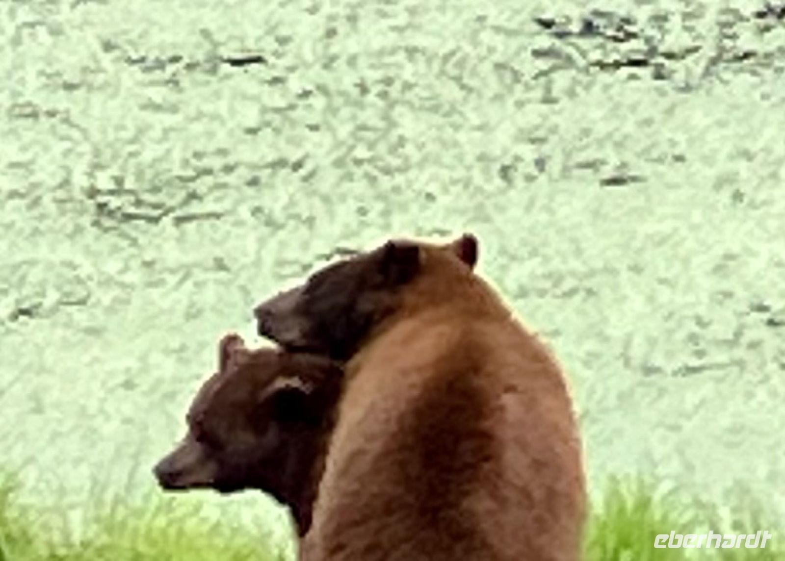 Ploetzlich klopft es auf Elisabeth’s Schulter, sie dreht sich um, und umarmt herzlichst ihre Freundin Claudia. Was fuer eine Ueberraschung, dass die beiden sich endlich wiedersehen. Claudia bleibt eine Weile mit uns und erzaehlt uns vieles ueber die Lachse hier, sie weiss alles, sie hat sogar diese Reise gemeinsam mit Eberhardt Reisen auf die Beine gestellt. Claudia leitet naemlich hier in Vancouver das Partner Buero von Eberhardt Reisen.