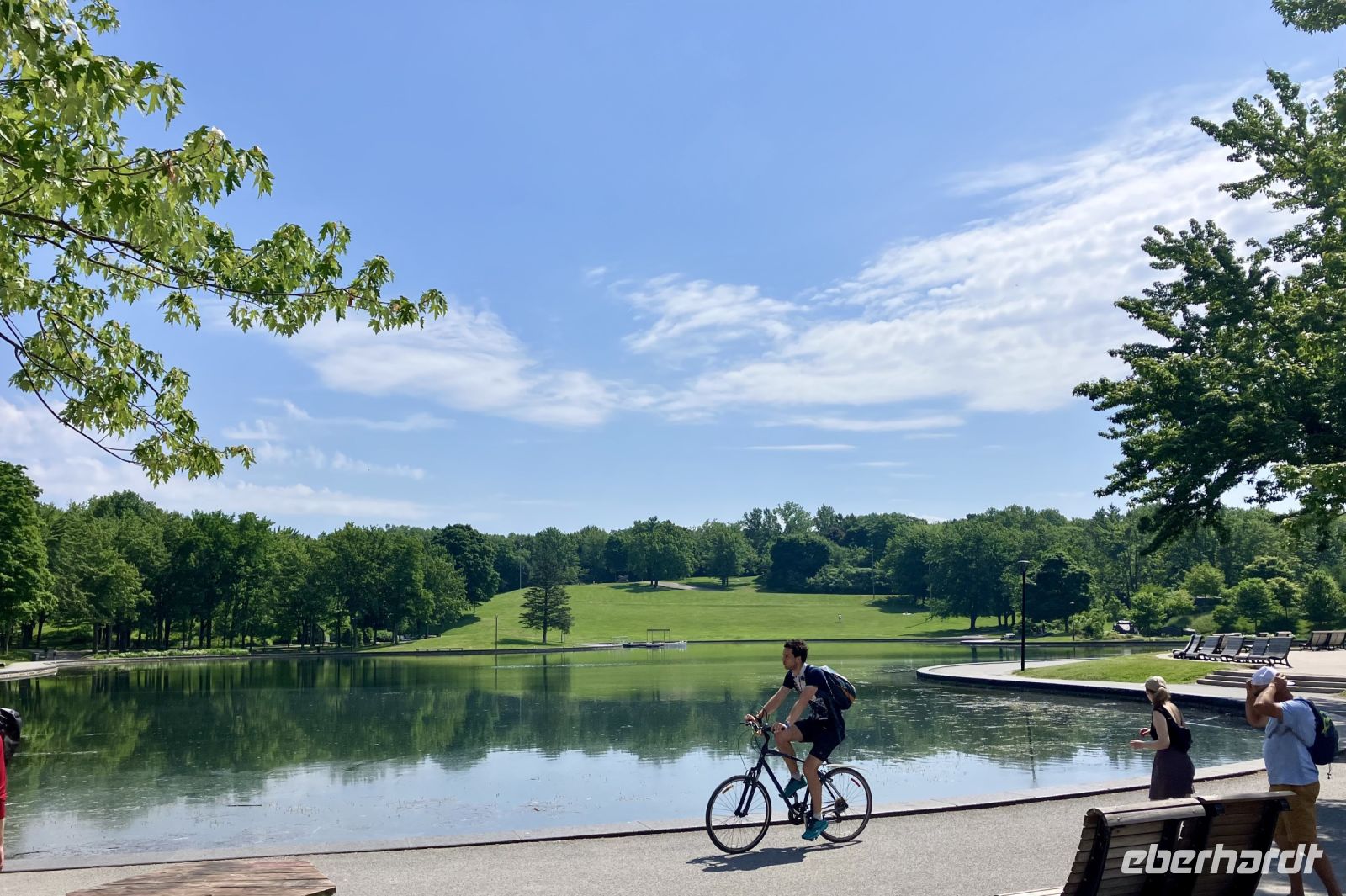 Ach wie schoen doch die Sonne am blauen Himmel ueber Montreal steht. Zwar waren wir alle schon mal gegen 3 Uhr morgends wach aber jetzt um 7:00 koennen wir bereits zum Fruehstueck gehen. Viel Leckeres gibt es hier zur Auswahl bloss der Kaffee, durch den kann man leicht durchschauen. Gut ist er ja, aber eben nicht stark wie daheim. Wir werden uns schon an ihn gewoehnen. Um 9 gehts dann los, Louis ist der Stadtfuehrer fuer Montreal.