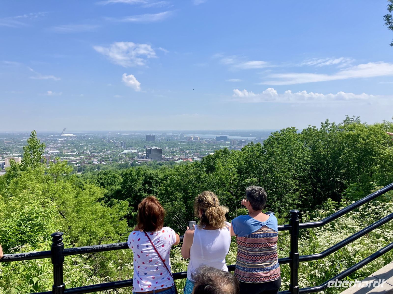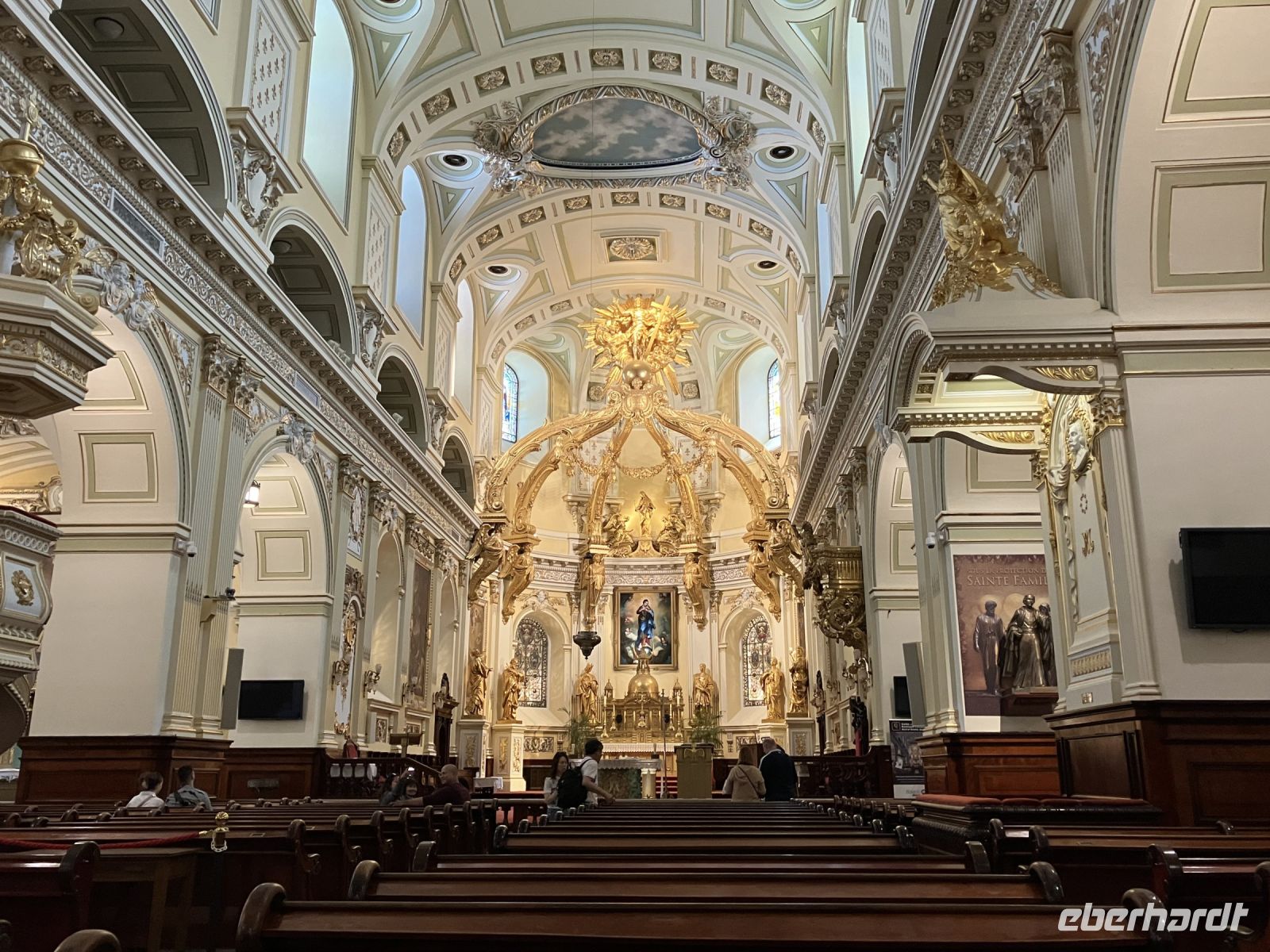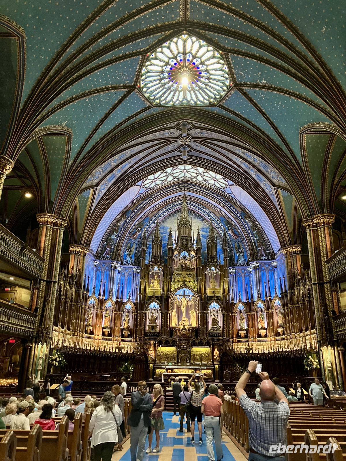 Unsere Stadtrundfahrt ist sehr kurzweilig und interessiert horchen wir aufmerksamst den vielen Fakten, Daten, Geschichten und Fabeln der Stadt zu. Auch ein Halt auf der Insel Sainte Helene, mit seinem tollen Biodom der Weltausstellung 1967, darf nicht fehlen ehe wir wieder in Richtung Mont Royal begeben. Schoen sind die Herrenhaeuser hier auf diesem niedrigen Berg den man nicht H….nennen darf. Wir kommen auch beim Oratoire, einer Pilgerstaette mit imposantem Dom vorbei ehe wir oben angekommen. Der Biebersee liegt idillisch ruhig in dem Park. Nach einer gemuetlichen Pause, gehts nun weiter zu einer schoenen Terrasse mit Blick auf die Stadt hinunter. Nun fahren wir in die Altstadt. Kirchen, enge Gassen, grossartige Stadthaeuser des 19. Jhdrt, Wandmalereien, viele Restaurants und Geschaefte wecken unser Interesse. So kommen wir auch zu der grossen Kathedrae, Notre Dame die wir gemeinsam besichtigen. Wie herrlich es hier drinnen nach Holz riecht, wie hoch doch das Gewoelbe ist, wie zart die imposante Bemalung und wie kraftvoll das Gefuehl ist, wenn man sich auf einer Bank niederlaesst. Louis erklaert uns nun viel Interessantes zu dieser Staette wo jung Celine Dion damals fuer den Pabst gesungen hat. Nach einer Mittagspause heisst es dann, Au revoir Montreal, nach dem kurzen Stop beim Olympia Zentrum fahren wir weiter nach Quebec City. Nach dem Nickerchen sind wir bereits in Trois Riviere und besuchen dort die schoene Kathedrale du Cap. Danach geht es auf der Koenigsstrasse weiter an vielen kleinen Orten vorbei die alle wunderschoene und teilweise sehr grosse Kirchen mit Zinndaecher aufweisen. In einem der Oertchen halten wir auch an um uns dort vor allem das Pfarrhaus aus dem 17. Jhdt anzuschauen. Es steht am Sankt Lorenz Strom neben der riesen grossen Pilger - Kathedrale. Viele Photos spaeter gehts jetzt Richtung Quebec wo wir auch gleich in das schoene Hotel Chateau Laurier einchecken. Dies Hotel ist wunderbar gelegen gleich bei der oberen Altstadt nicht weit des beruehmten Chateau Frontenacs. Auch hier sind die Zimmer riesig, die Betten herrlich und die Aussicht einfach Atem beraubend. Zum Abendessen gehen wir alle in die Grand Allee oder in die Altstadt dort finden wir viele Restaurants, Kneipen und Bars. Fuer jeden Geschmack gibt es etwas Passendes. Zurueck im Hotel : Die Bettdecken sind hier wirklich sehr stramm gezogen und bei der Befreiung der Zudecke von dem Unterleintuch befreit sich das Unterleintuch von der Matratze. Also muss man das Bett vorerst richten ehe man sich da niederlegen kann. Nun steht dem Schlaf steht nichts mehr im Wege. Gute Nacht.