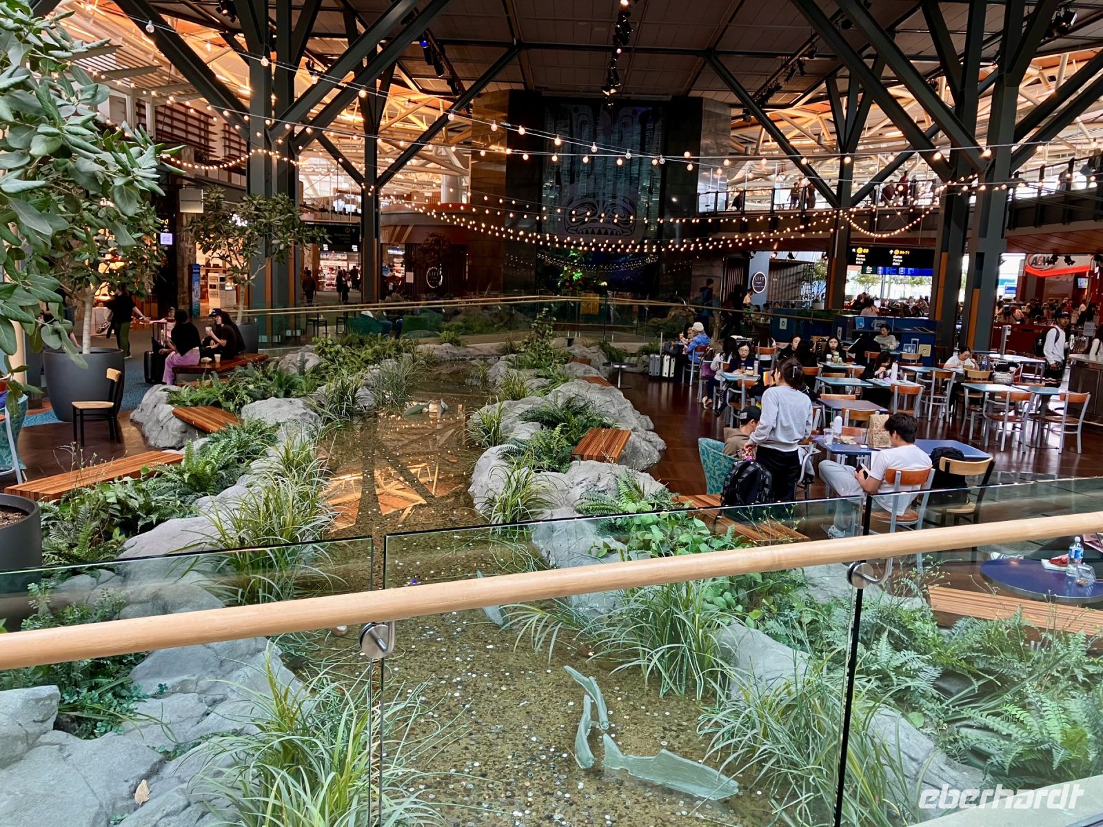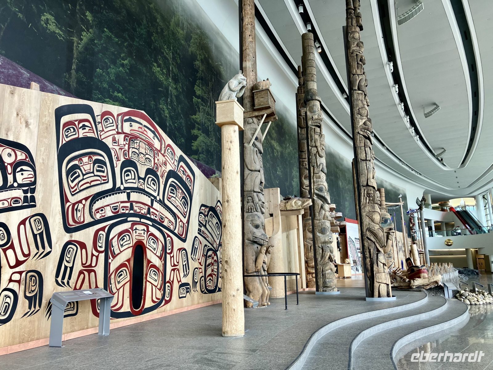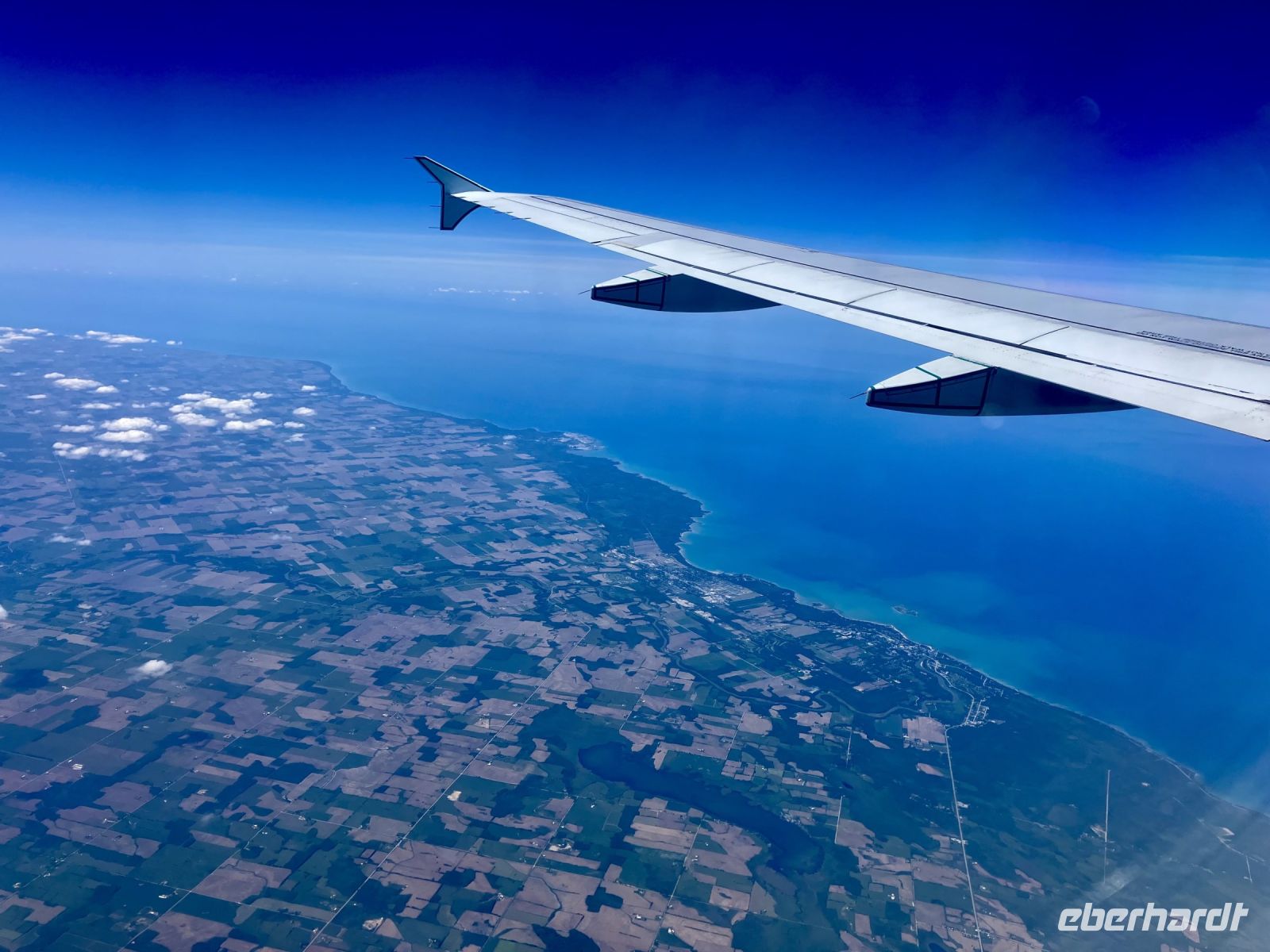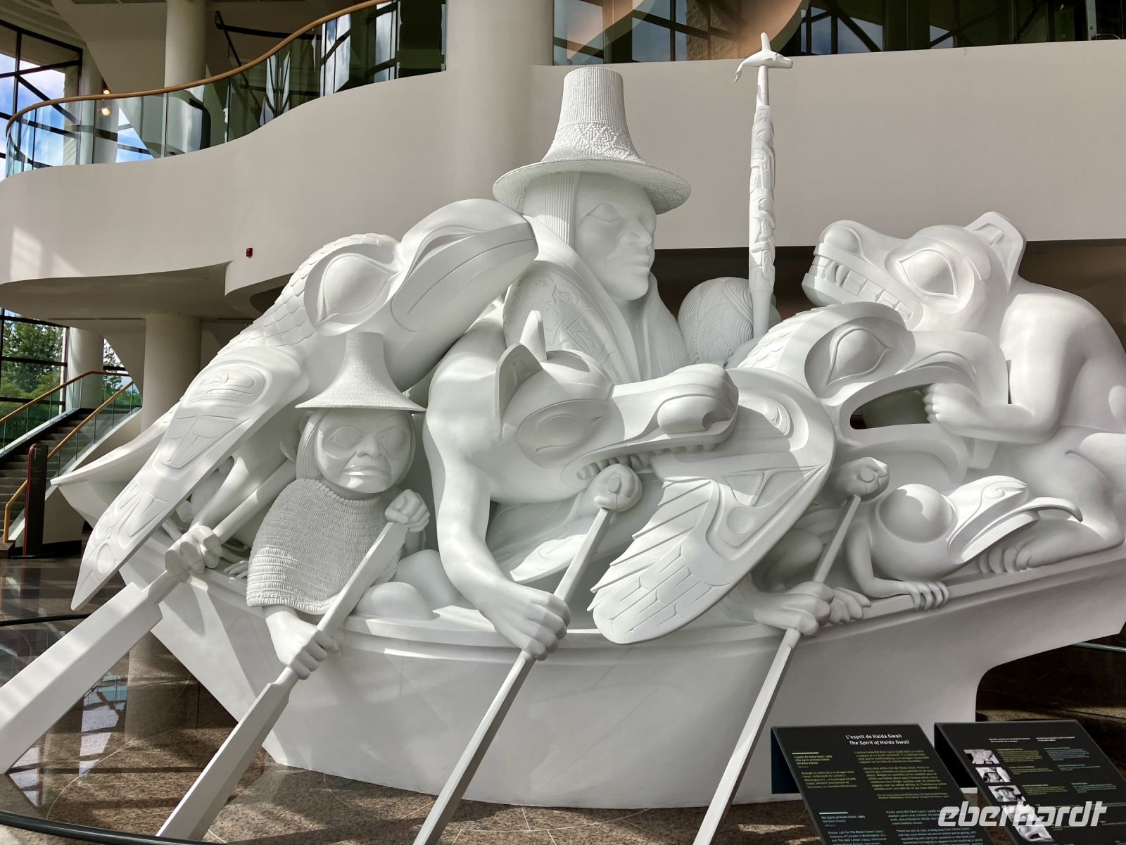 Etwas geraedert wachen wir an diesem letzten Tag der grossen Kanada Reise auf. Beim Fruehstueck lassen wir die Reise nochmals Revue passieren und sind auch bald soweit, Gepaeck in den Bus, wir auch, und ab zum Flughafen. Sam ist unser Fahrer heute. Wir sind zeitig da, es ist kein Gedraenge. Wir sammeln uns beim gruene Kanu und schauen nun, mit wem unser Maskottchen wohl nach Deutschland ziehen darf. Ploetzlich sind wir alle wieder wach, die Energie steigt, wer gewinnt unseren Jasper ? Tatsaechlich, der Pate hat die erste Quiz-Frage mit Bravur beantwortet und die Freude ist sehr gross. Er hatte Jasper auch gehegt und gepflegt auf der ganzen Reise, wir sind sicher, dass Jasper bei ihnen gut behuetet wird. Wir werden ihn natuerlich immer wieder besuchen muessen ! Wir gratulieren ganz herzlich. Die zweite Quiz-Frage wird auch sehr gut bewertet und der Gewinner hat nun ein Zubrot fuer den Flieger ! Wir lachen viel und verabschieden uns dann von zweien, die etwas spaeter mit einer Lufthansa Maschine nach Frankfurt fliegen werden. Der Flughafen ist innen sehr schoen und wir haben Zeit, das Aquarium und die Geschaefte auszuforschen.