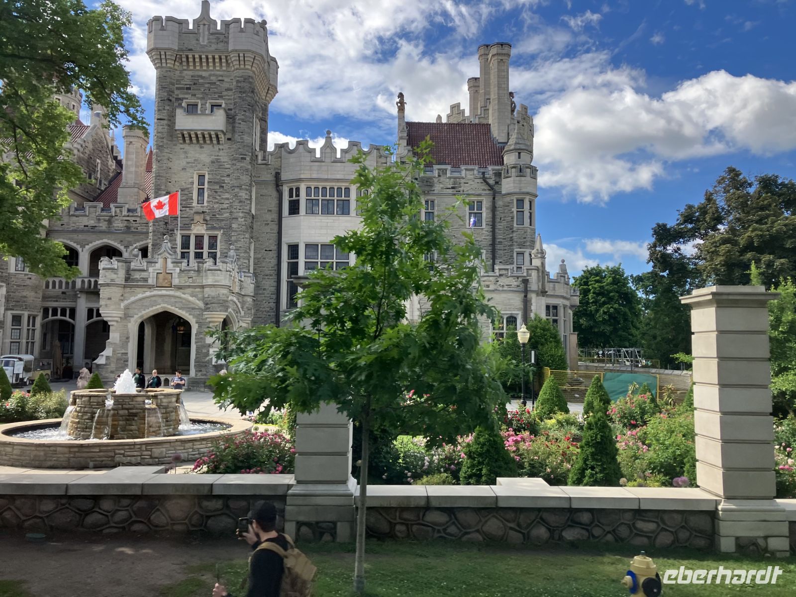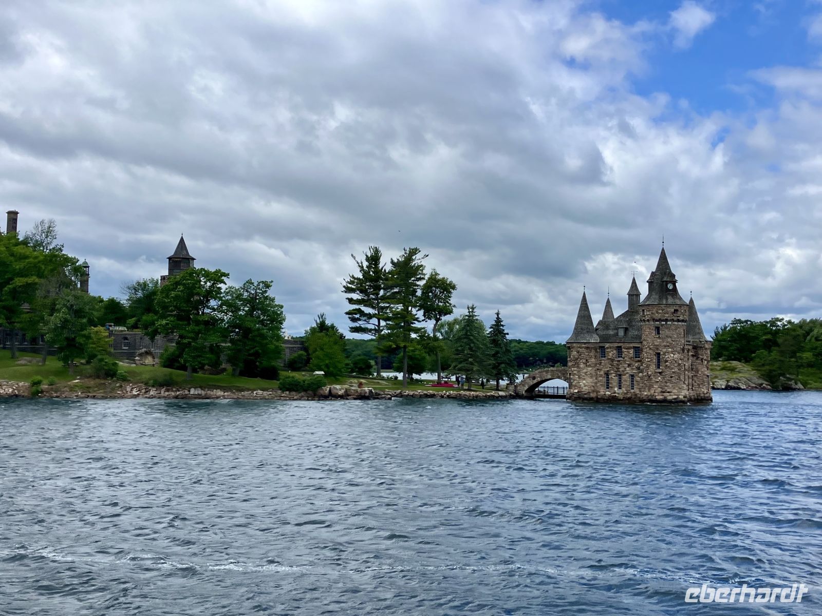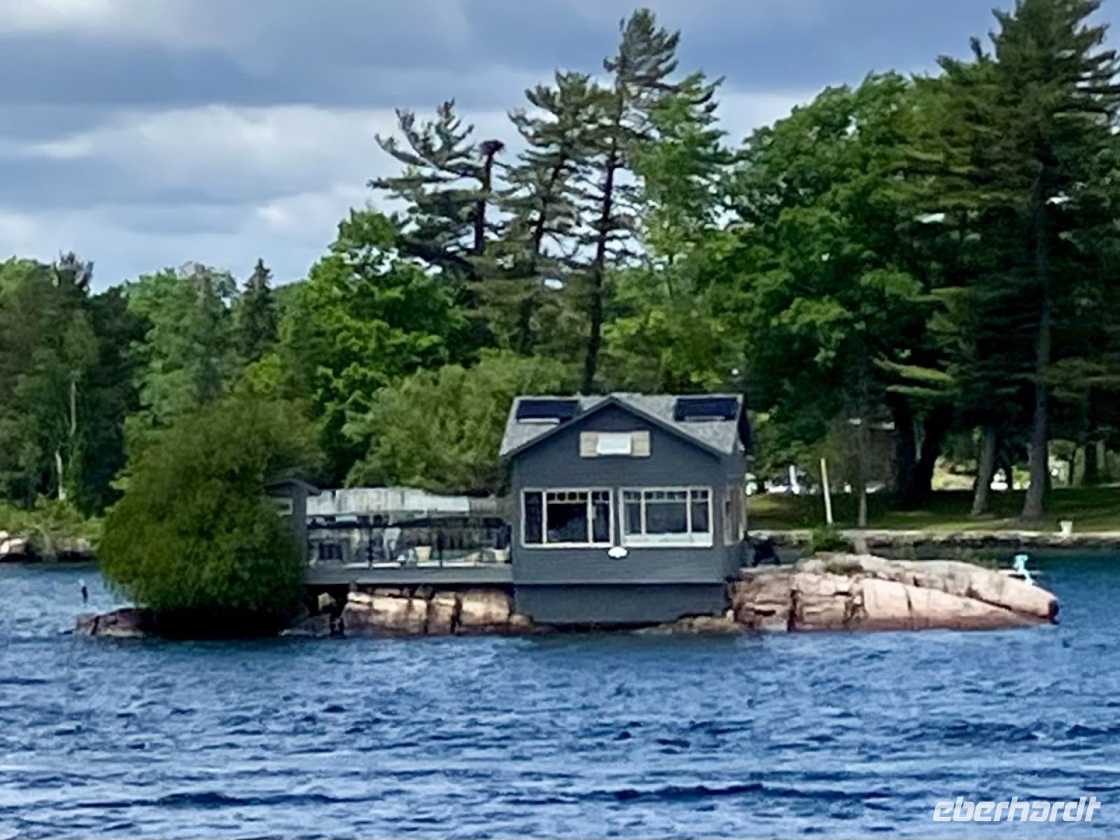 Gut geschlafen sehen wir uns wieder beim Fruehstuck. Heute fahren wir vorerst mal ueber den Rideau Fluss zu dem historischen Museum. Es ist von aussen bereits ein imposantes Gebaeude mit seiner Wellenform und die Aussicht ueber den Fluss zumParlament ist ein Genuss. Innen bestaunen wir besonders die Kunst der Ersten Nationen, neue Bezeichnung der Indianer, und viele tolle “Geschichtserzaehlende Pfaehle” so nennt man nun die Totem. Nachdem wir nun genau wissen wie man einen Totem liest geht unsere Tour weiter. Dem Rideau Kanal fahren wir nun entlang bis runter zum Sankt Lorenz Strom. Hier verlassen wir die Highway und fahren auf der Parkstrasse dem Strom entlang mit einer kleinen Pause an einem schoenen Strand. In dem kleine Dorf Rockport machen wir Halt. Nun gehts aufs Schiff und wir fahren hier eine ganze Stunde durch eine Maerchenwelt wo sich der Sankt Lorenz Strom und der Ontario See kuessen. Der Fluss ist sehr breit, in der Mitte verlaeuft die Grenze zwischen Kanada und den USA und ueber 1800 kleinere und groessere Inseln schmuecken das Gewaesser. Wir erleben ein wunderbares Spektakel. Jedes Inselchen ist sehr verschieden. Es gibt groessere und winzig kleine Inseln, steinerne Schaeren und dicht bewachsene Inseln. Wenn Platz, steht auch ein schmuckes Haus drauf oder es thront eine Villa. Die Herz Insel beherbergt sogar ein Schloss, das Bolt Castle welches als Geschenk fuer Mrs Bolt gedacht war. Sie verstarb jedoch leider fruehzeitig, das Schloss wurde nie ganz ausgebaut und Mr Bolt hat danach anscheinend nie mehr hier genaechtigt. So hat wohl jede Insel seine Geschichte und wir kurven gemuetlich mit unserem Schiff umher und geniessen diese paradiesische Gegend. Mit uns auf dem Schiff ist eine Gruppe Taiwanesen sie schnattern lustig dahin und wenn wir 50 Fotos geknipst haben, so waren sie mit ihren sicher 250 Fotos noch viel fleissiger. Nach diesem herrlichen Ausflug gibt es noch ein schoenes Mittagessen im Bootshaus. Jetzt ist aber Zeit, dass wir Paul wieder Gesellschaft leisten. Auf gehts, auf die weniger paradiesische Highway. Wir sind so satt, dass wir auf dem Weg nach Toronto gleich ein Nickerchen machen. Nach viel Verkehr und auch einigen Staus, kommen wir am fruehen Abend in Toronto an. Es ist die Mega-City Kanadas mit ihren 6.4 Millionen Einwohner. Die vielen Autos und Leute, die Hochhaeuser, Sirenen, Plakate und Leuchtreklamen bringen uns wieder ins heutige Leben. Wir wohnen hier in einem feudalen Hochhaus-Hotel mit Zimmer im 14.+15. Stockwerk inmitten des Geschehens. Auch hier sind die Zimmer wieder grosszuegig und die Betten himmlisch…..ich werde von den 1000 Inseln traeumen, und Du ?