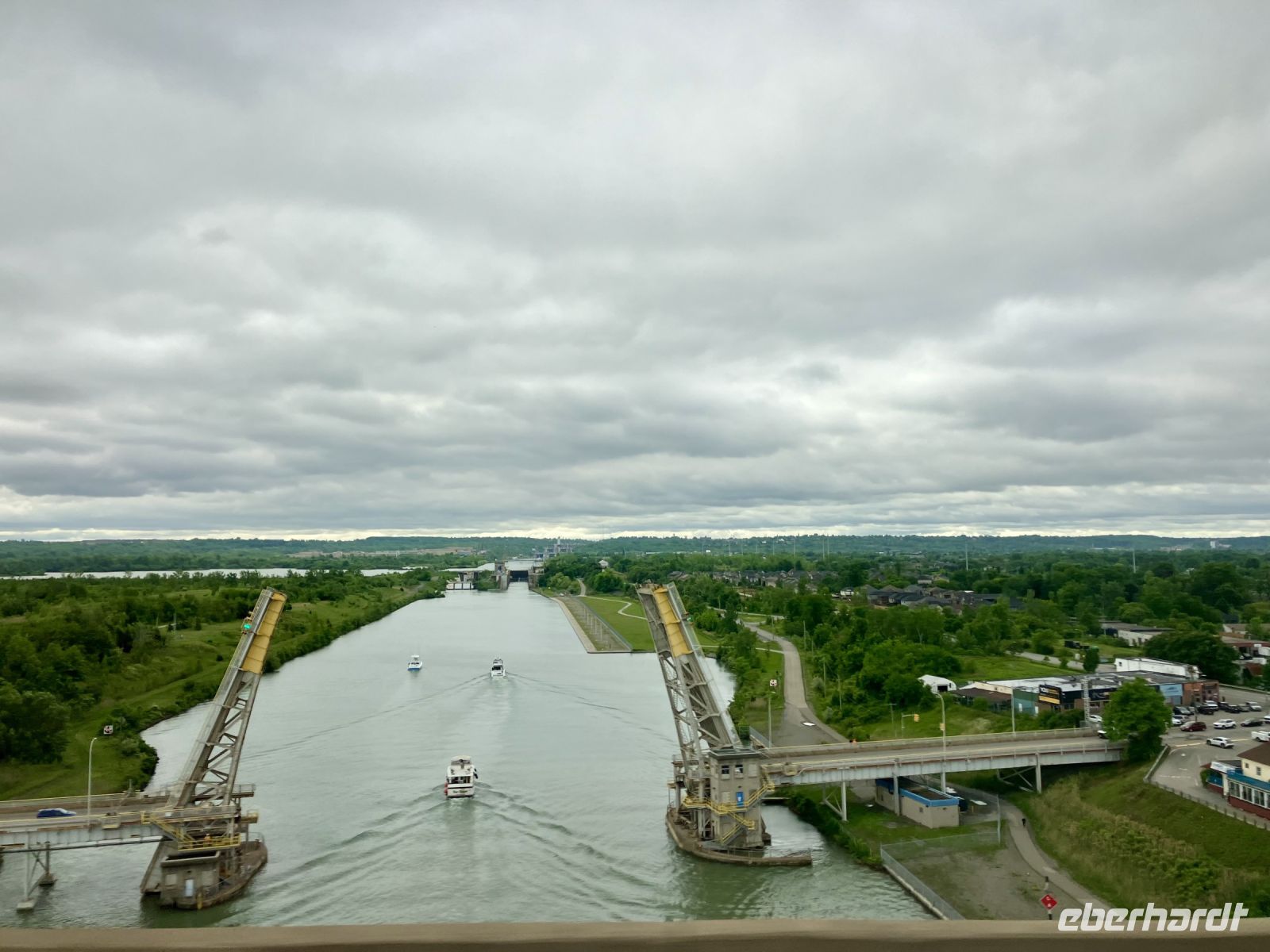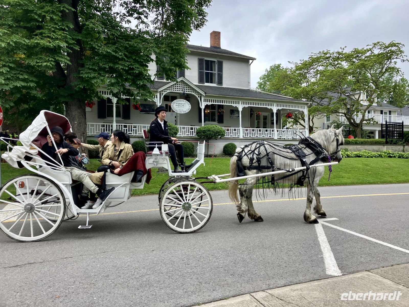 Auch heute ist das Wetter so mittelpraechtig. Mal Sonne mal Wolken eher kuehl aber nicht nass. Heute ist ein besonders wichtiger und toller Tag, da wir dem Ontario See entlang fahren, den Welland Kanal mit seine vielen Schleusen kennenlernen eine schoene Mittagspause machen werden ehe wir bei den Niagara Faellen unseren Hoehepunkt des Tages erleben werden. Ach ja….und die Elisabeth hat heute auch Geburtstag. Beim verlassen Torontos befinden wir uns vorerst auf einer 10-spurigen Autobahn und schauen gespannt dem riesen Verkehrsaufkommen, besonders in die andere Richtung, zu. Wir fahren an den grossen Vorstaedten Torontos vorbei und sehen auch den tollen Welland Kanal und eine seiner 8 Schleusen. Einen kleinen aber wichtigen Stop am Ontario See spaeter fahren wir weiter bis nach Niagara on the Lake. Ein wunderbares kleines Winzerdorf mit schoenen alten viktorianischen Haeuser und so vielen Blumen wie wir noch selten gesehen habe. Es liegt am Ostende des Ontario Sees. Nach einem erholsamen Spaziergang sehen wir uns alle wieder am Seeufer. Eine Weinverkostung wird hier aufgebaut und wir kosten vorerst einen Chardonnay der geeicht ist. Na ja, nicht jedermanns Geschmack aber gekroent wurde er. Nun kosten wir auch einen Champagner und damit wird das Geburtstagskind auch besungen und beschenkt. Ach wie schoen, wir habens sehr gut und sind gut gelaunt. So kosten wir dann auch noch einen schoenen, ausgezeichneten Merlot der Firma Jackson Triggs. Ja, wenn man sich anstrengt schmeckt man die zarte Vanille auf der Seite des Gaumens. Mmmmh die Snacks dazu schmecken auch lecker.