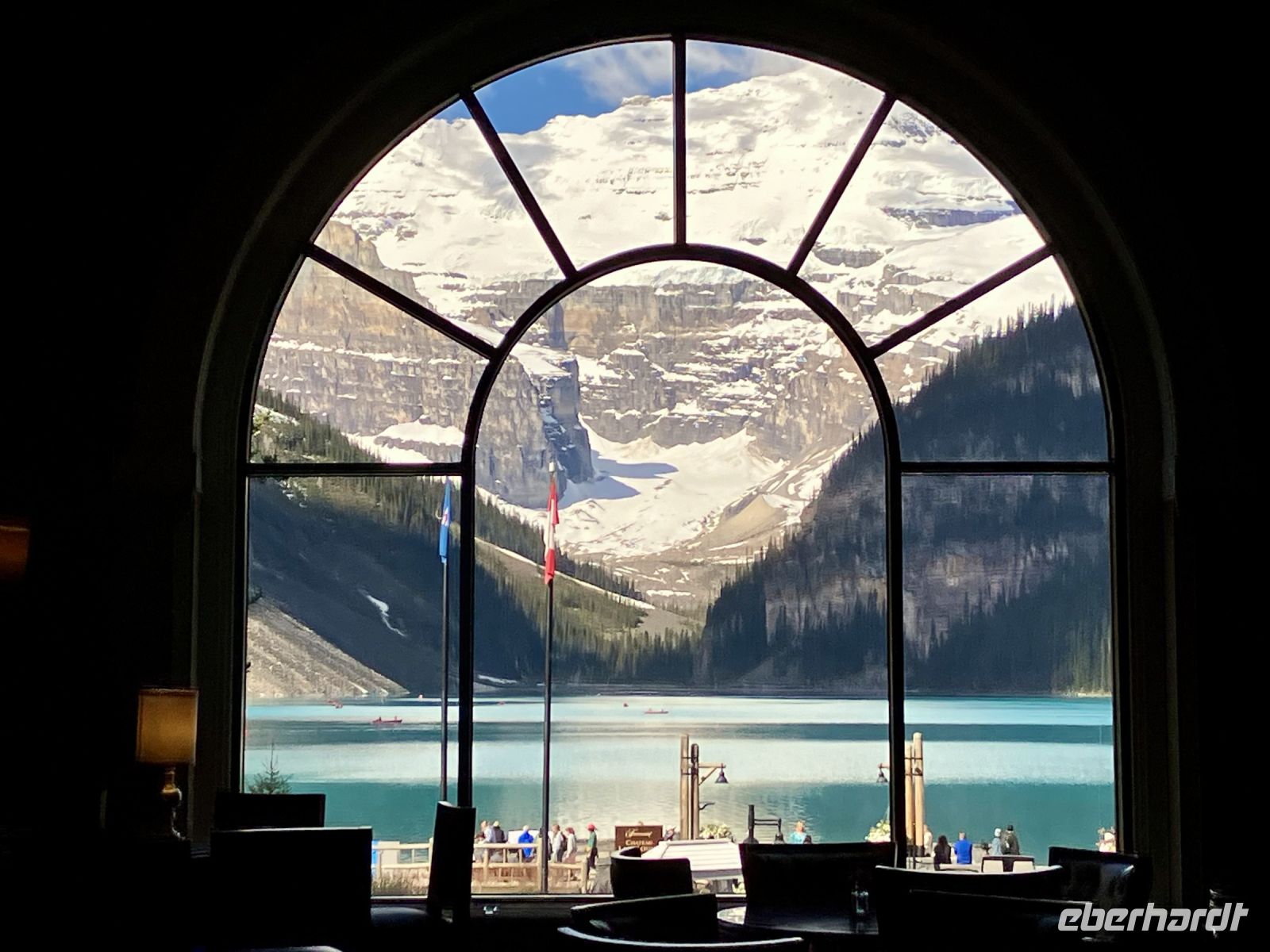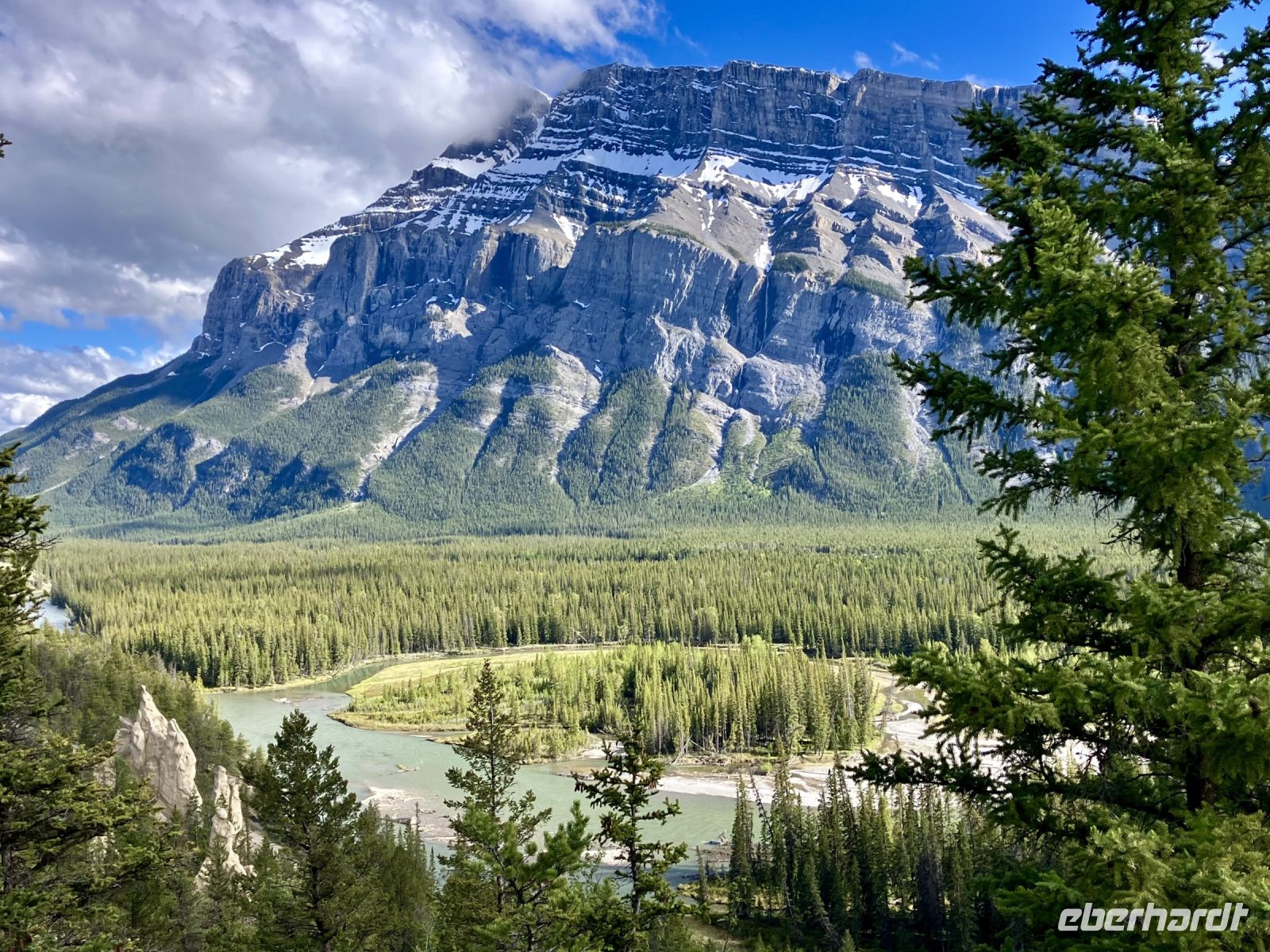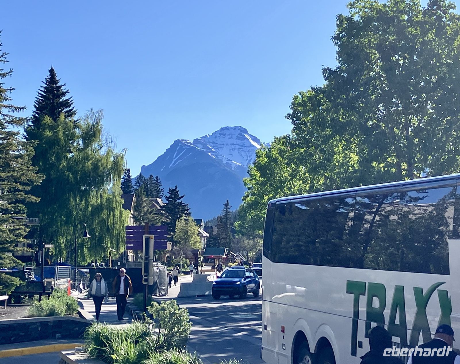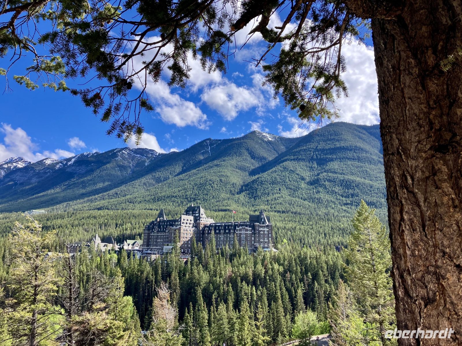 Etwas frueher als erwartet wachen wir heute auf, denn wir haben einen kleinen Jet-lag von -2 Stunden. Also nochmal drehen und warten bis es etwas heller wird. Endlich, heller. Aufwachen in Banff, oh wie schoen ein paar Wolken sorgen fuer himmlische Abwechslung und wir eilen zum Fruehstueck. Auch hier gibt es ein schoenes Buffet mit einem besonders feinen Muesli und den ueblichen Speisen, die alle frisch hier im Hause hergerichtet werden.
