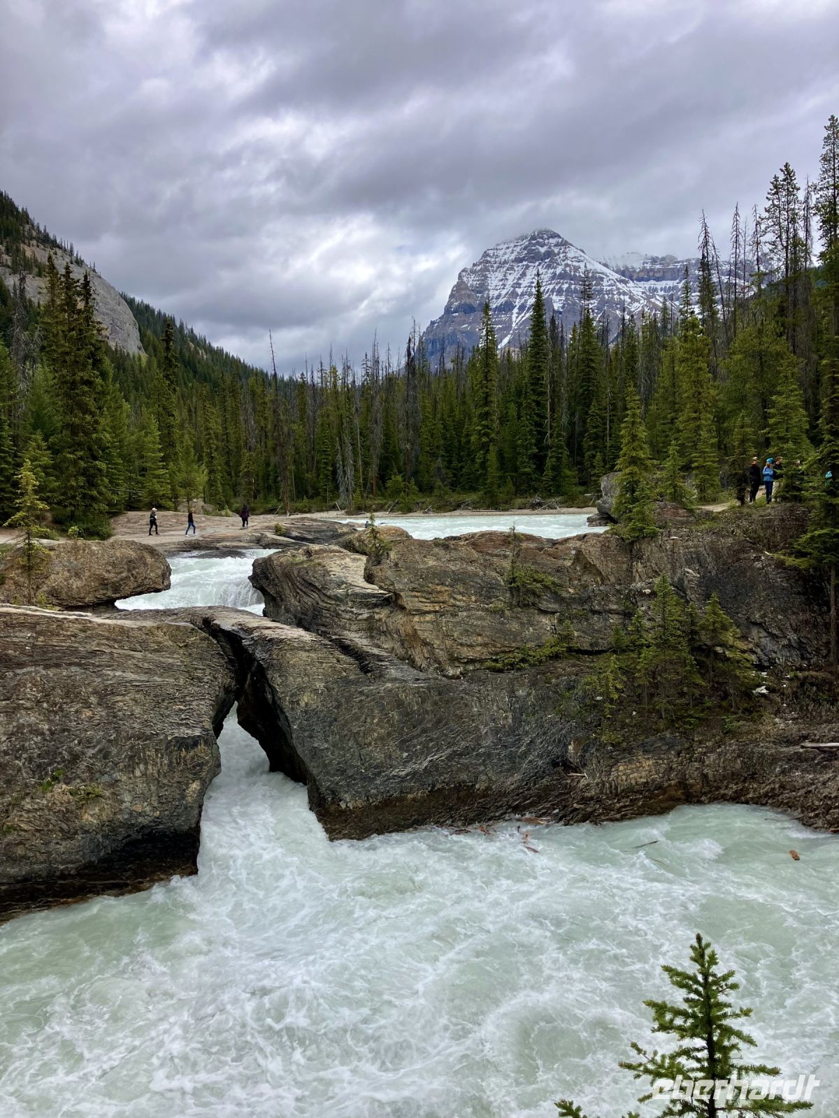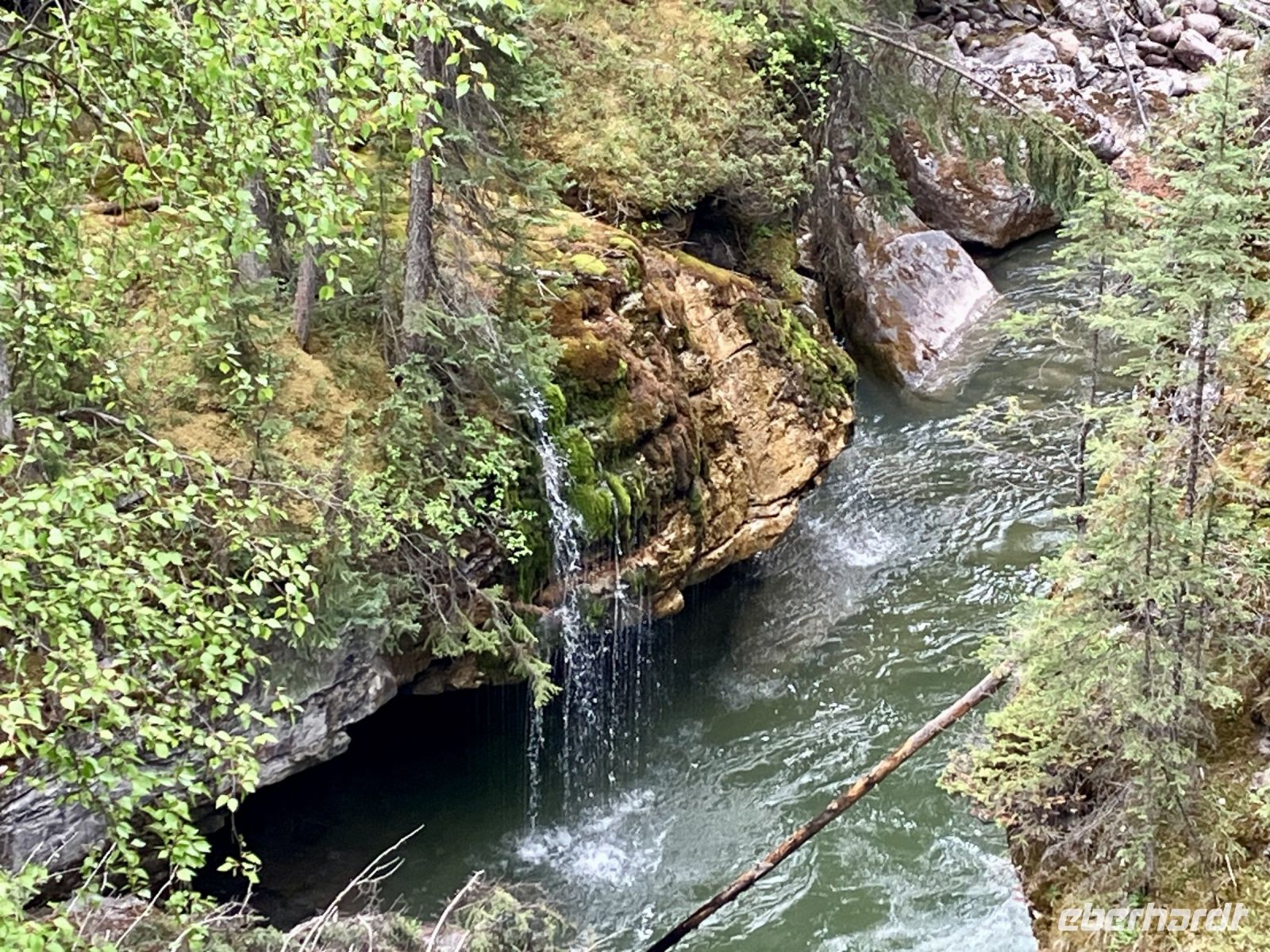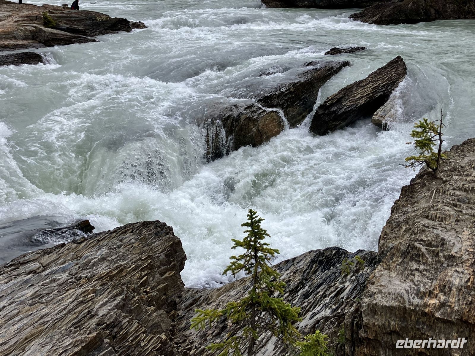 Dem Johnston Canyon entlang spazieren wir und staunen ueber die wunderschoene Schlucht und den tollen Weg der teilweise als Steg an den Felshaengen haftet und zeitweise dem Fluss entlang fuehrt. So wandern wir bis zur 1. Bruecke und sehen einen tollen tosenden Wasserfall. Wie in einem wild gewordenen Jacuzzi schaut es hier aus. Energiegeladen, gehts zurueck zum Bus und damit nach Banff. Einige unter uns wollen nun Banff-Freizeit geniessen und andere bevorzugen einen Abstecher zu den Heissen Quellen. 40 Grad ist das Schwefelwasser heute, nach 20 Minuten sind wir gargekocht und sicher noch gesuender als vorher. Genesis faehrt uns wieder zurueck nach Banff.