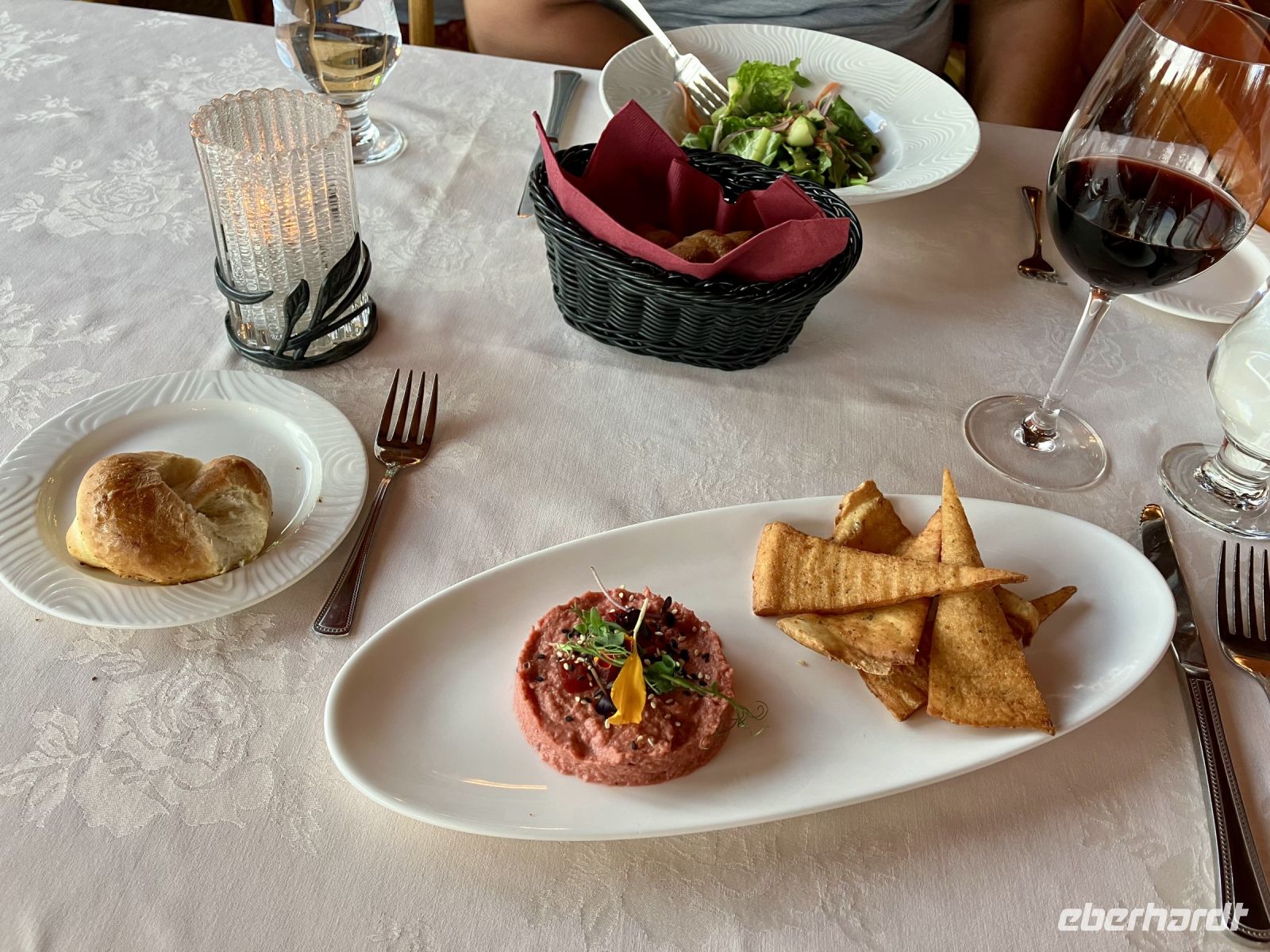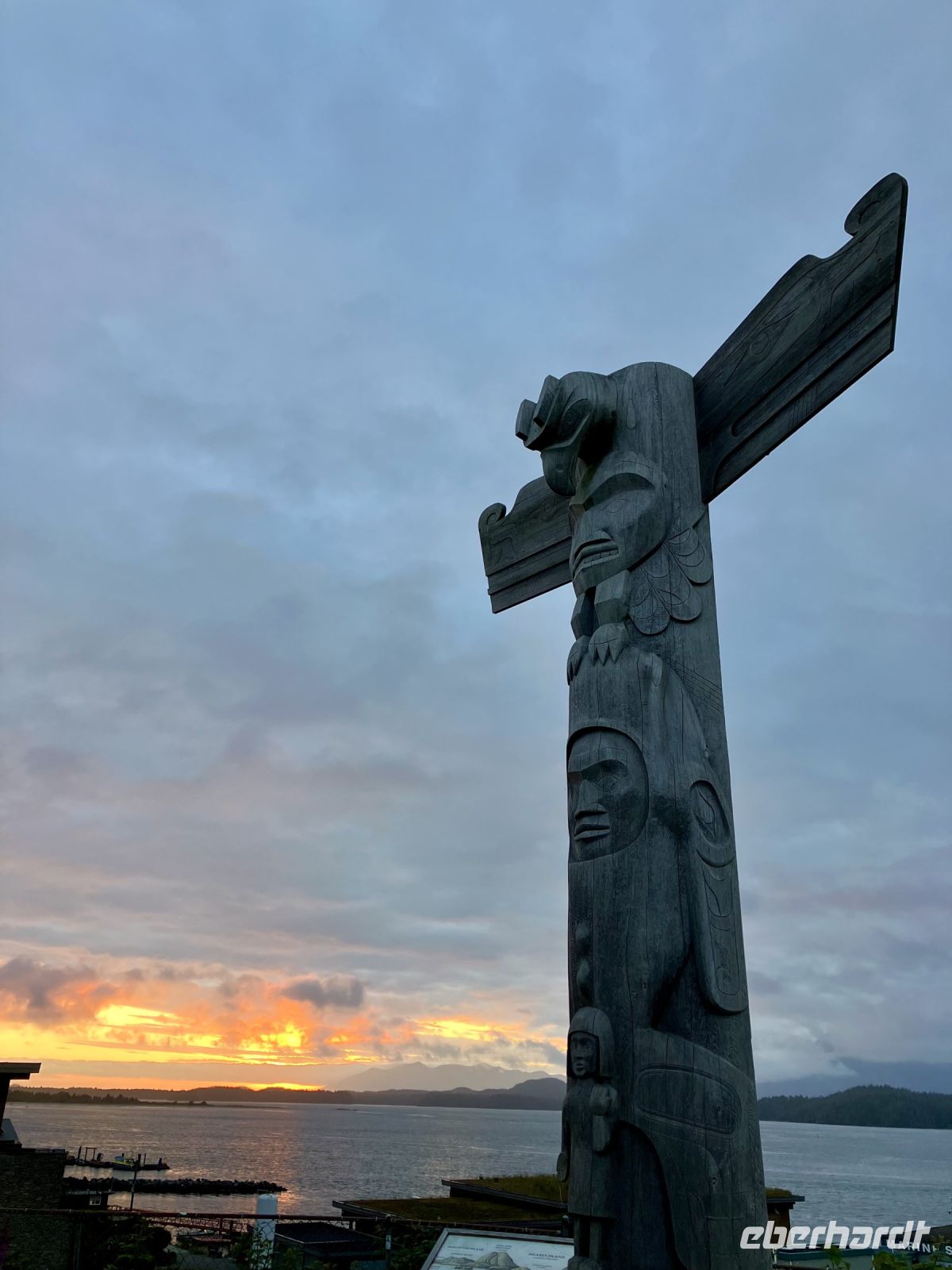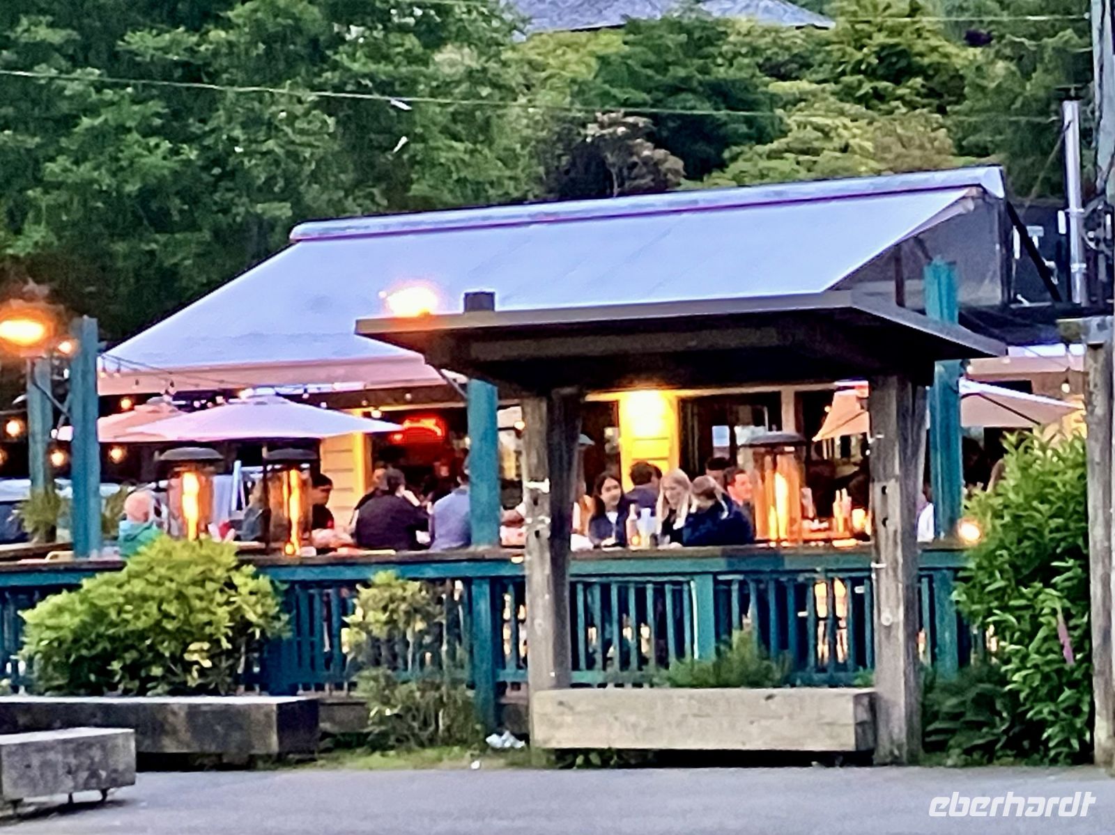 Am Abend um 19:30 treffen wir uns allesamt wieder zum Abendessen. Wir sitzen wunderschoen in diesem noblen Restaurant. Es ist am Wasser gelegen, mit Sicht auf den Sonnenuntergang in einem kleinen Hafen. Das Essen ist vorzueglich und die Bedienung wieder so nett. Hier in Tofino schlaeft man einfach super. Was fuer Tag, so ein Tag der sollte nie vergehen. Das Rauschen des Ozeans begleitet uns in die Traumwelt des Schlafes.