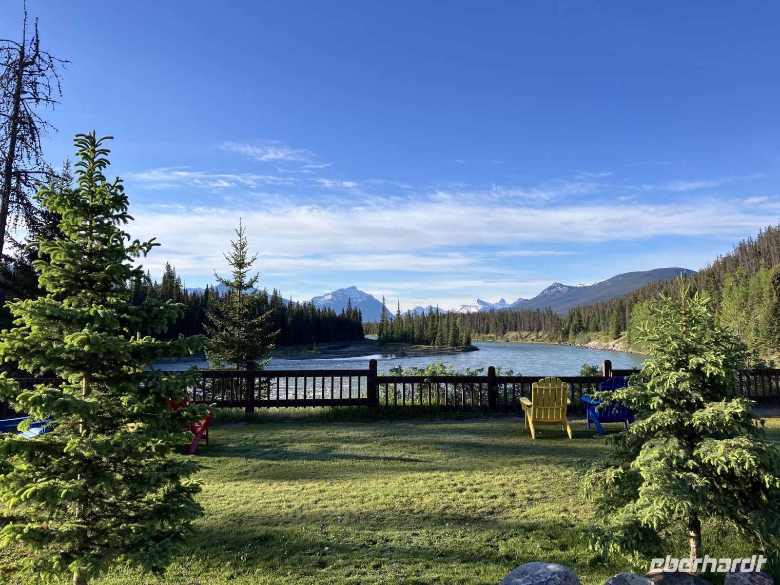 Wieder im Bus mit Genesis, gehts nun noch zu den Athabasca Faellen und danach in unser Hotel, die Becker’s Lodge. Viele kleinere Blockhaeuser sind die Zimmer und in der Lodge befindet sich die Lobby und das Restaurant. Es liegt am Athabasca Fluss einige Kilometer ausserhalb Jasper im Wald. Sehr idyllisch. Das Abendessen hier ist vorzueglich und die Bedienung auesserst freundlich. In den Blockhuetten finden wir nun Ruhe und schlafen wie die Herrgoettchen mitten im Wald. Es ist wohl das genaue Gegenteil von Toronto.